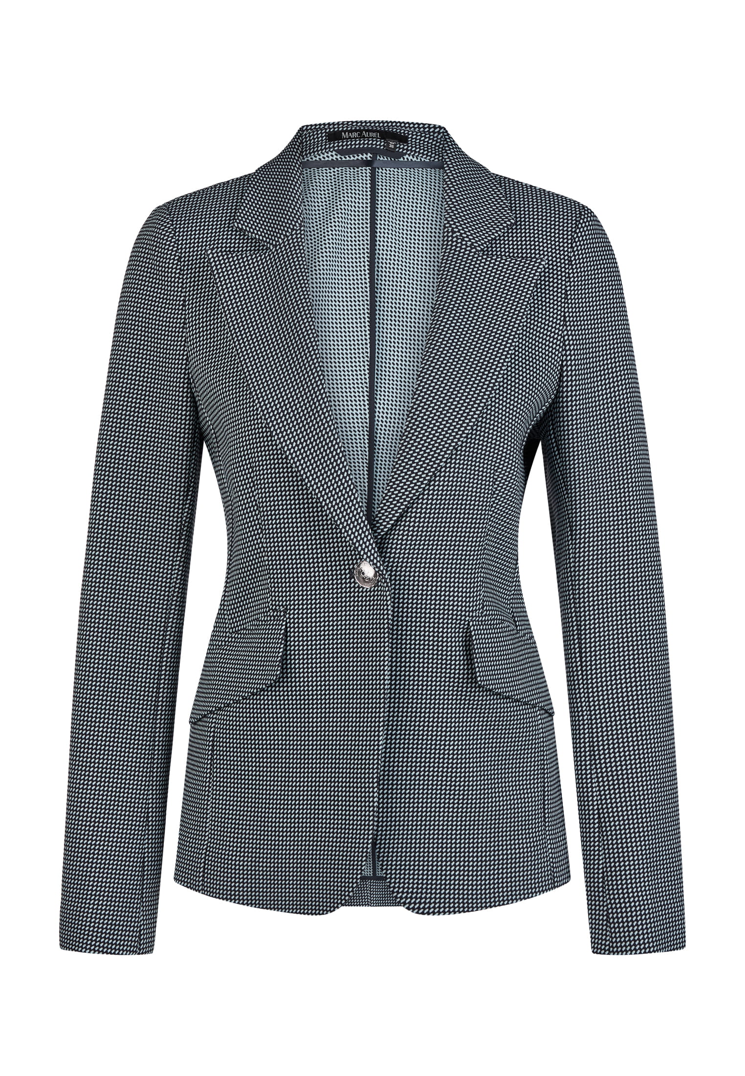 Этот жакет украшен эффектным жаккардовым узором, который добавляет текстуру и индивидуальность. Накладные карманы и металлический кулон в виде сердца добавляют изысканные акценты, а заостренные лацканы придают дизайну эффектный вид. Идеально подходит для стильного и одновременно утонченного образа.