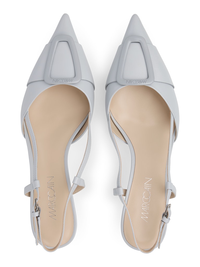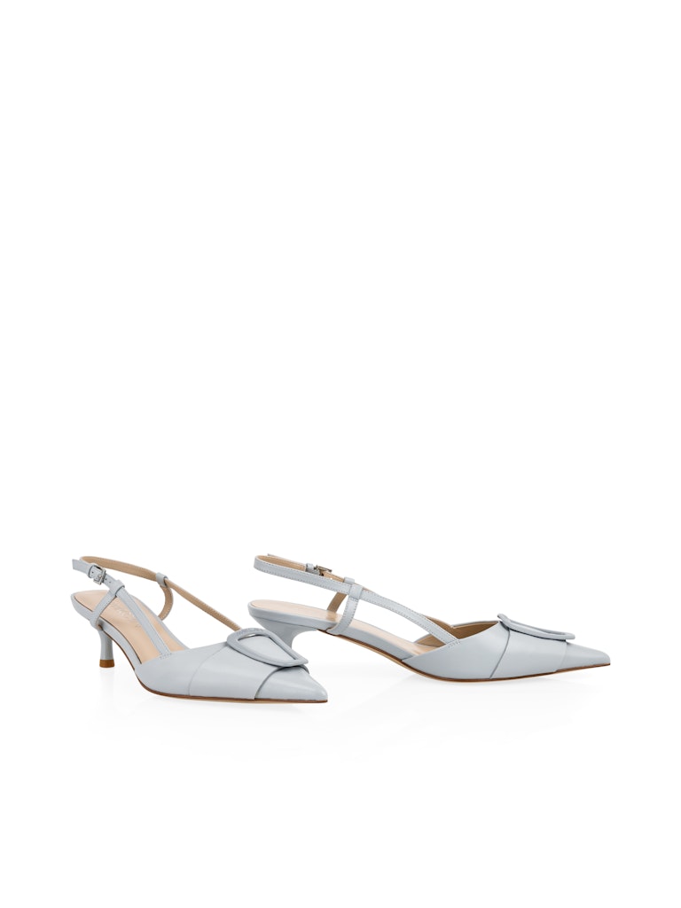Элегантные туфли-лодочки из тонкой козьей кожи с заостренным носком и высококачественной кожаной подкладкой для комфортного ношения. Изюминкой является декоративная эмалированная застежка, выполненная в тон обуви. Благодаря узкому крою и женственному стилю, эти туфли добавят стильный штрих к платьям, юбкам или брюкам, сочетая комфорт и элегантность.