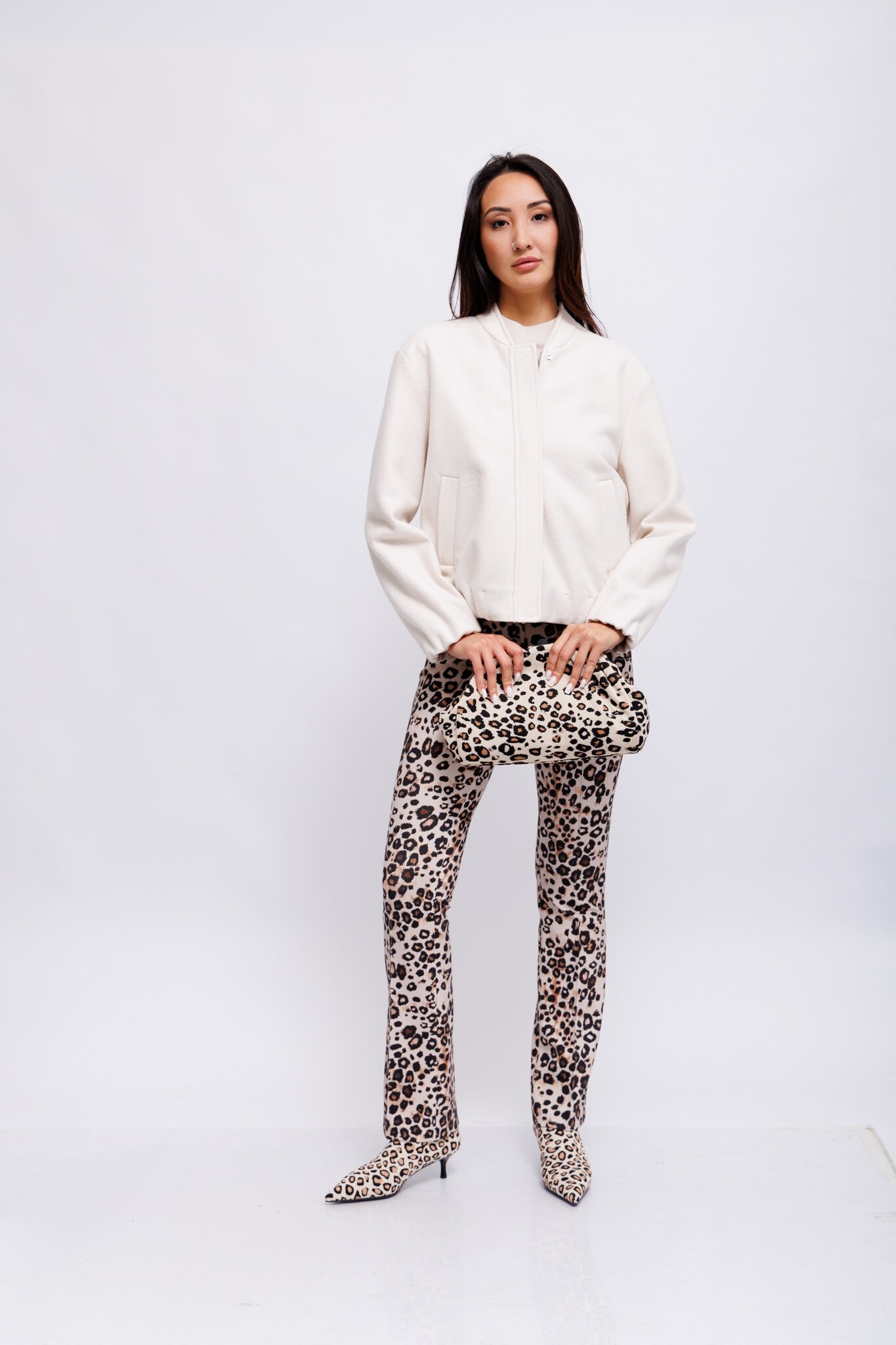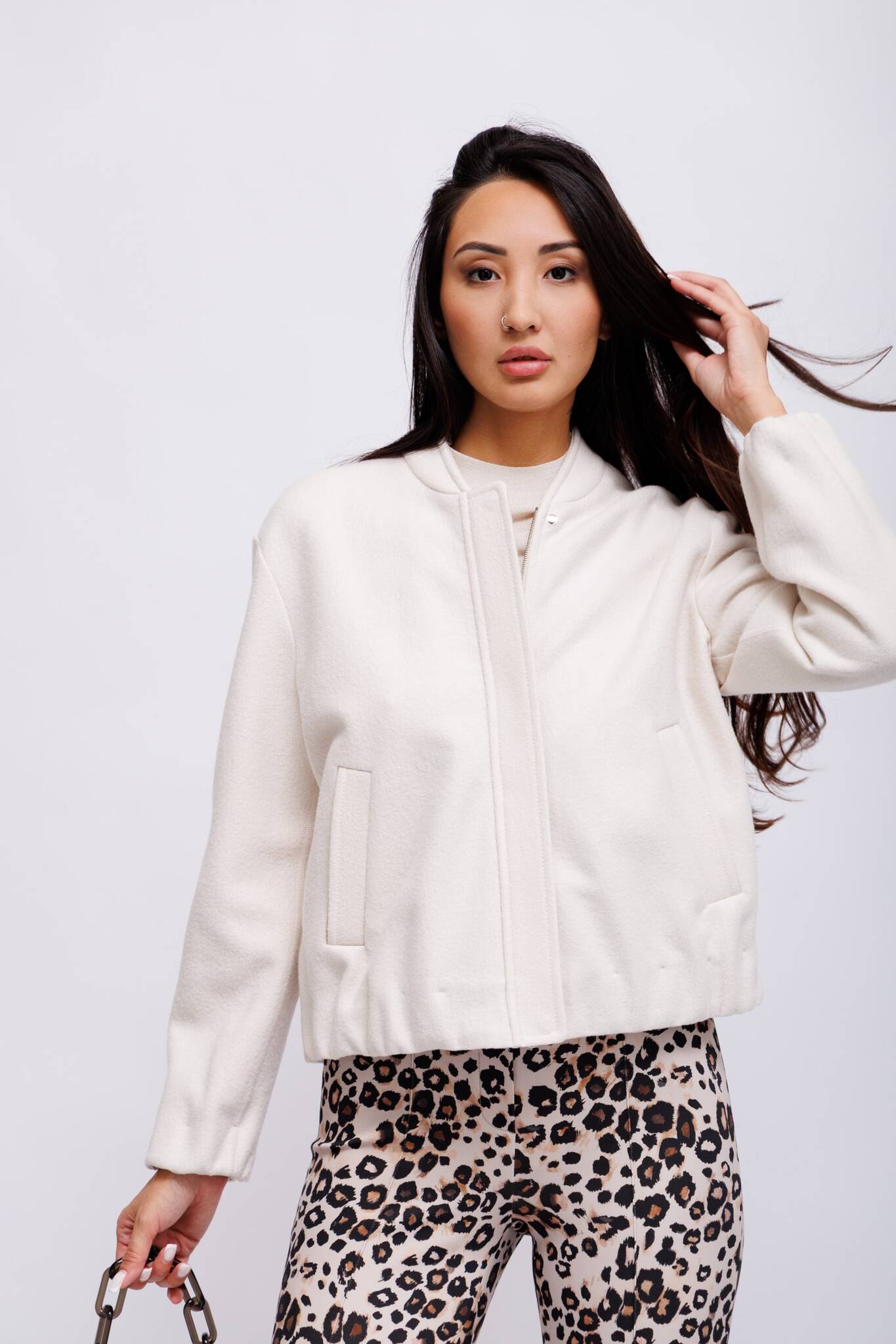 Бомбер в дымчато-бежевом из валяной шерсти