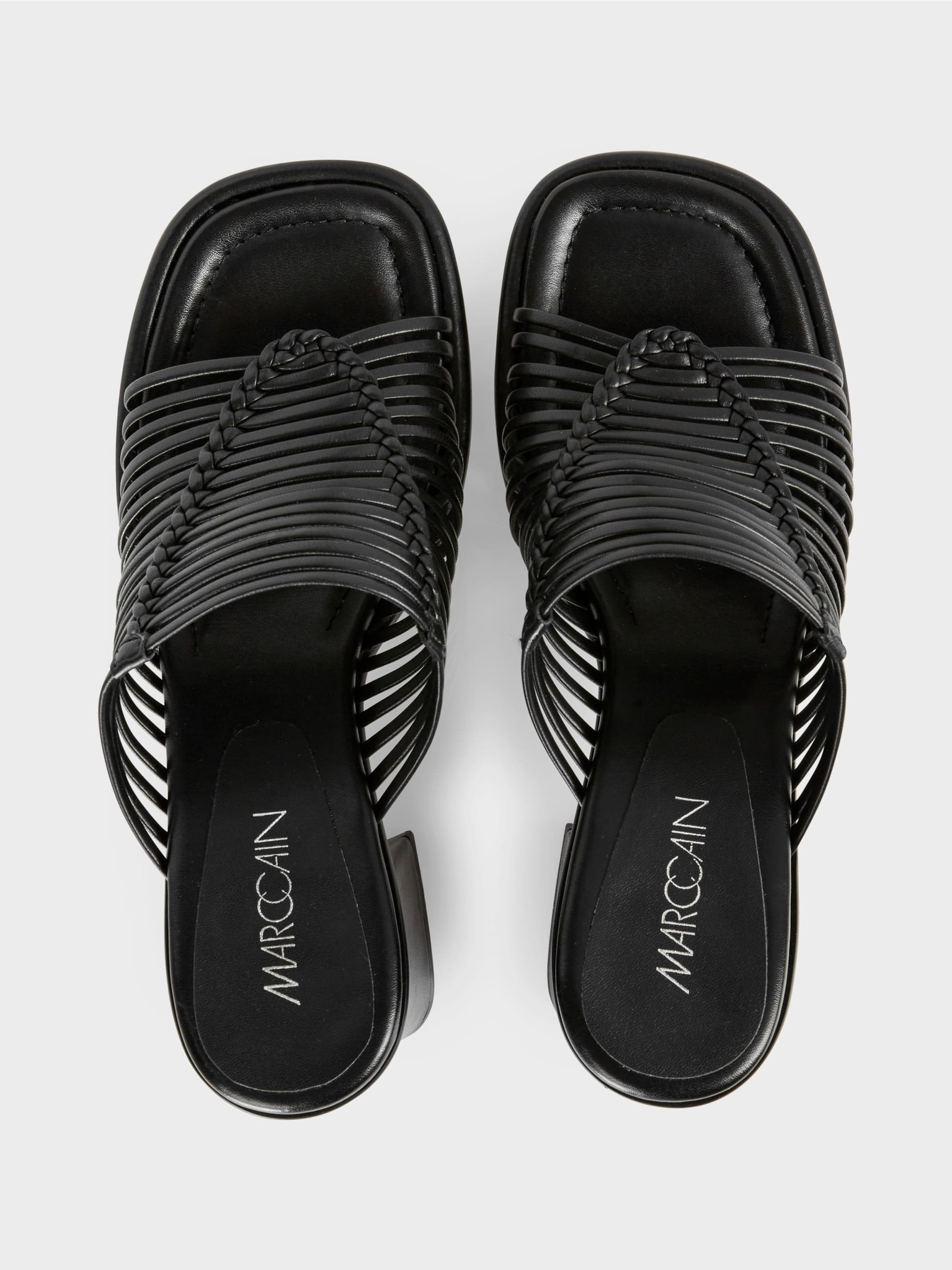 Босоножки кожаныеЧерный цвет Множественные перемычки из тонких кожаных полосокУстойчивый каблук