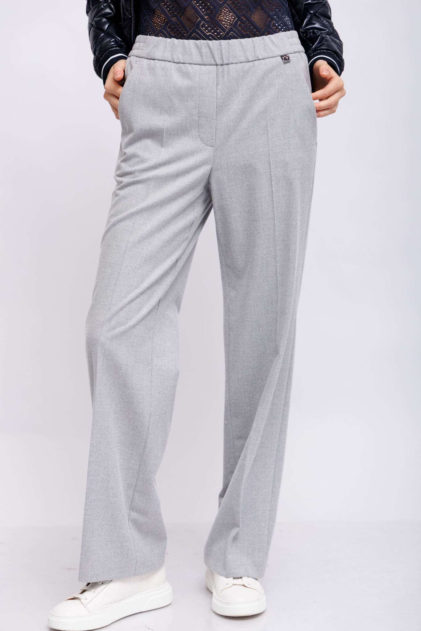 Брюки светло-серые из мягкой струящейся смеси волокон с вискозой.