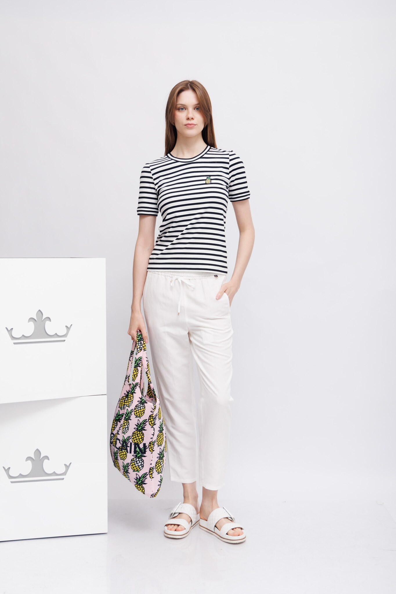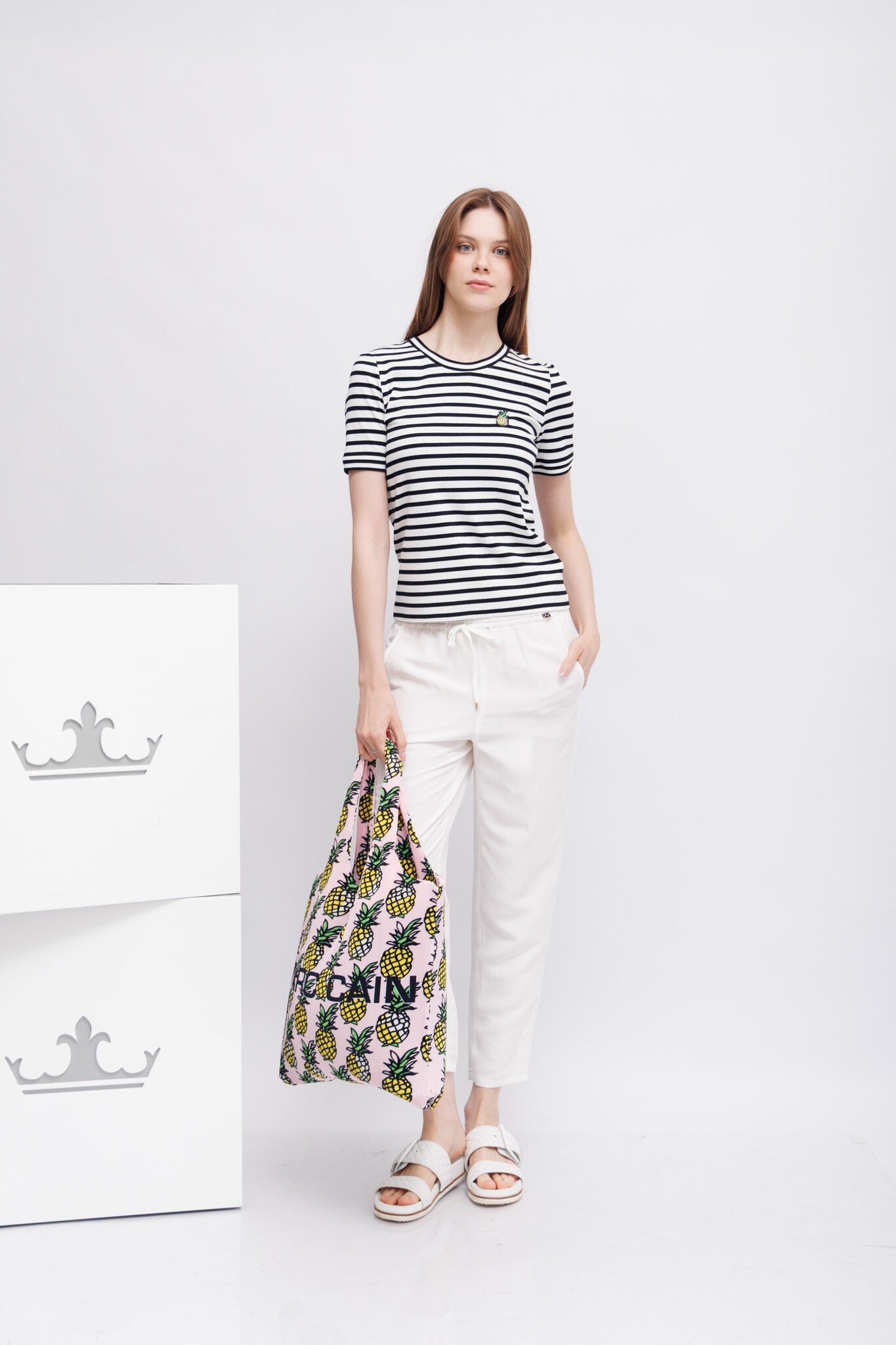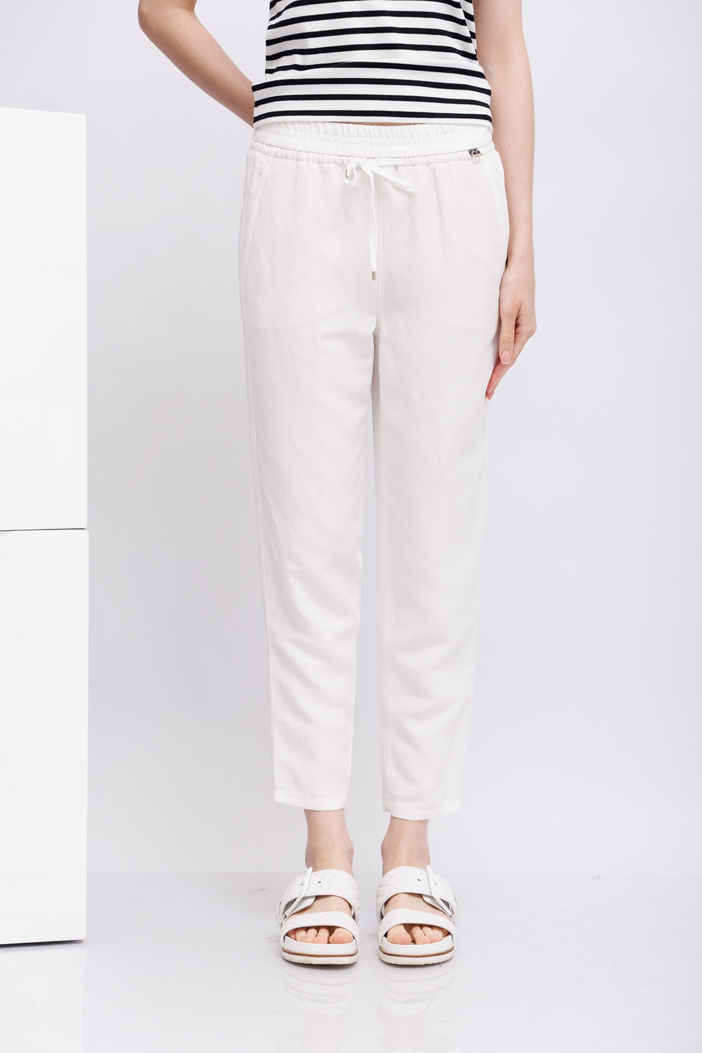 Модель RHODOS — это брюки свободного сужающегося к низу кроя. Силуэт мягкий и плавный. Характерными деталями являются эластичный пояс и зауженный, слегка укороченный крой штанин. Ткань изготовлена из смеси вискозы и льна и приятна на ощупь. Модная вещь, создающая уют и комфорт для домашнего офиса и отпуска.