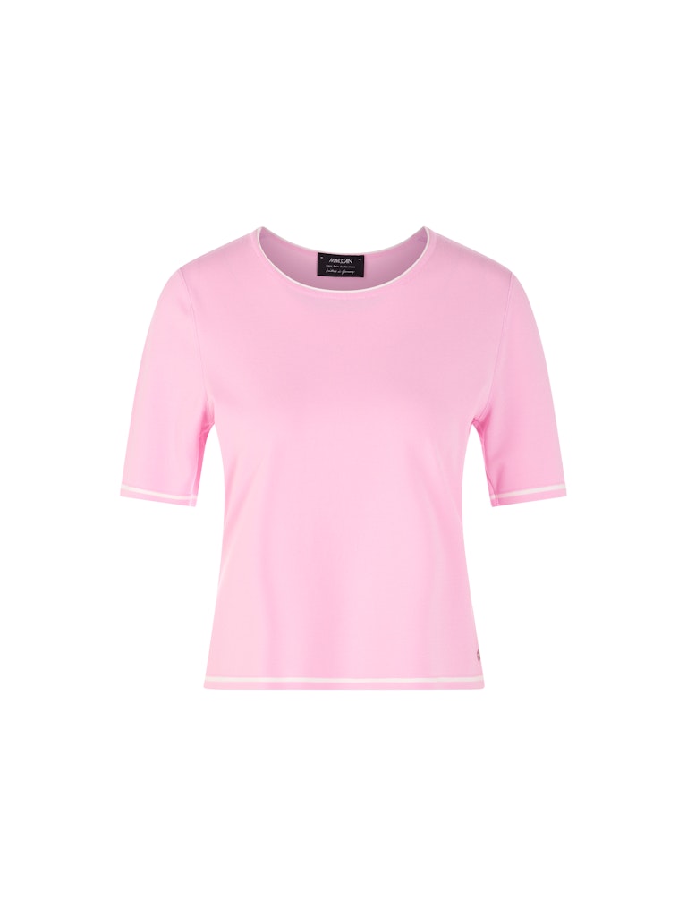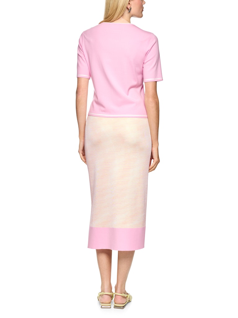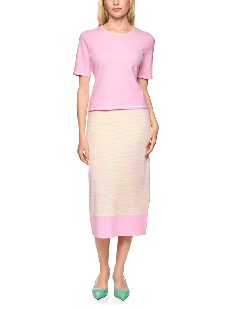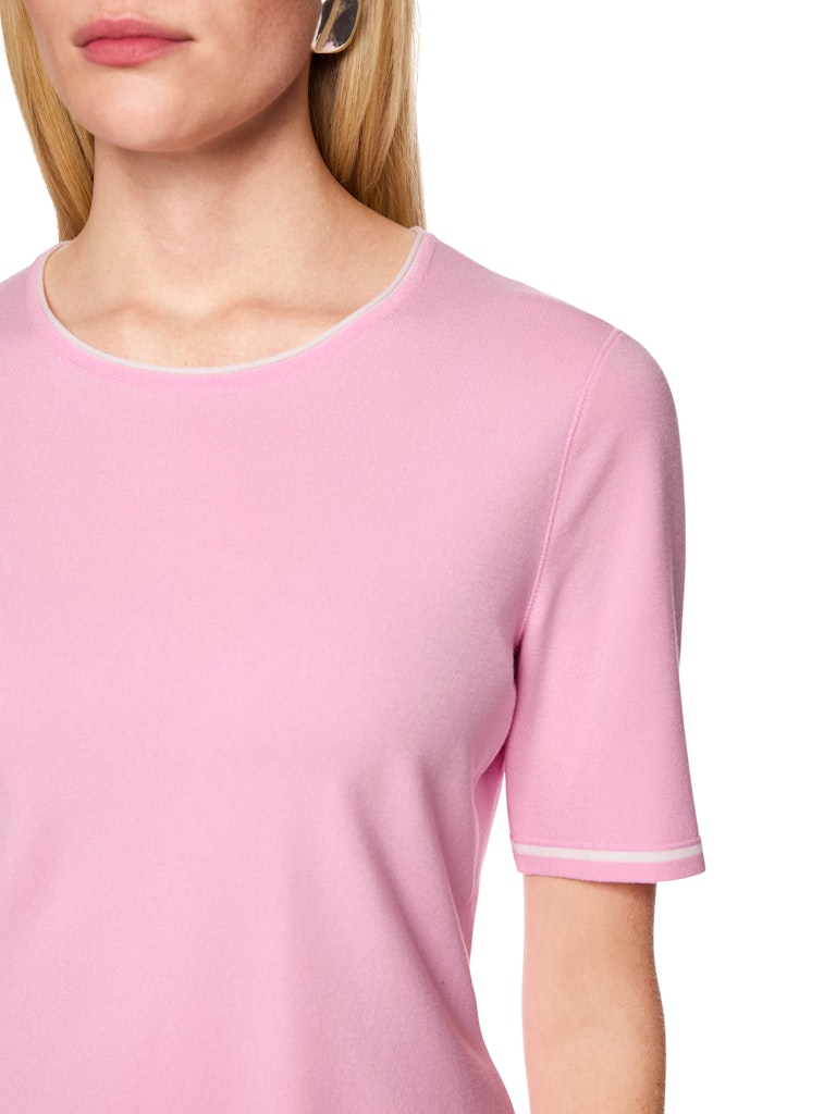 с контрастными полосатыми деталями. Круглый вырез и короткие рукава придают этому джемперу повседневного кроя современный вид. Изделие связано в Германии: пряжа вяжется на современных вязальных машинах, а отделка материалов производится в Германии. Этот джемпер входит в программу устойчивого развития Rethink Together.