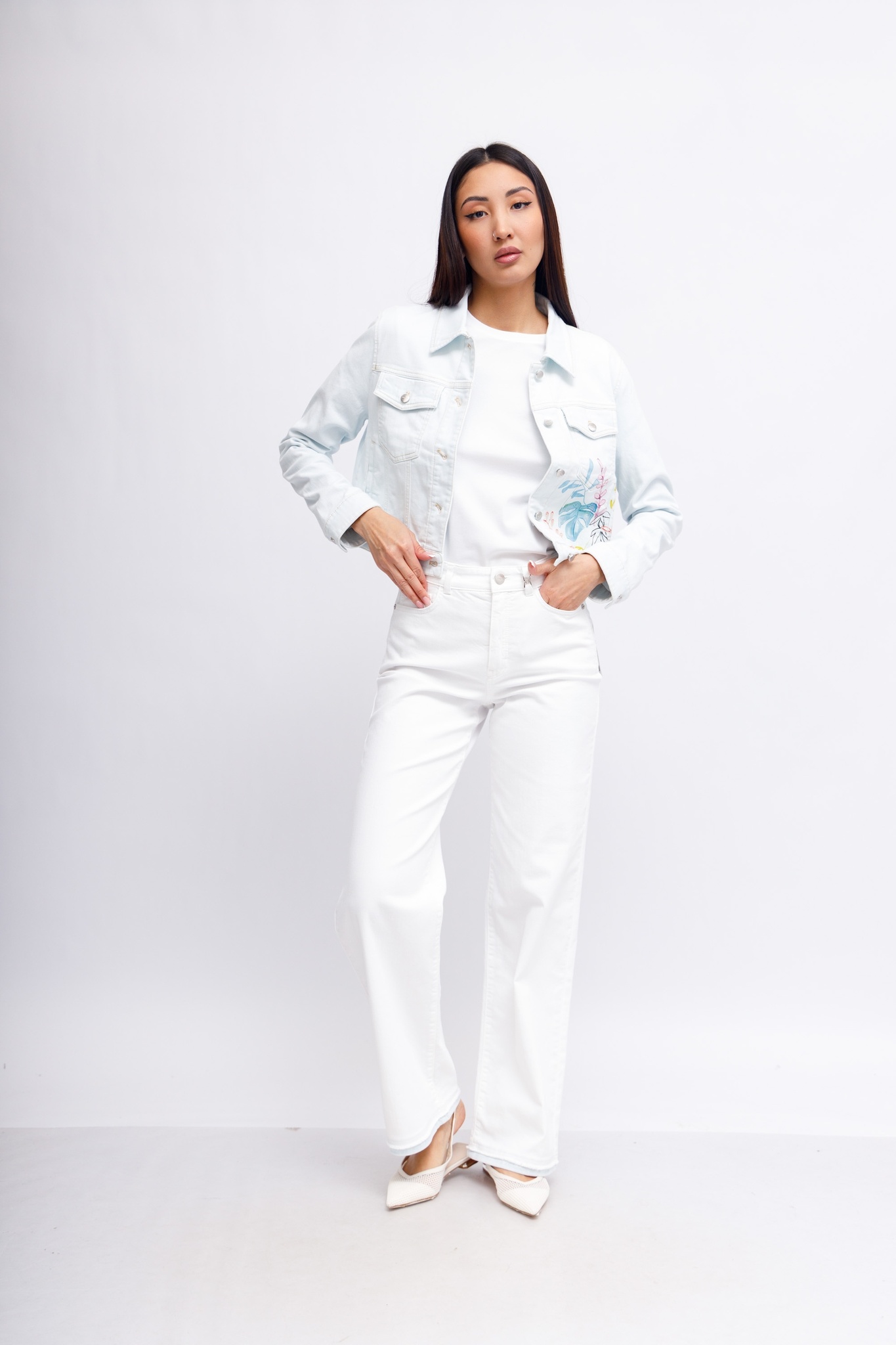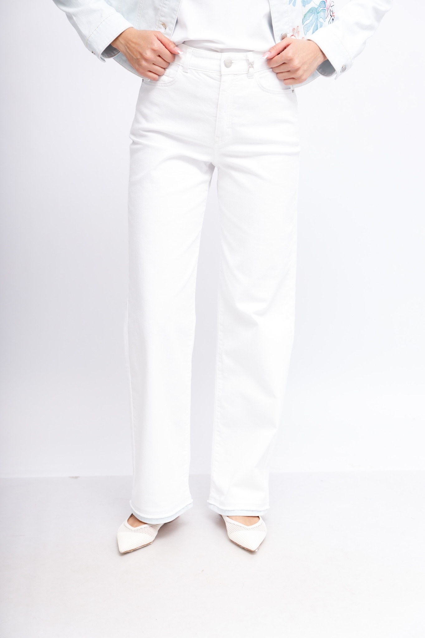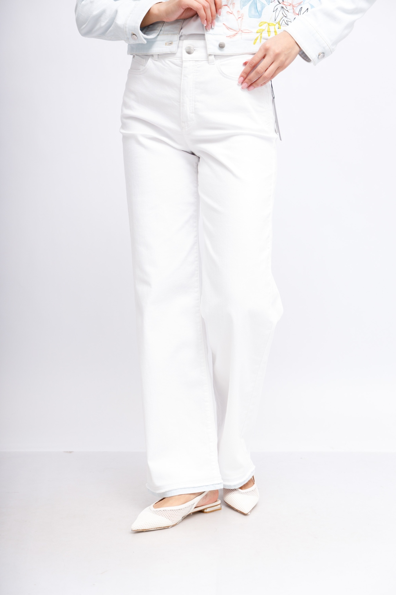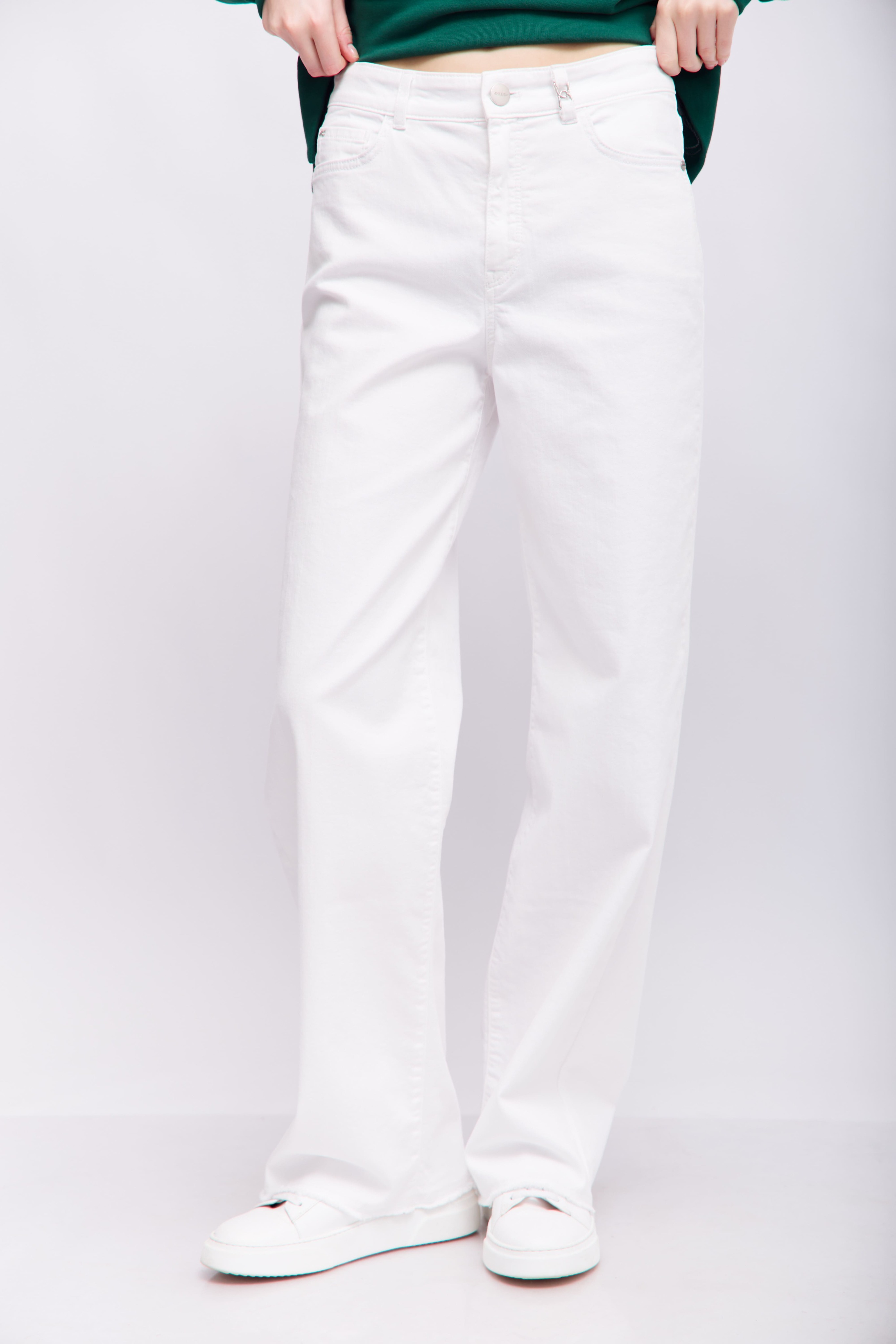 Модель WIGAN — это пара широких джинсов с пятью карманами, высокой талией и прямыми штанинами. Подгибы выглядят так, как будто их удлинили с помощью ручных DIY-техник. Джинсовая ткань изготовлена из эластичного хлопка и очень удобна в носке, отлично восстанавливается, то есть сохраняет форму.