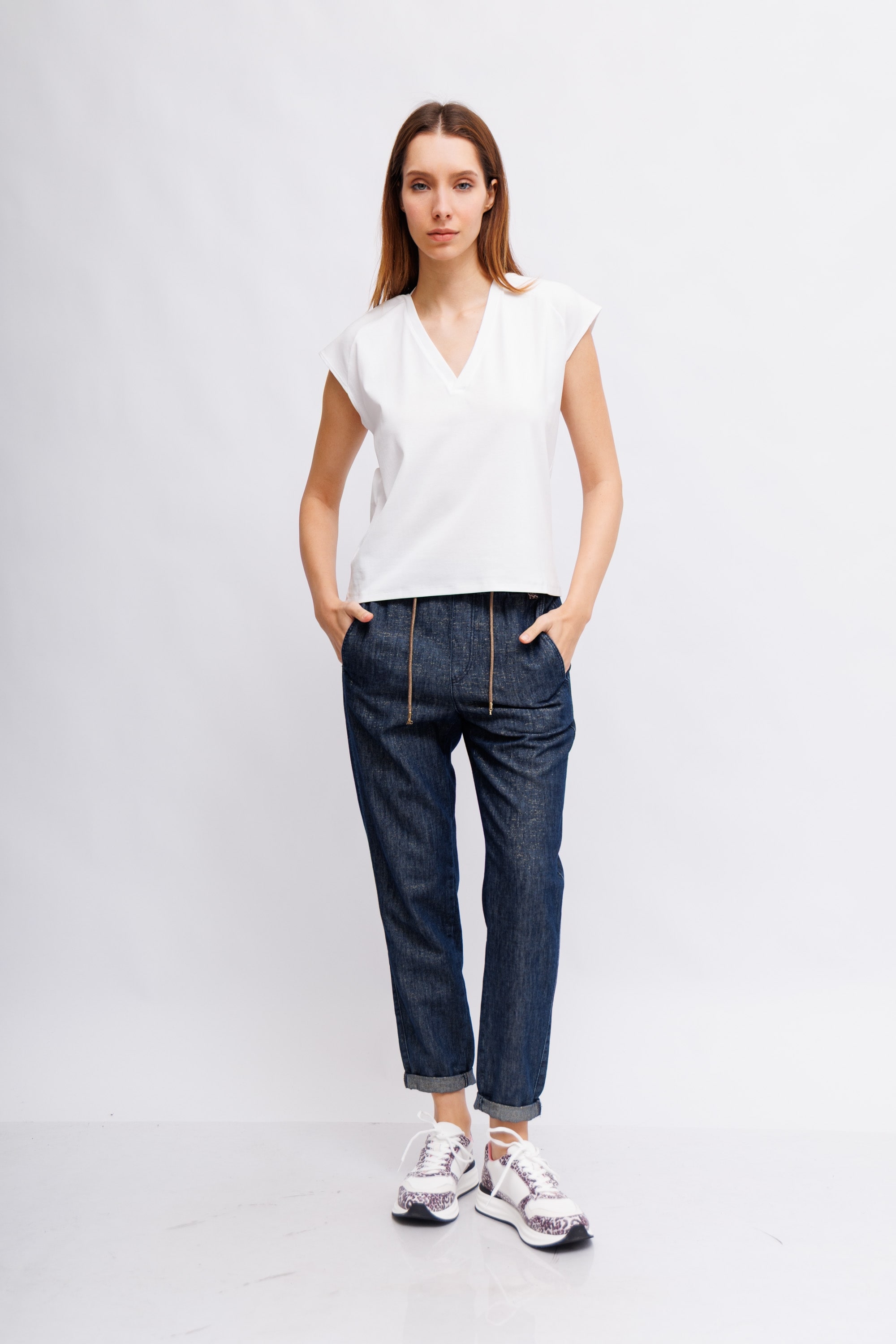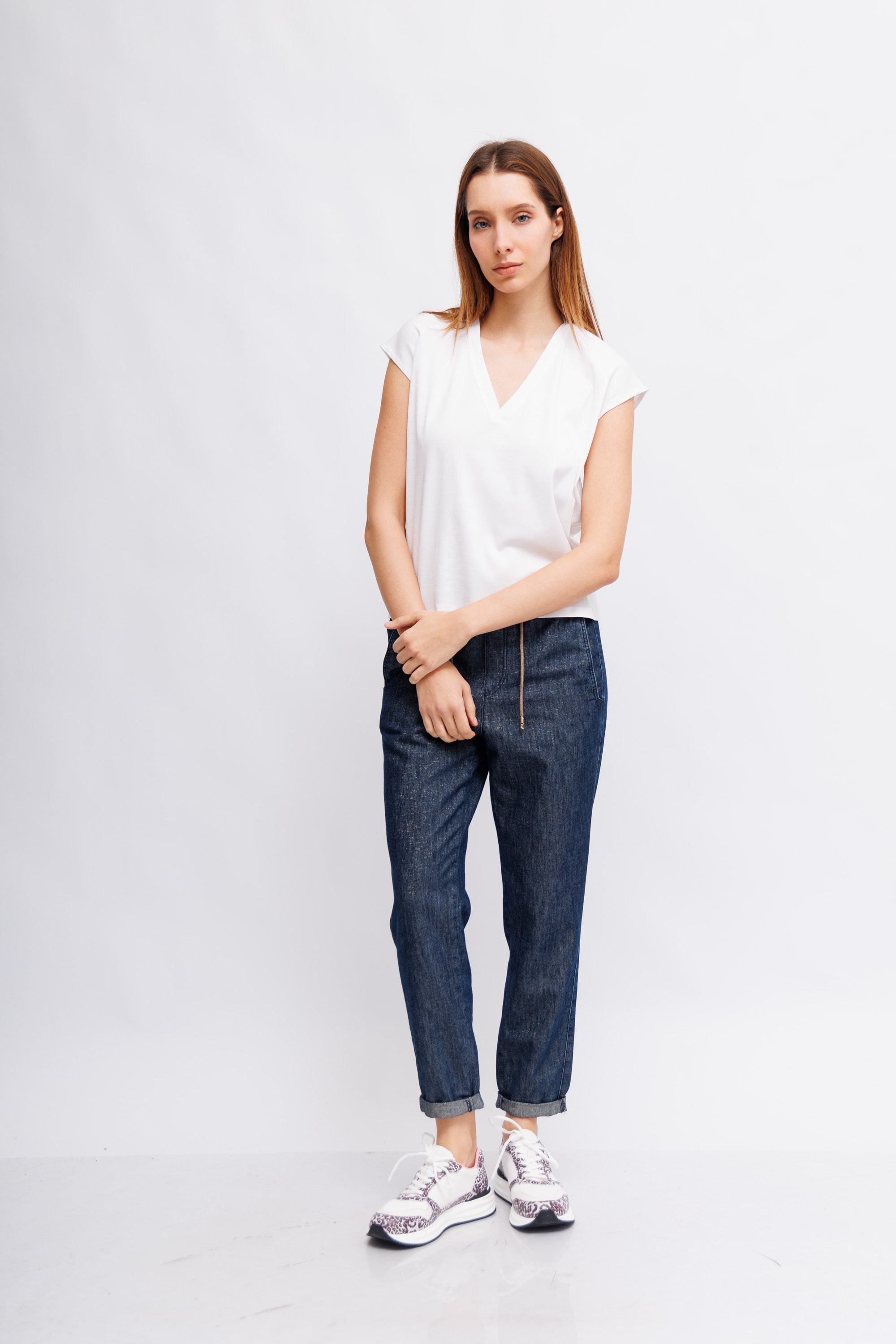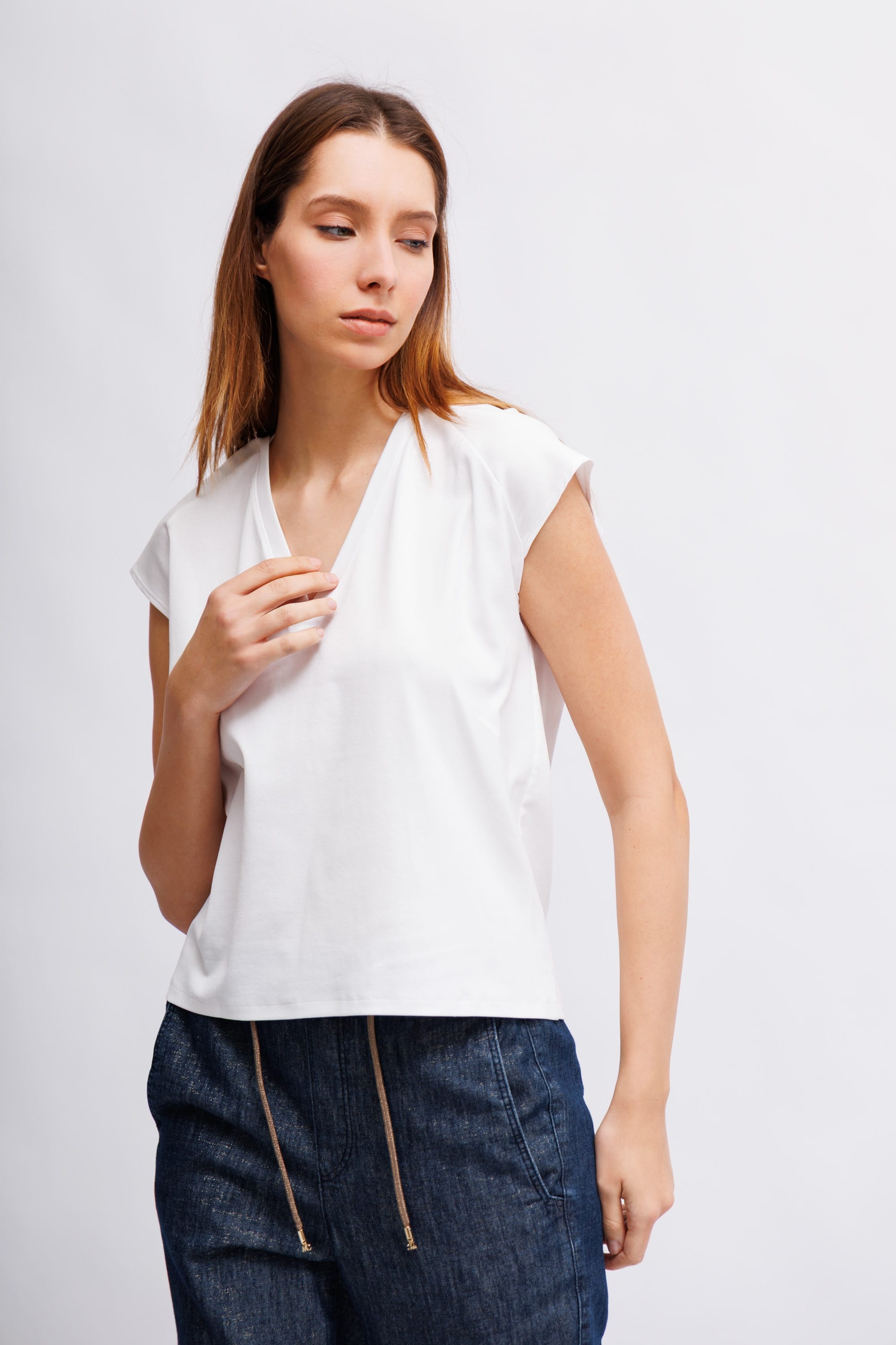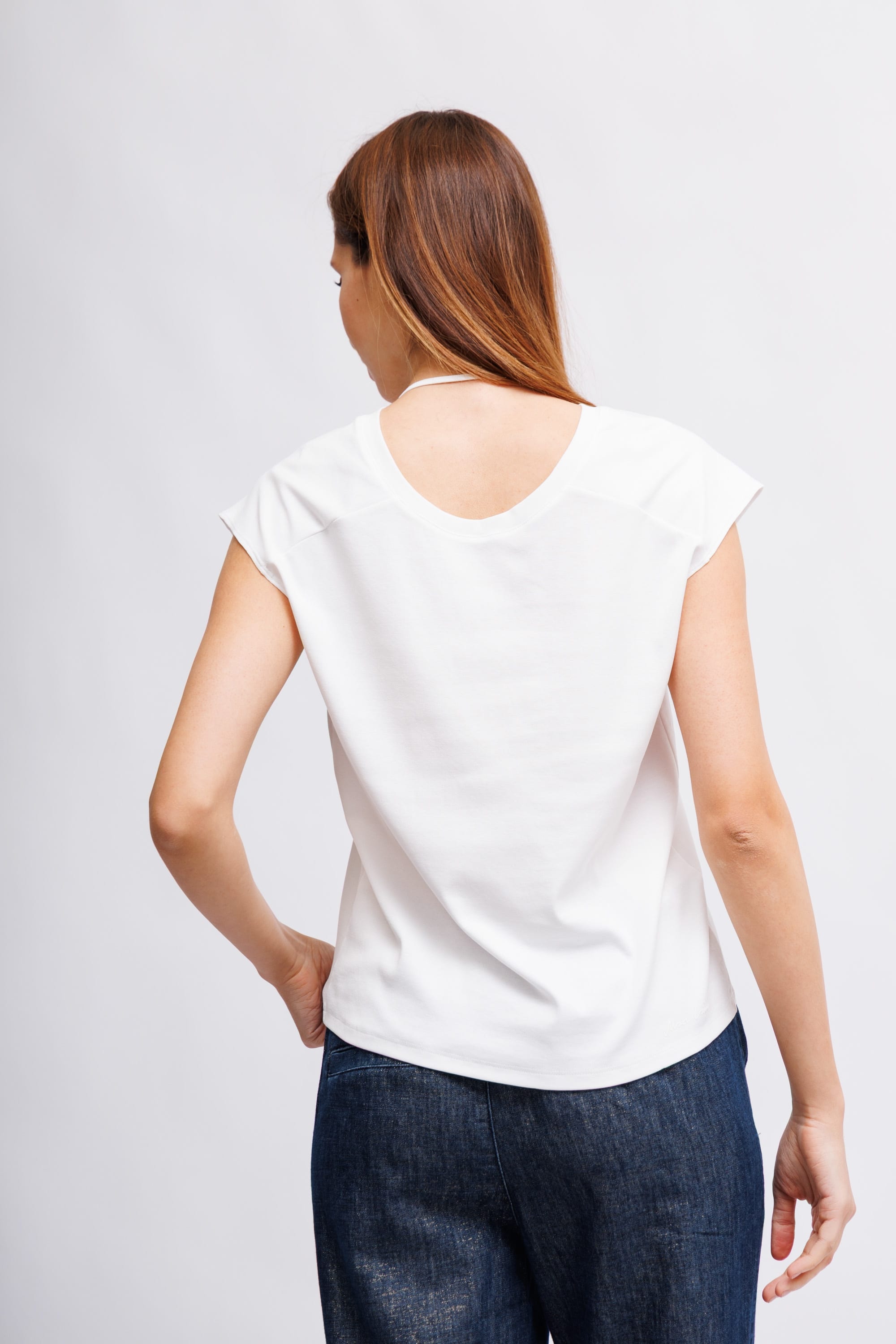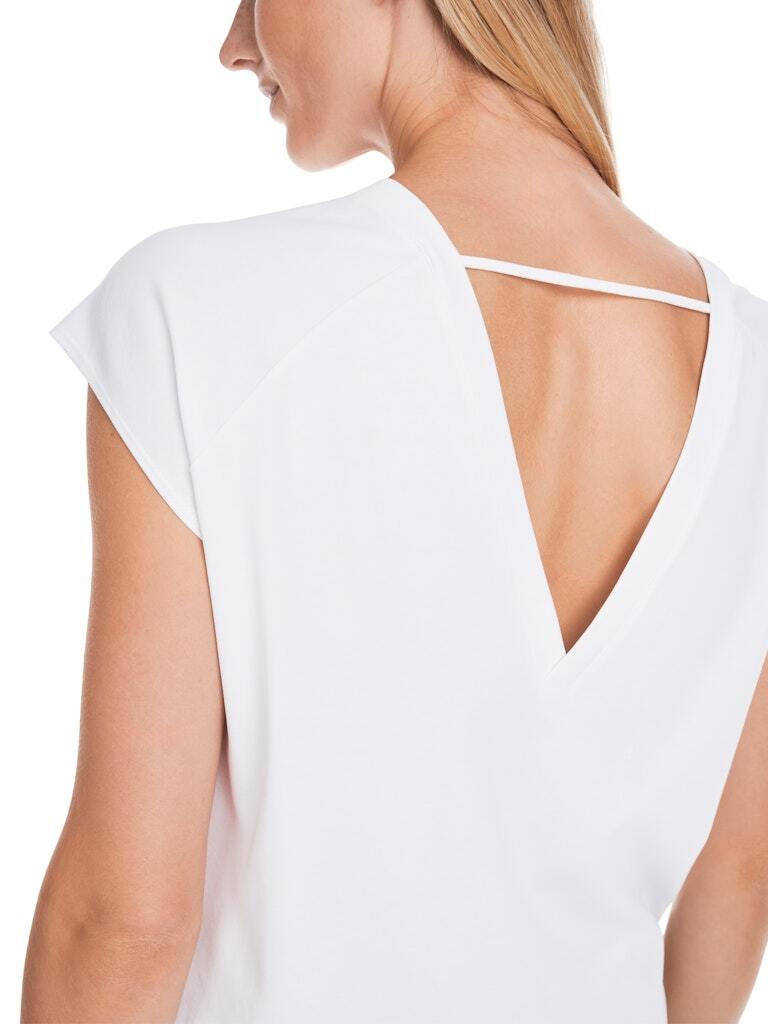 Белая футболка с V-образным вырезом сзади