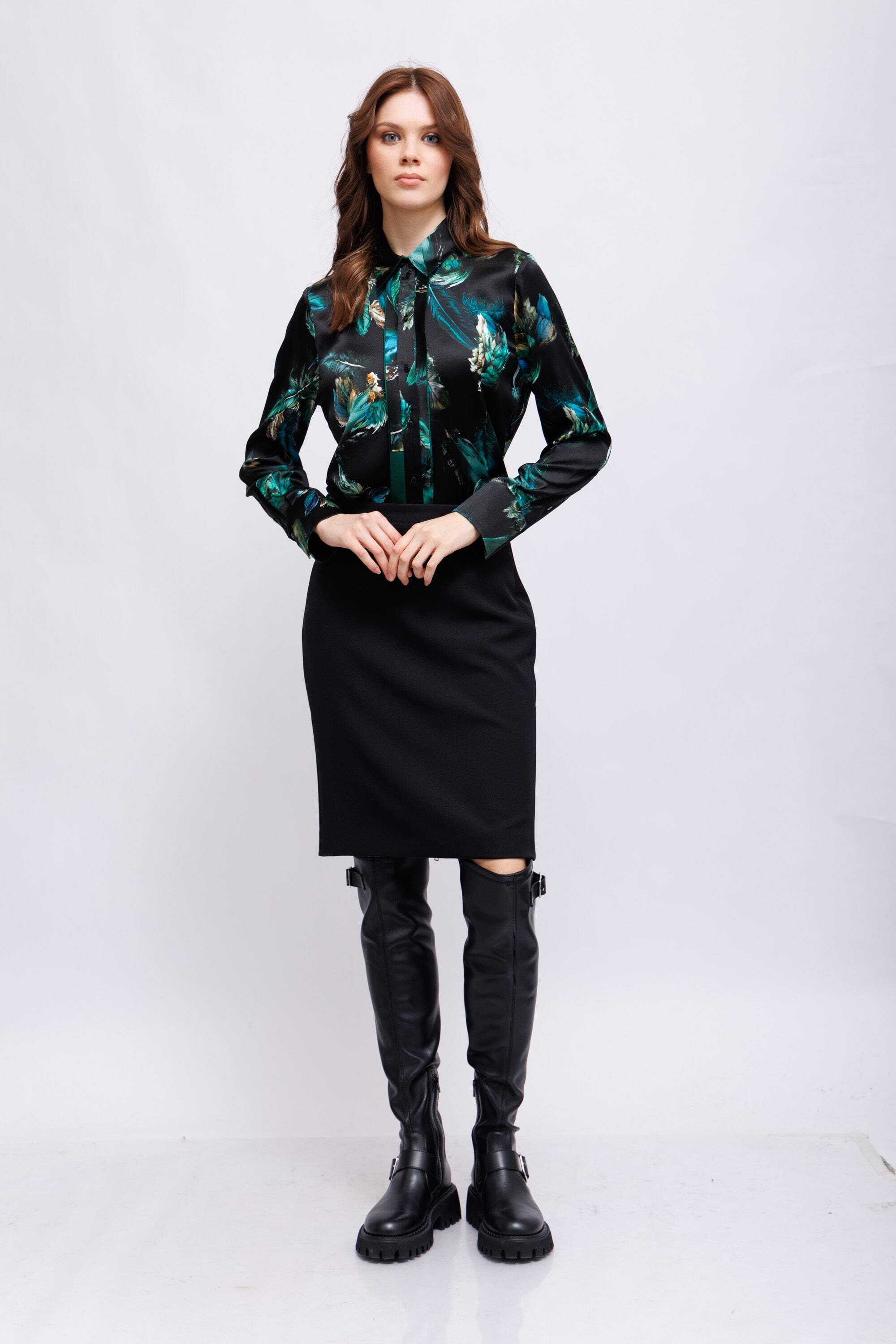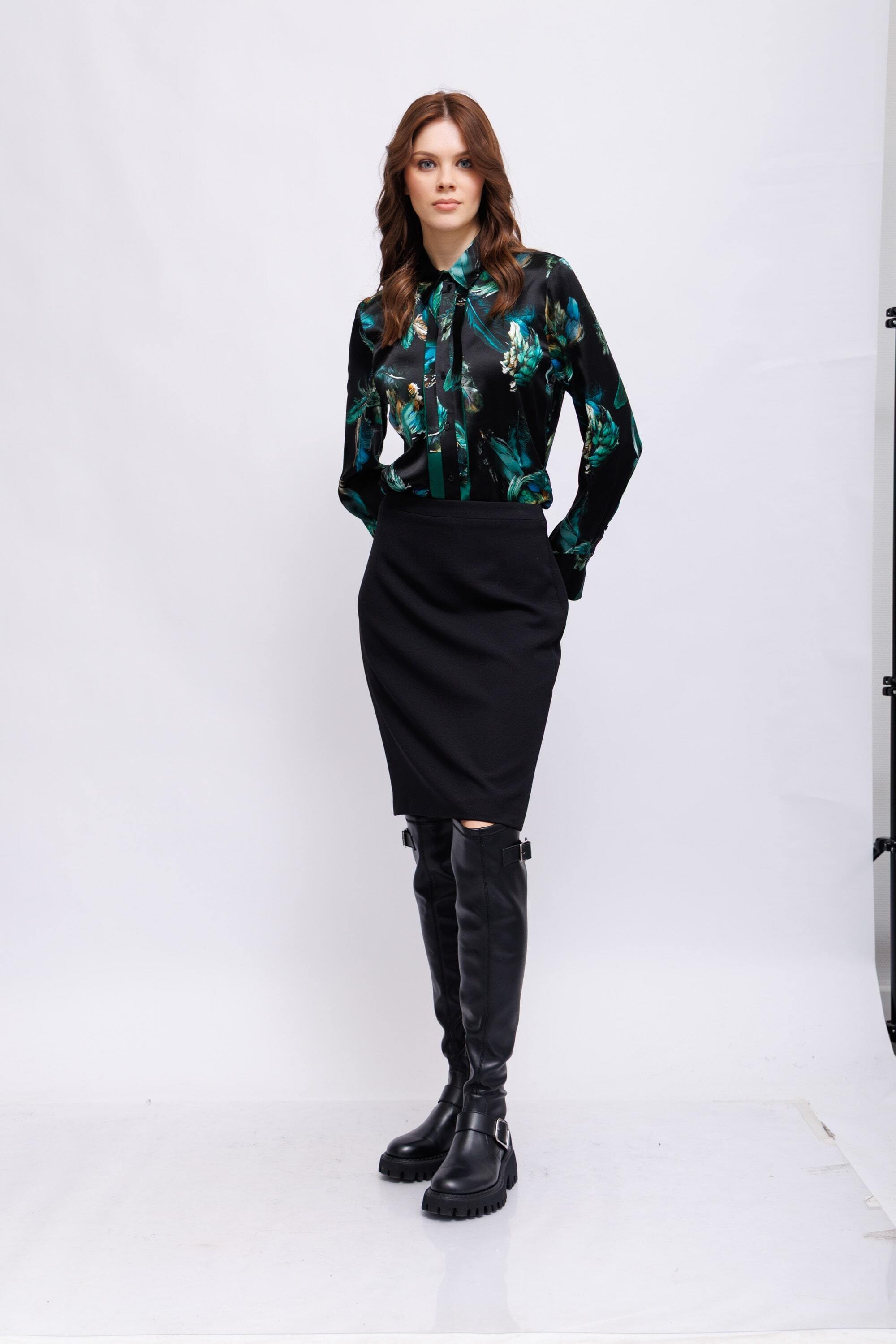 Юбка-карандаш облегающего кроя из эластичного материала. Изюминкой этой юбки является золотистая молния, проходящая по спинке. Её можно расстегнуть на любую длину, чтобы юбка сидела плотнее или свободнее. Юбка также на подкладке, поэтому непрозрачна.