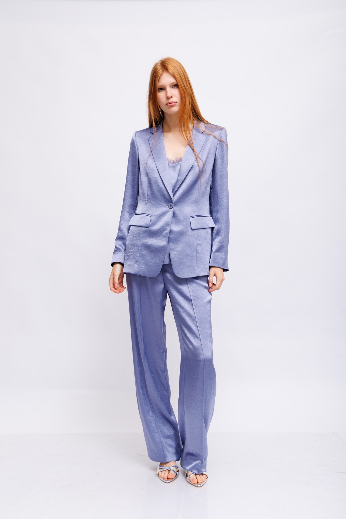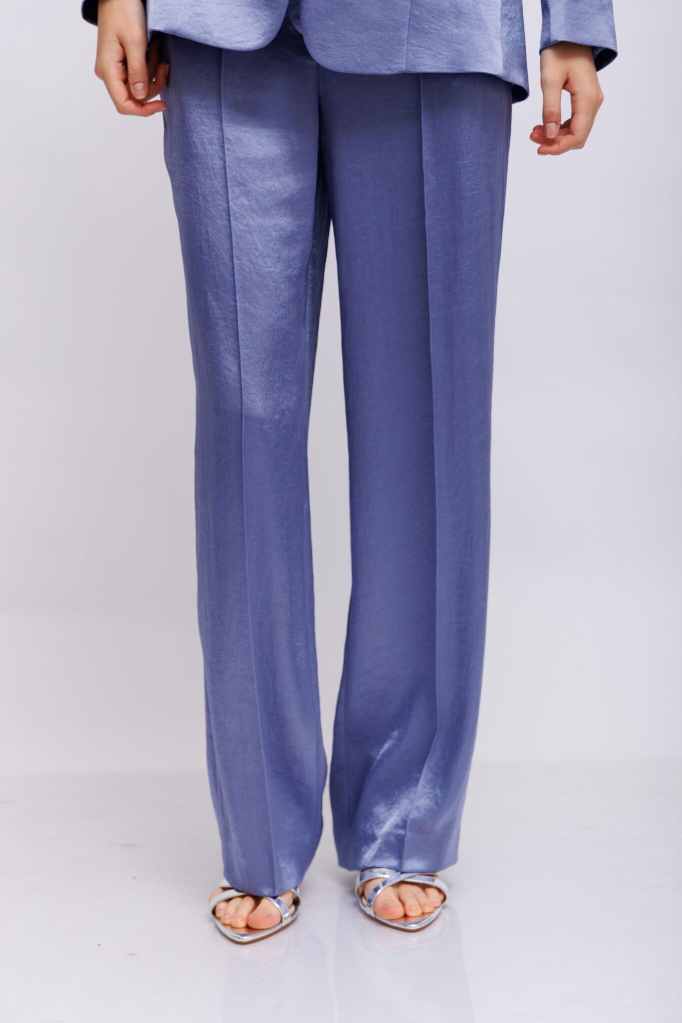 Брюки WUKARI из тиснёного атласа с элегантным блеском и застроченными стрелками имеют удобный широкий крой и длинные штанины. Застёгиваются на молнию и крючок.