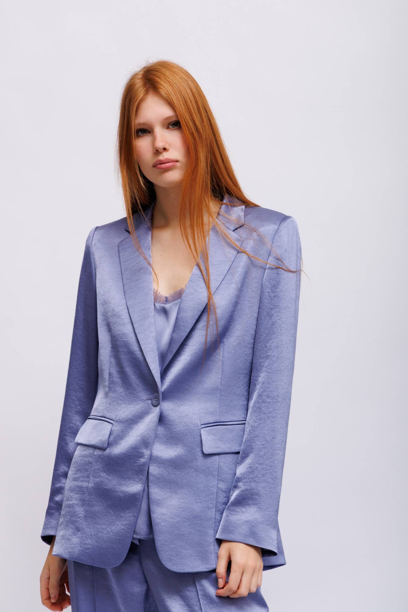 Этот облегающий однобортный пиджак удлиненной формы с разделительными швами. Благодаря шлице сзади он очень удобен в носке. Отложной воротник и карманы с клапанами дополняют классический стиль.