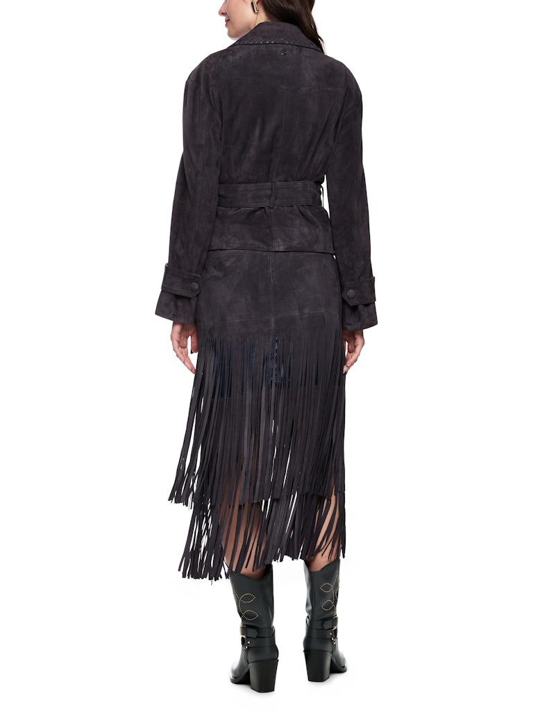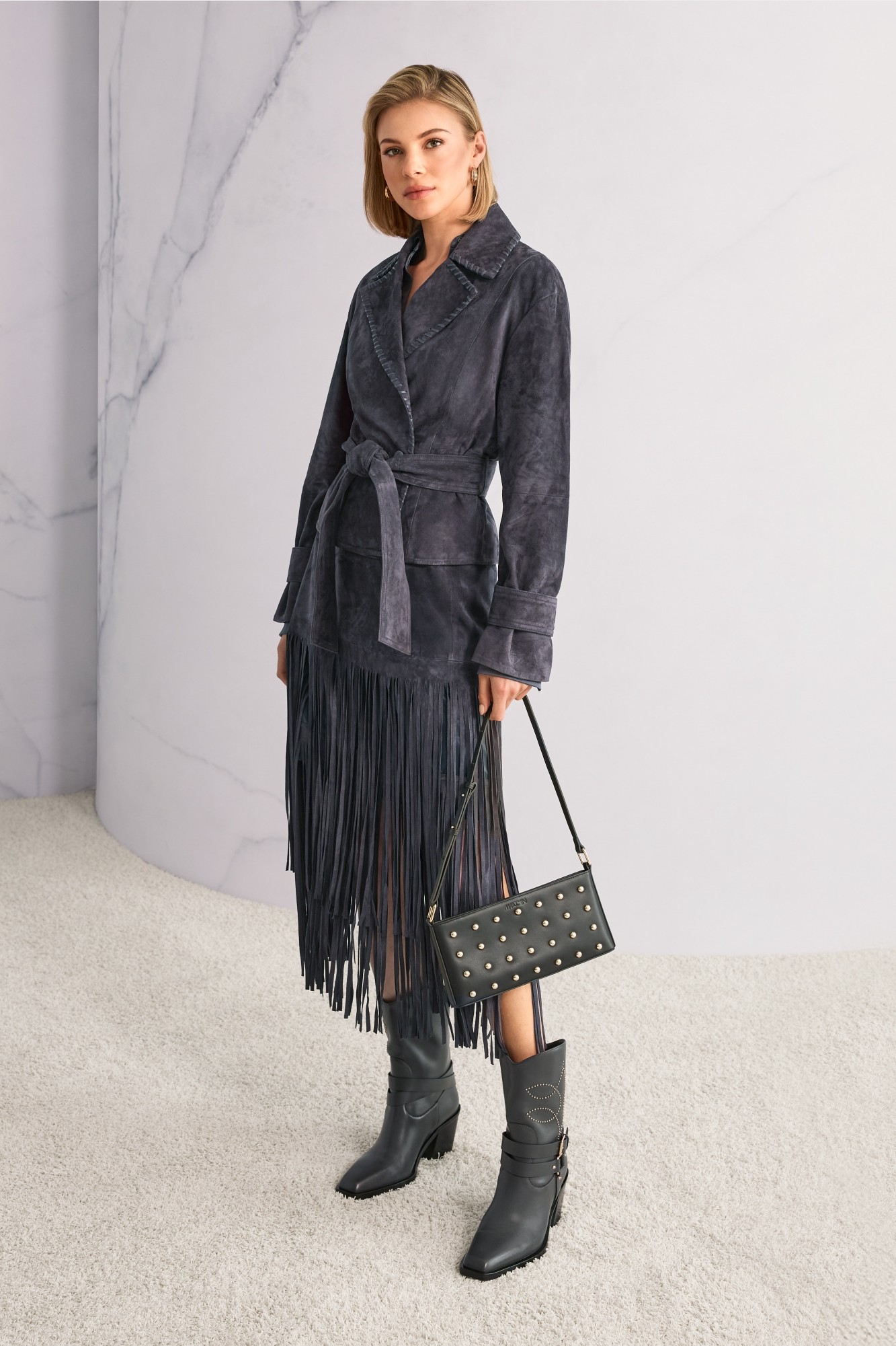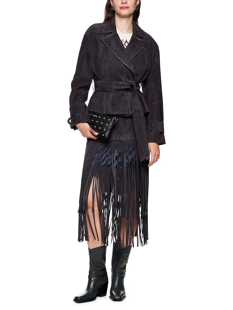из высококачественной кожи с поясом, подчеркивающим талию. Графитовый цвет. Две элегантные пуговицы и эффектные манжеты на рукавах добавляют модные акценты и обеспечивают идеальную посадку. Универсальная и легко сочетающаяся с другими элементами гардероба – идеально подходит как для элегантных, так и для повседневных образов. Изделие имеет знак экологичности «Rethink Together».