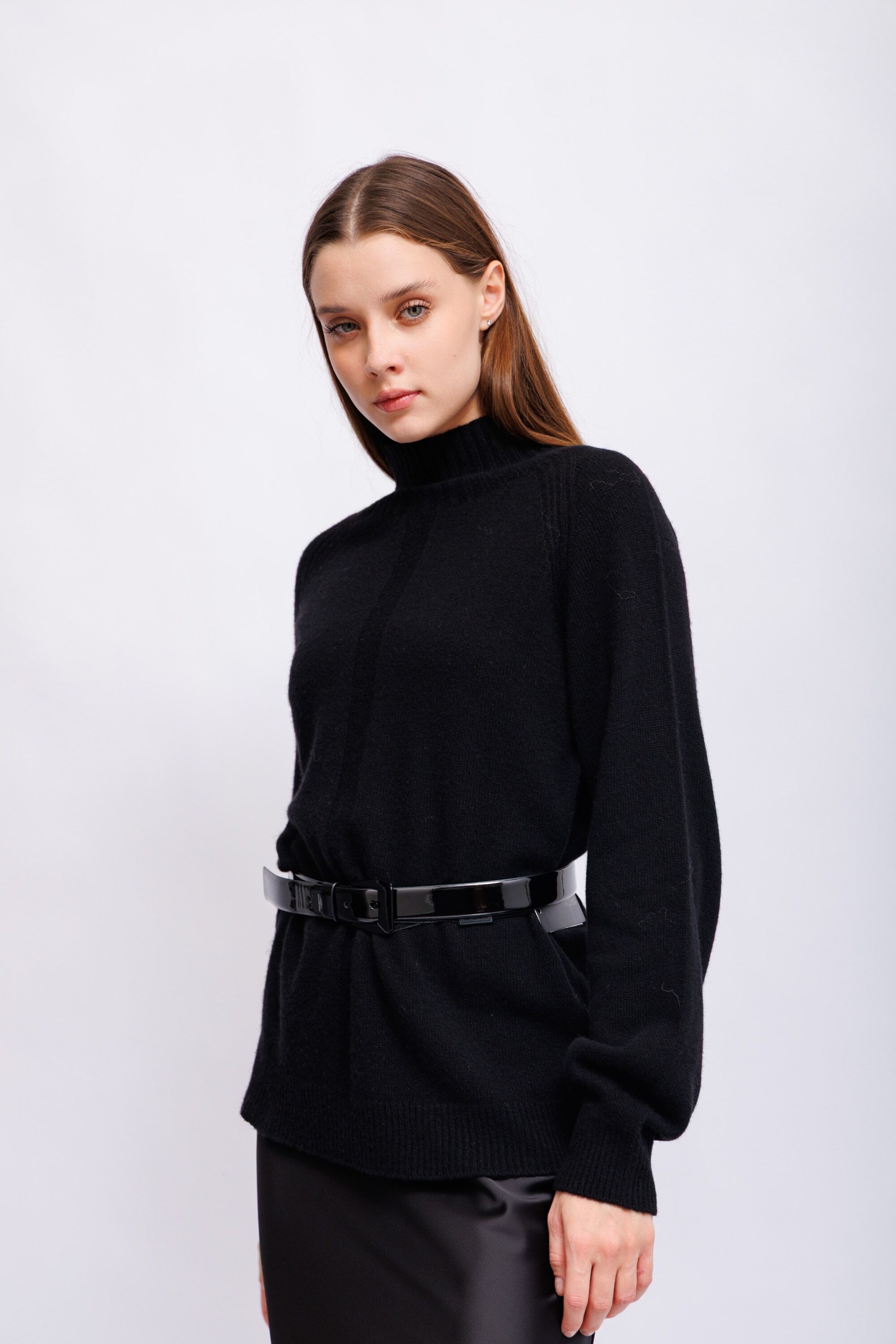 выполнен из блестящей лакированной кожи. Имеет квадратную металлическую пряжку в тон. Это делает его привлекательным аксессуаром для современных брюк и платьев.