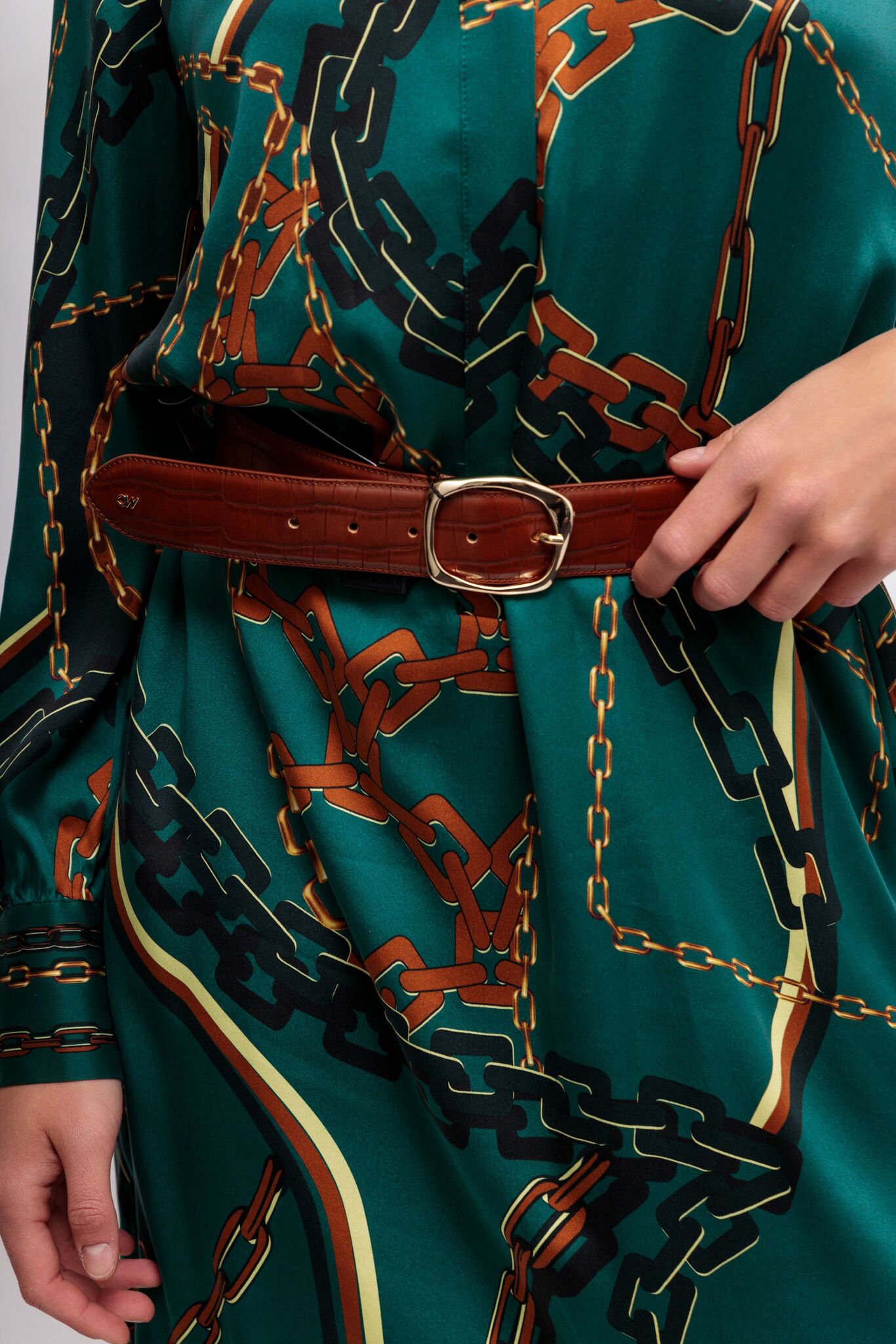 Кожаный ремень с тисненым крокодиловым узором.