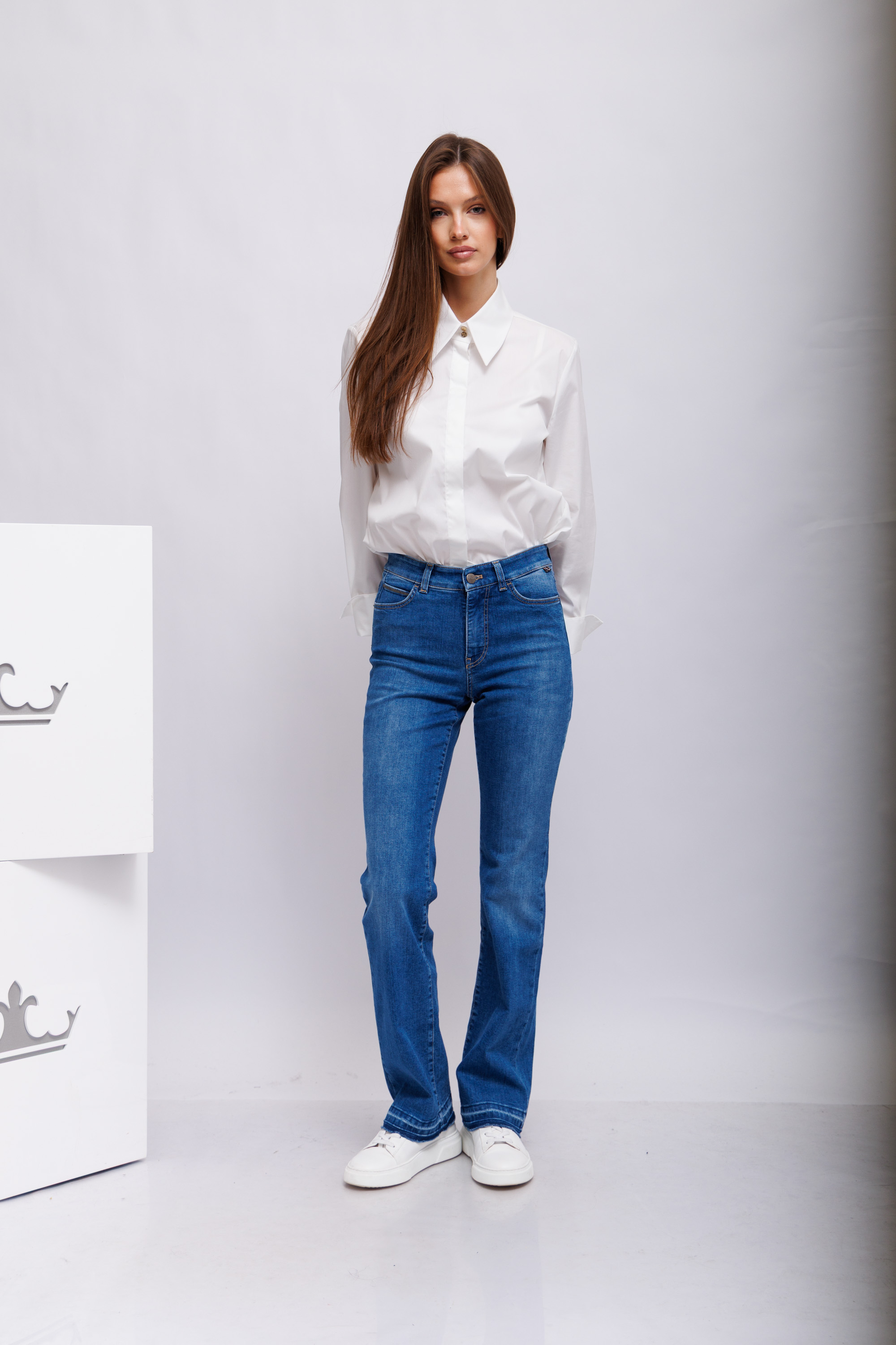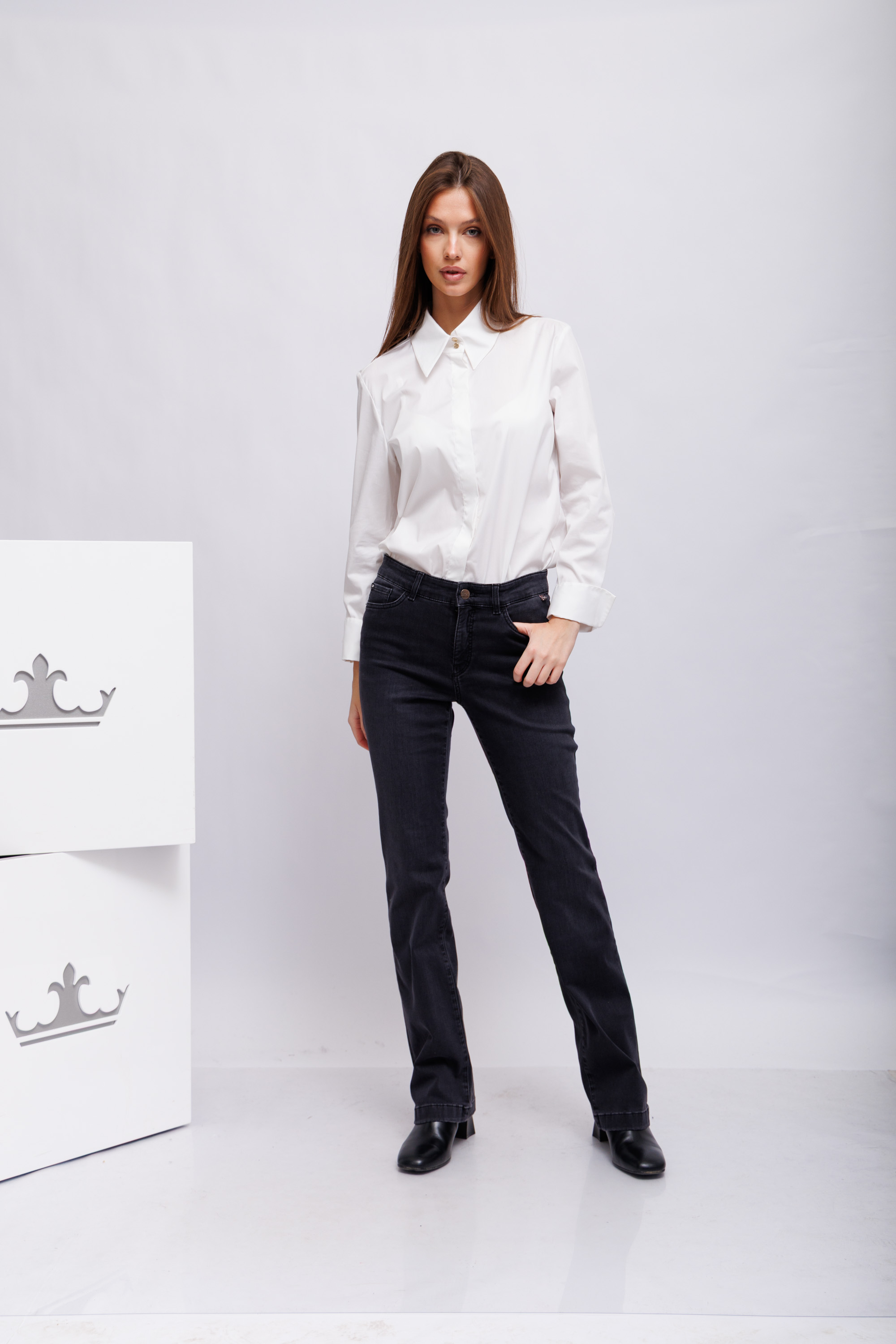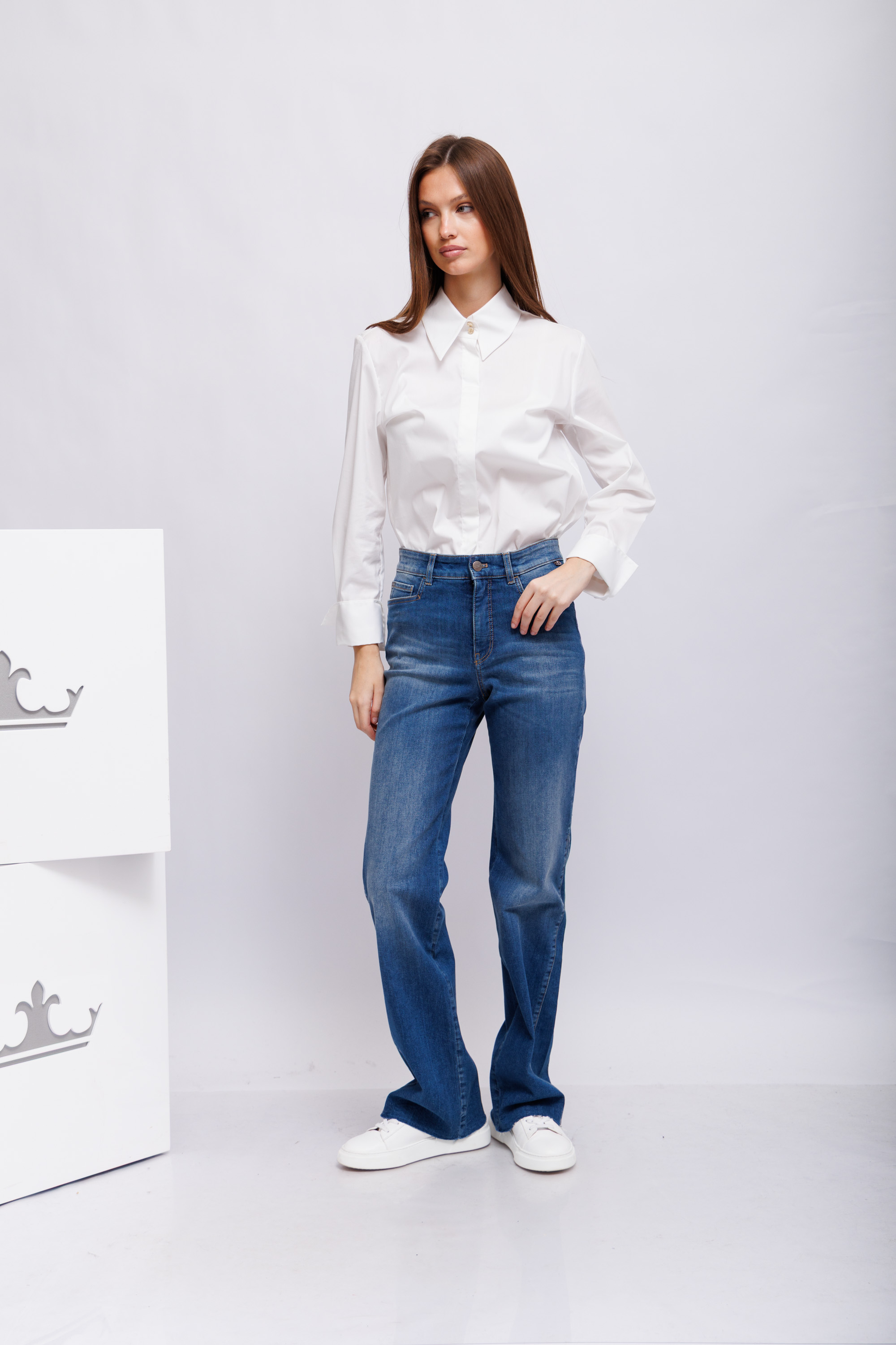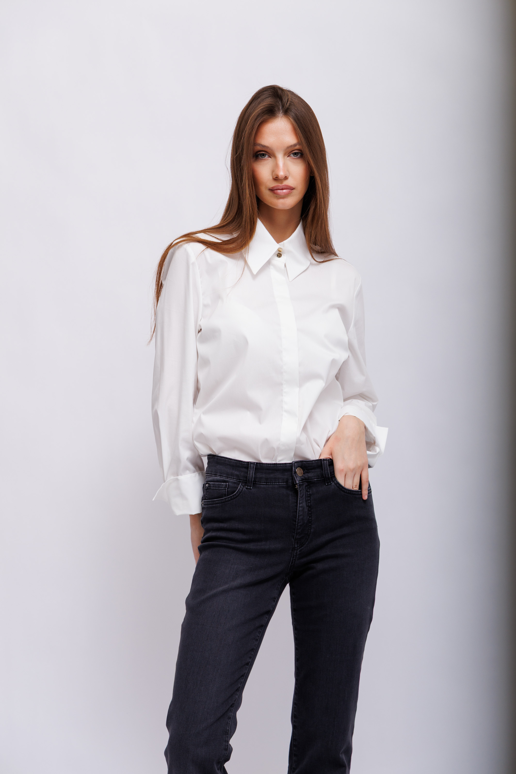 Белая рубашка из хлопка с эластаномНа пуговицах, скрытых под планкойКлассический воротДлинные рукава на манжетах с пуговицами