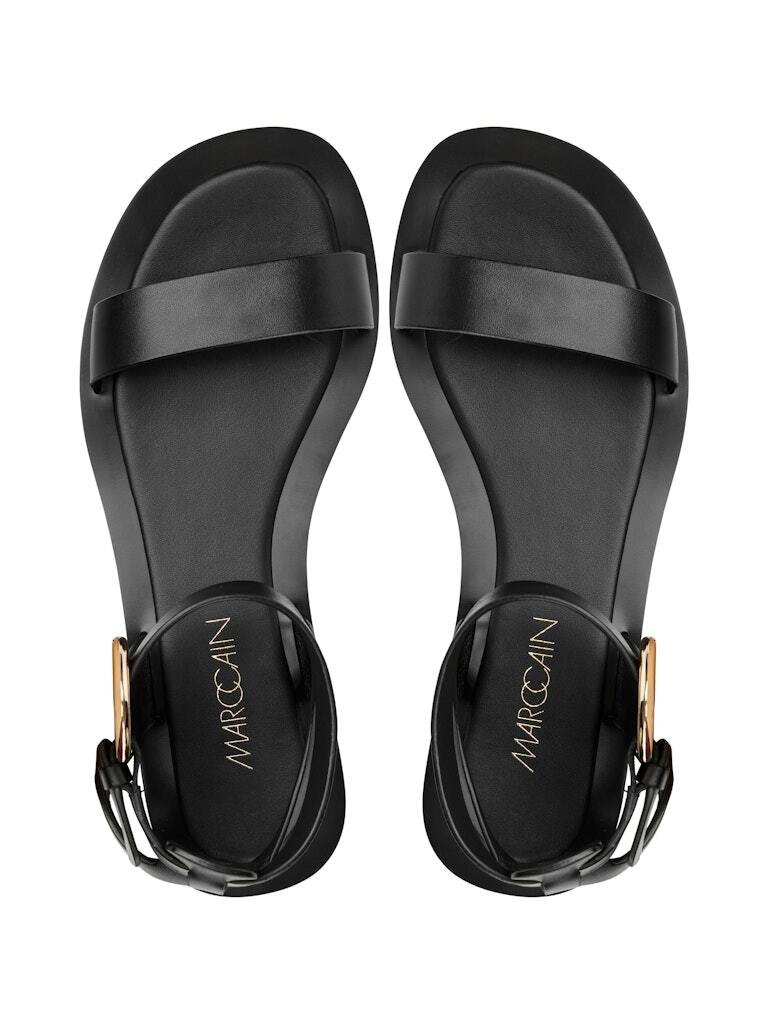 Сандалии с широким ремешком на щиколотке и большой пряжкой. Носок круглый, пятка низкая. Мягкая стелька делает эти сандалии исключительно удобными для ношения. Можно комбинировать разными способами.