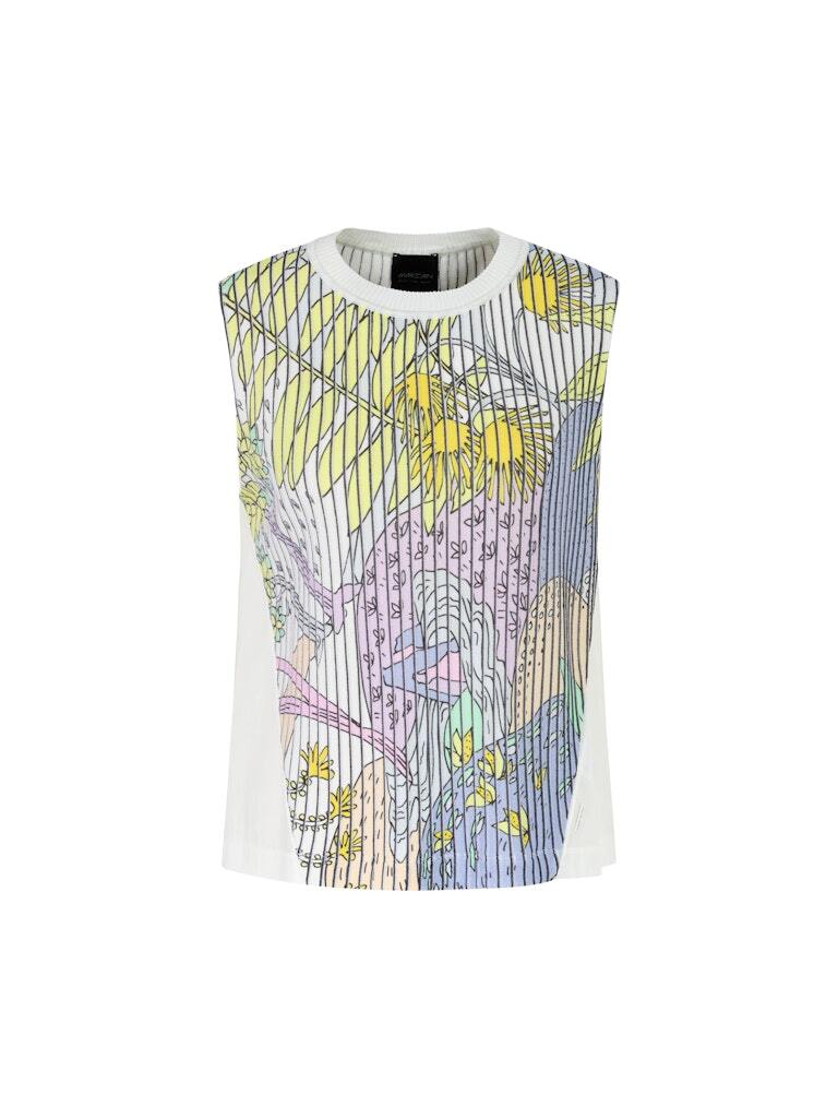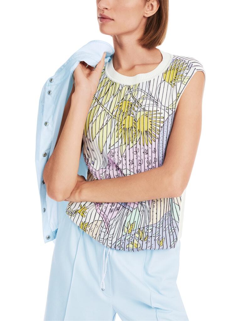 Топ трикотажный в цветной принт с фактурными полосками