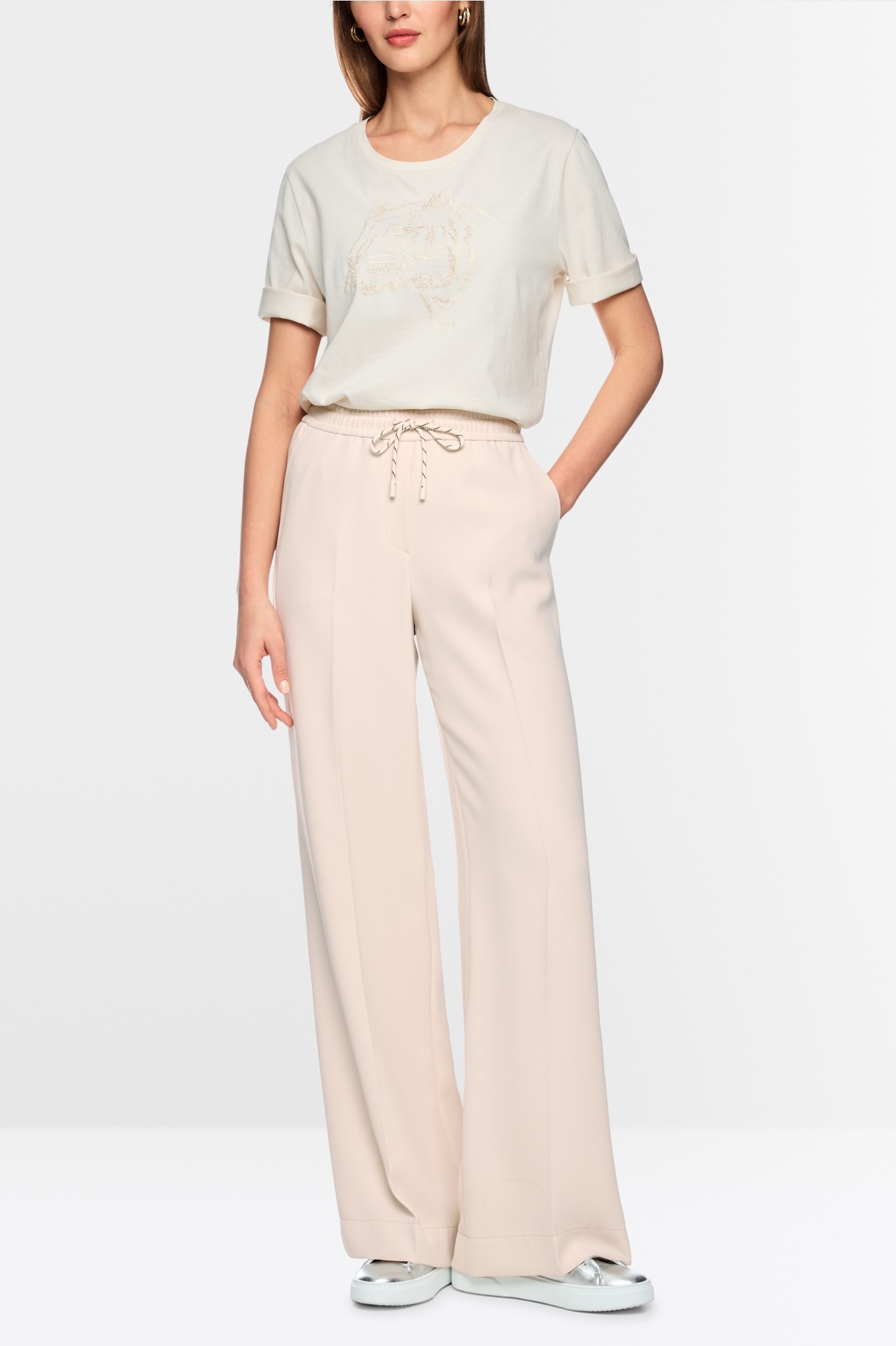 Брюки WELKOM — это спортивные брюки с мягким, струящимся силуэтом. Широкий крой, складки и дополнительная длина выглядят особенно современно. Эластичный пояс в спортивном стиле со встроенным шнурком обеспечивает комфортную посадку. С практичными боковыми карманами.