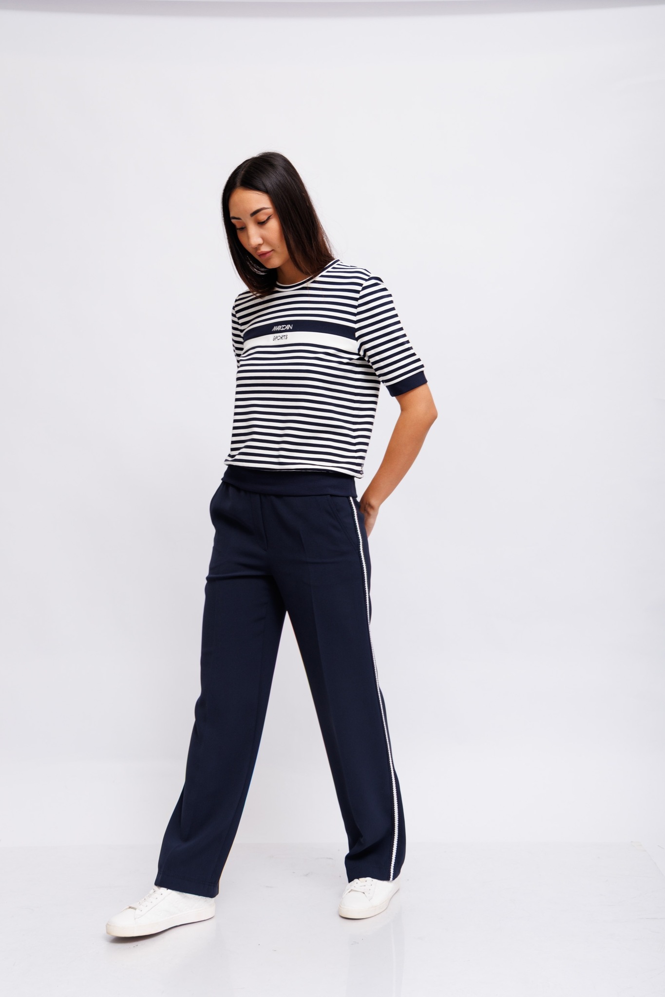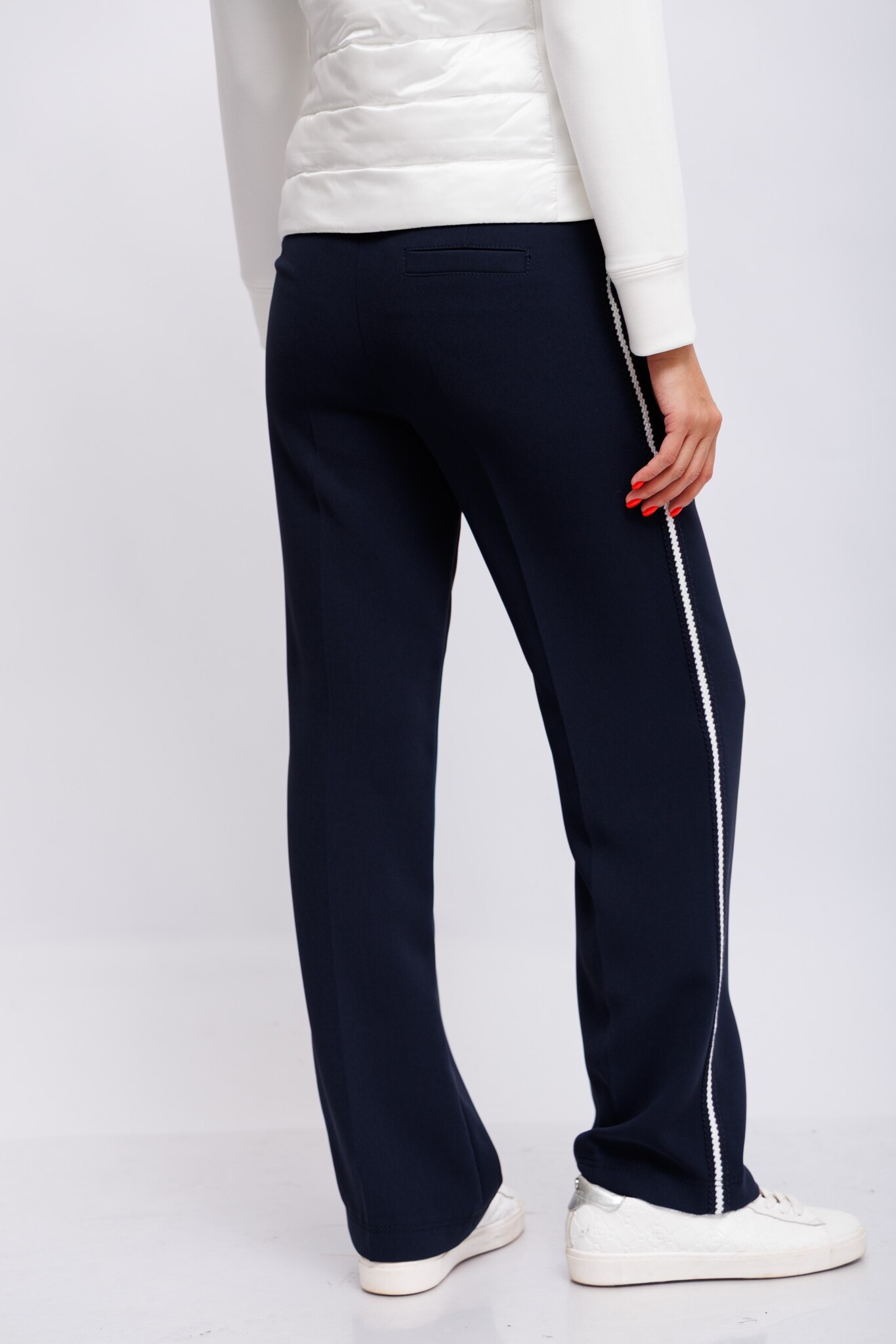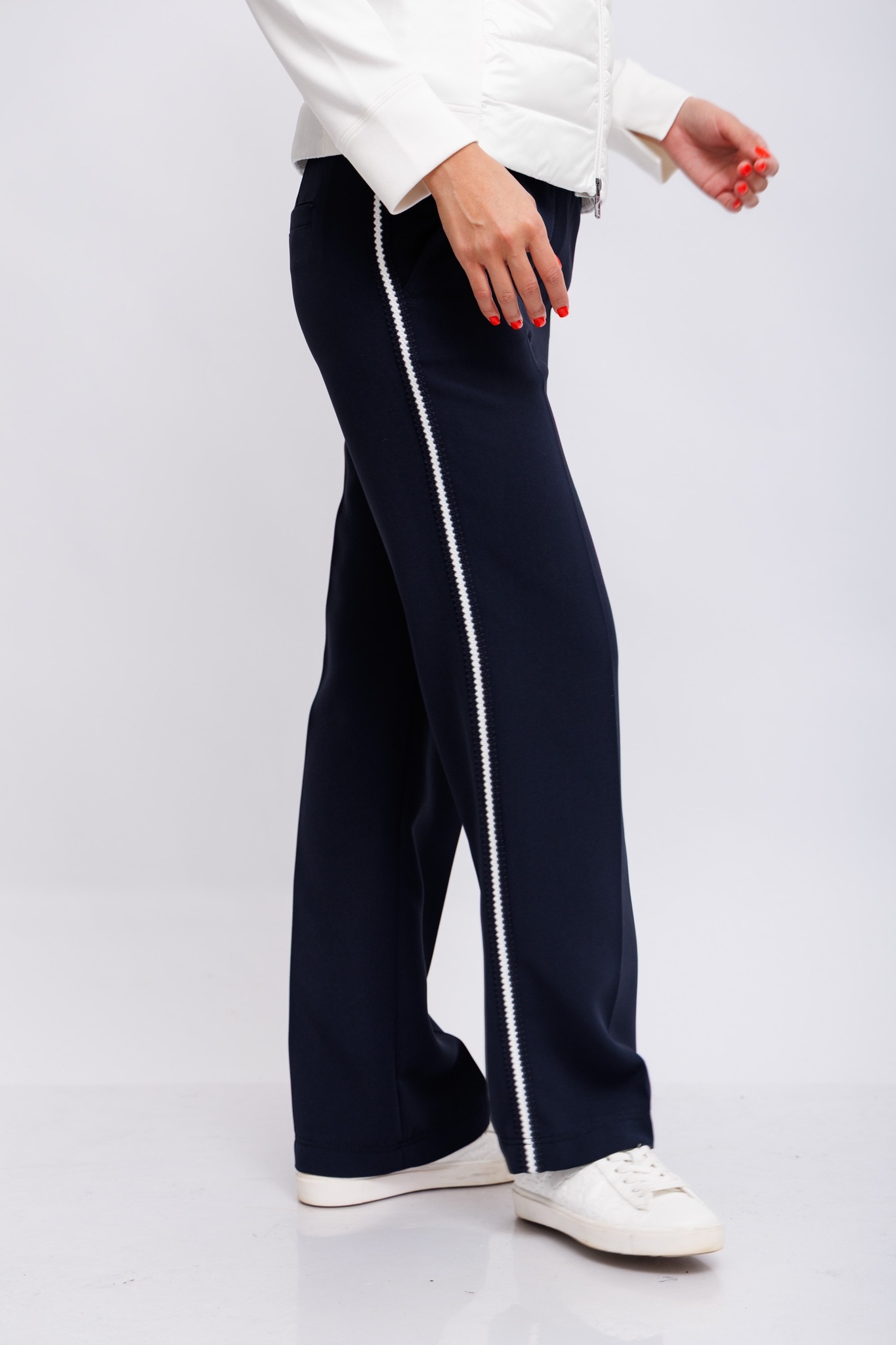 WASHINGTON — широкие брюки из мягкой струящейся ткани. Они имеют отстроченный пояс и прямые брючины со складкой. Привлекательная спортивная отделка лентой вдоль бокового шва. Дополнительные детали включают карманы-крылышки и ложный прорезной карман сзади. Модные и подходят даже для офиса.