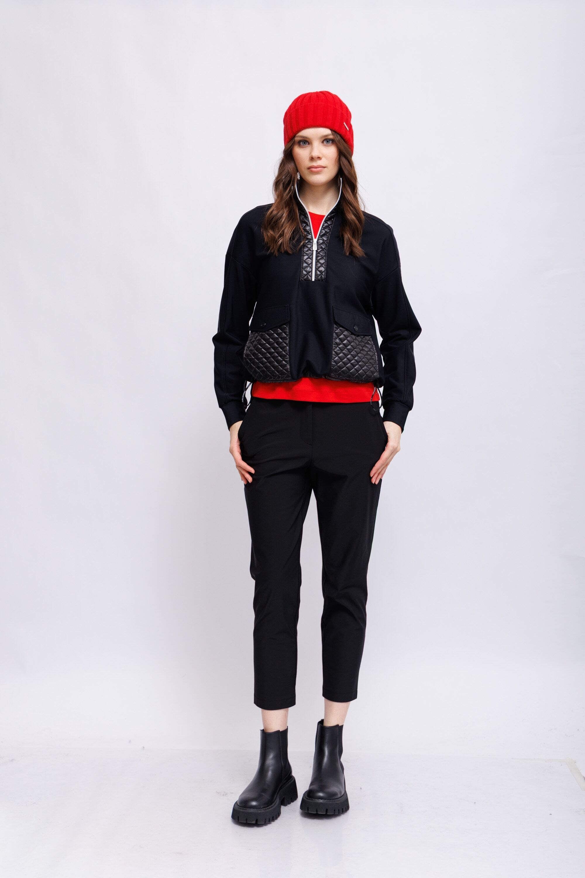 Женственные брюки прямого кроя модной длины 7/8. Застегиваются на классическую пуговицу и молнию, а сзади на поясе резинка для дополнительного комфорта. Универсальные и легко комбинируемые – идеально подходят для создания спортивных и элегантных образов.