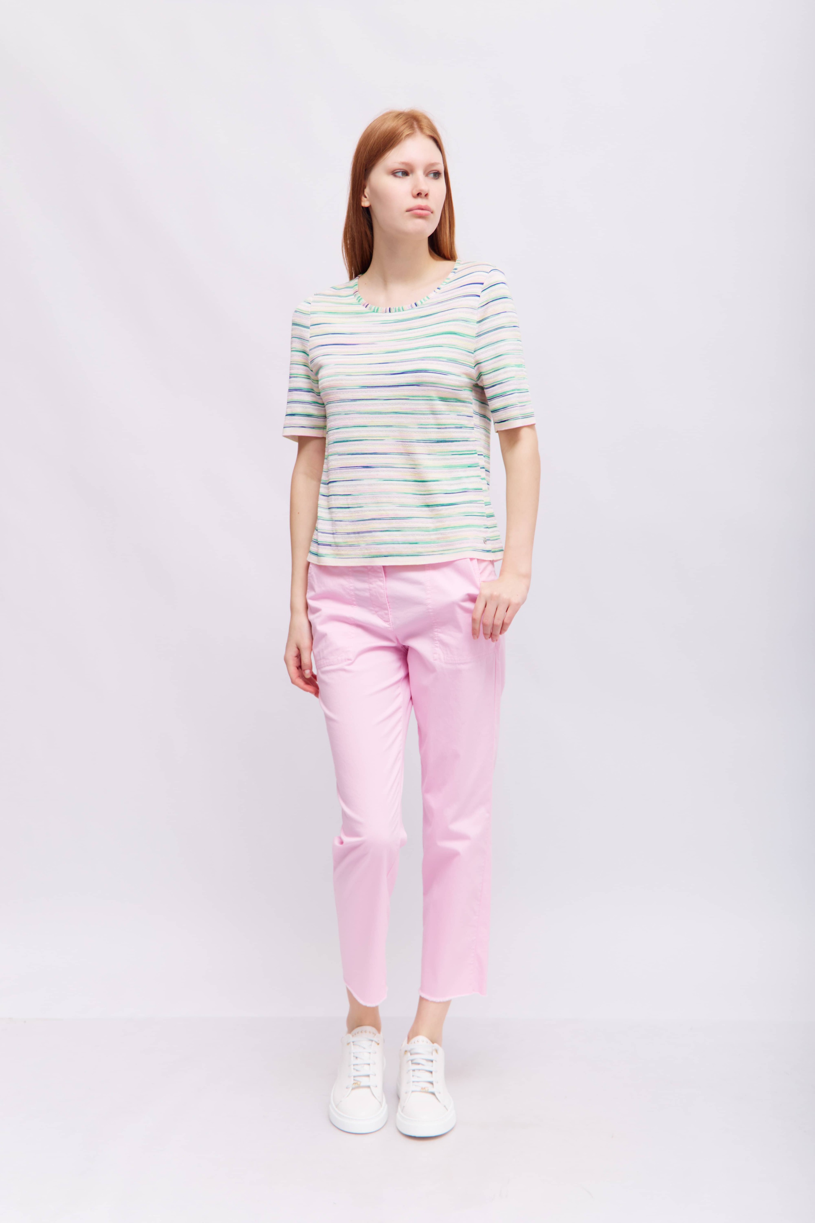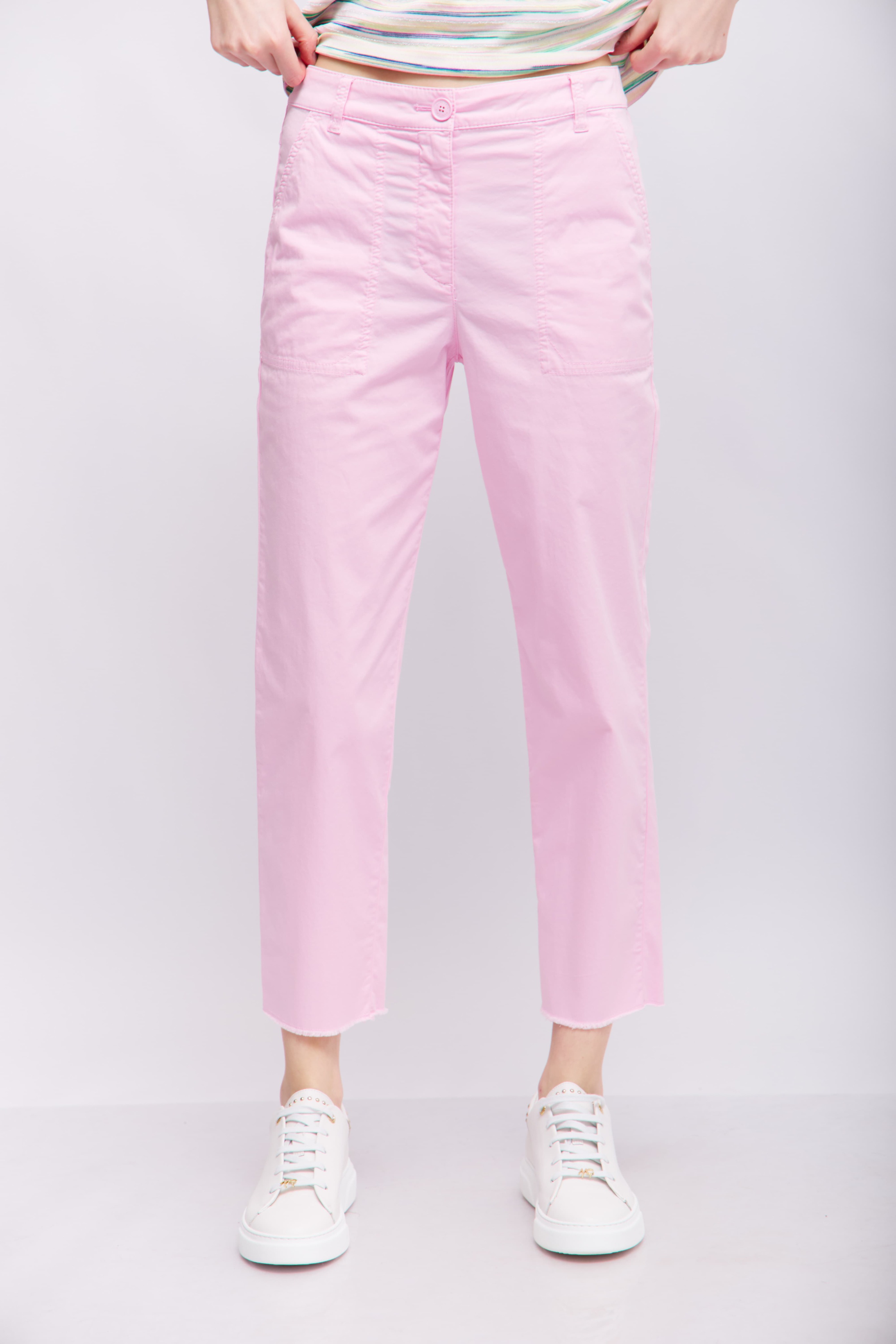 Брюки неширокие из хлопка со льном в освежающе-розовом цвете