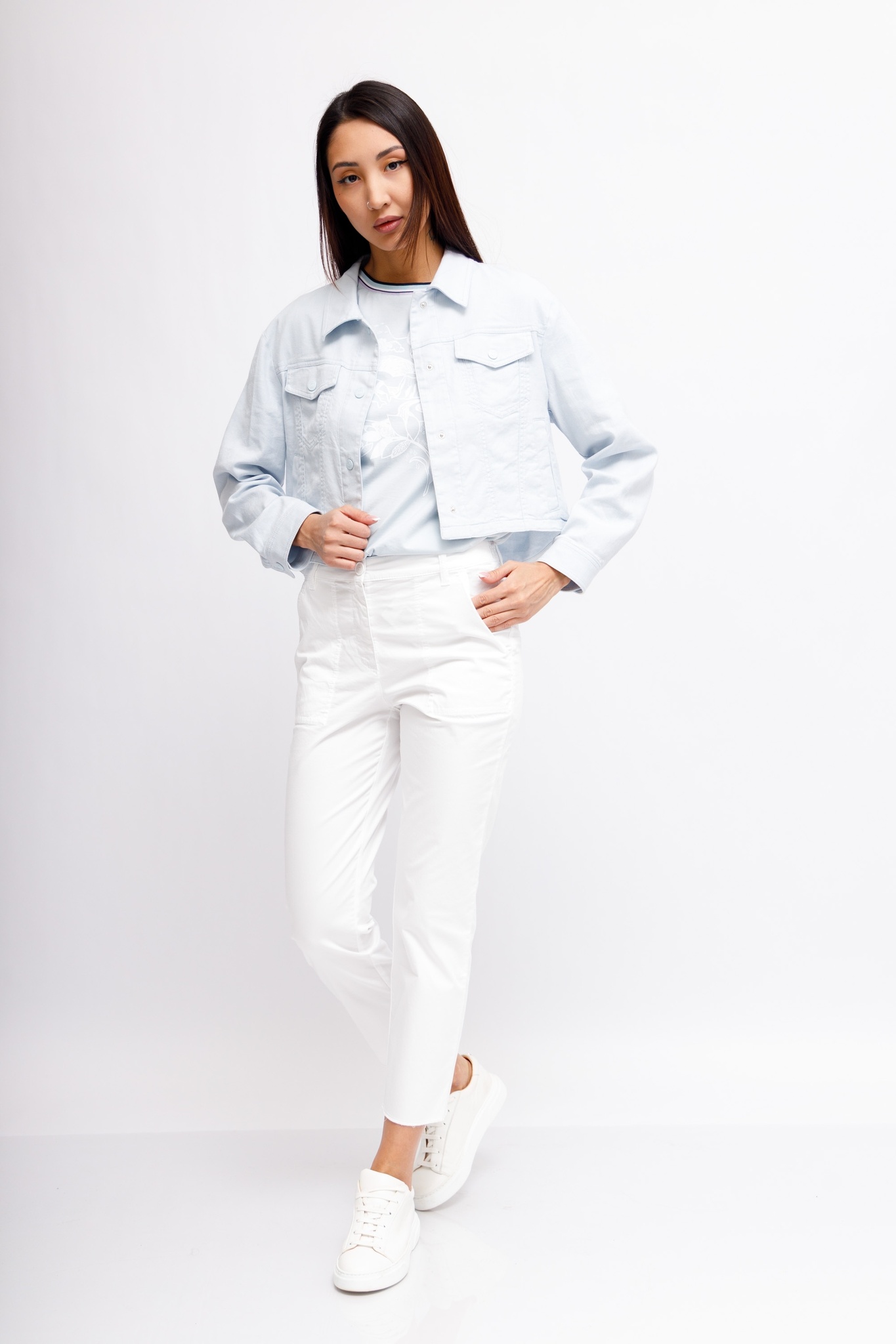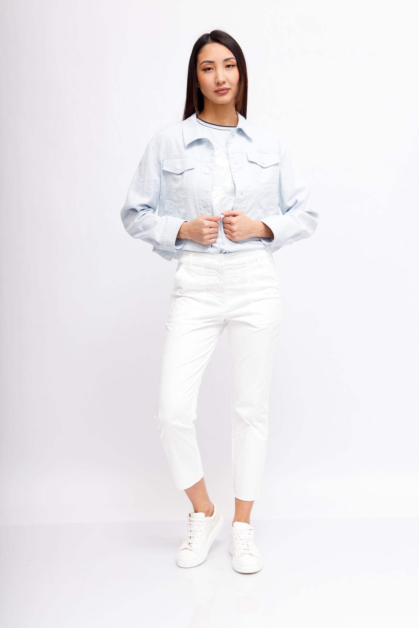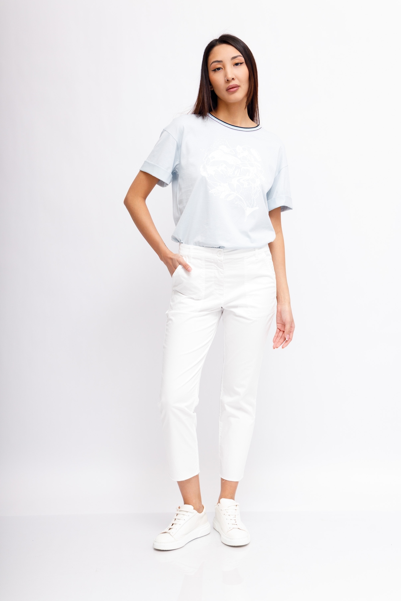 Брюки белые неширокие из хлопка со льном