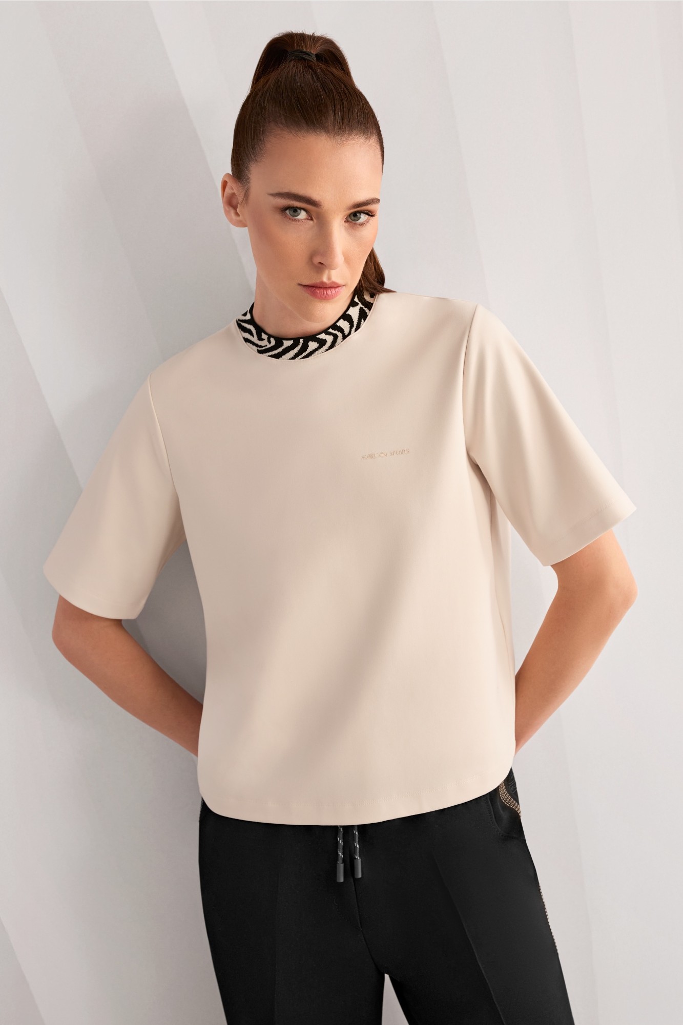Marc Cain Sports Футболка из хлопка и модала с контрастной отделкой