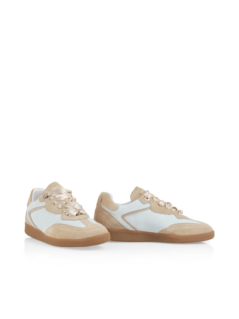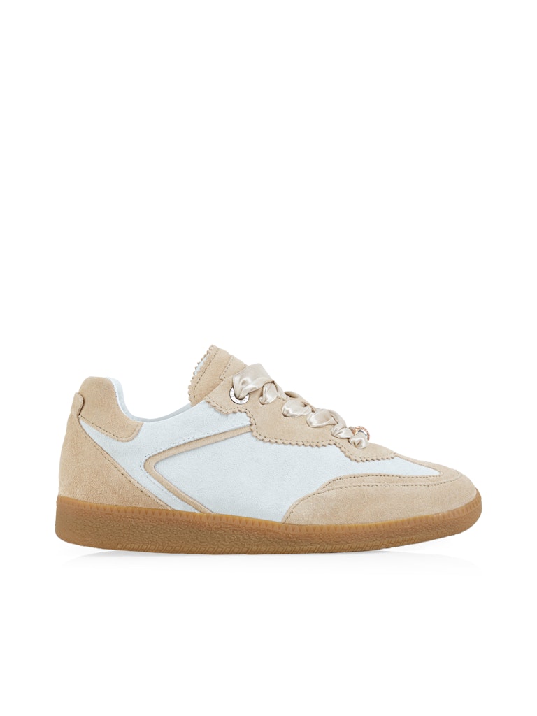 Спортивные кроссовки из мягкой замши двух гармоничных оттенков. Круглый носок и классические шнурки обеспечивают оптимальный комфорт. Высококачественная кожаная подкладка впечатляет, а контрастная резиновая подошва обеспечивает надежное сцепление.