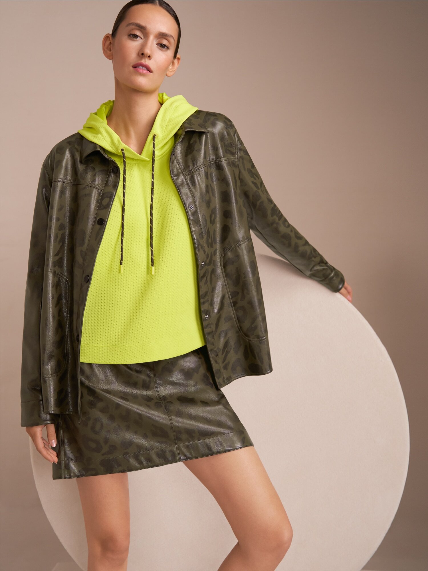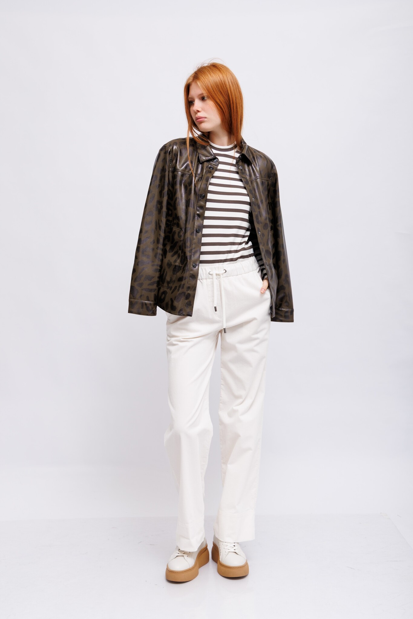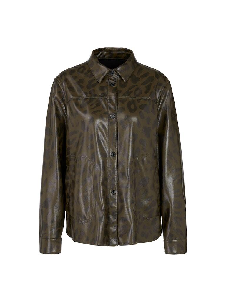 Стильная рубашка с леопардовым принтом из искусственной кожи.