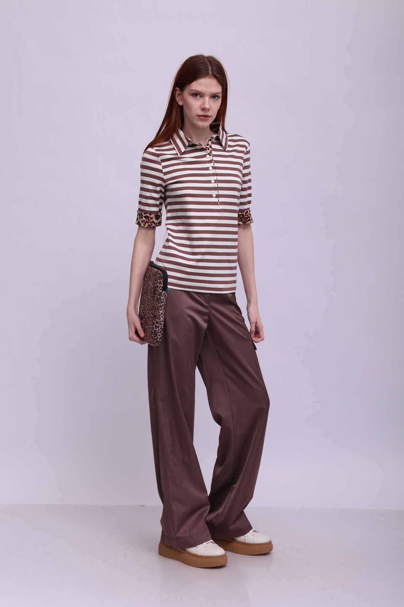 WUKARI — это пара широких брюк из эластичной ткани. Они имеют высокую талию и удлиненный крой. Слегка расклешены и подчеркнуты складками спереди. Застежка состоит из молнии, крючка и пуговицы.