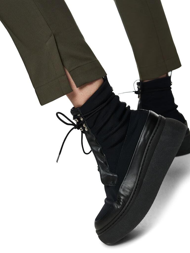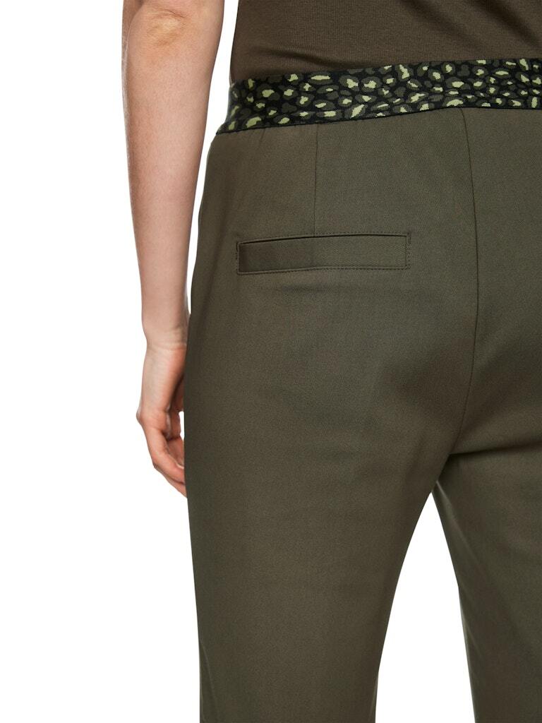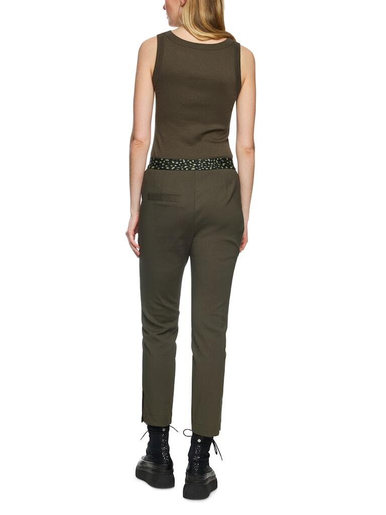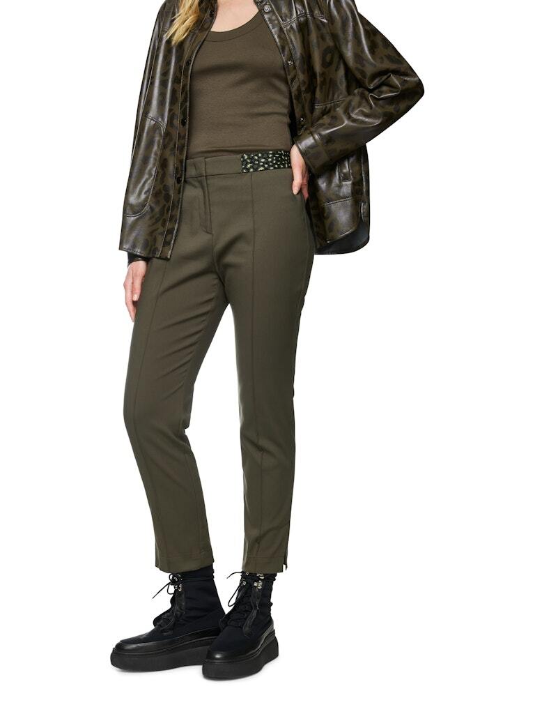 Стильные деловые брюки облегающего кроя с застроченной стрелкой. Идеальные офисные брюки изготовлены из органического хлопка и переработанного синтетического материала. Брюки SYDNEY застегиваются на пуговицу, крючок и молнию. Эластичный пояс с контрастным узором обеспечивает оптимальную посадку.