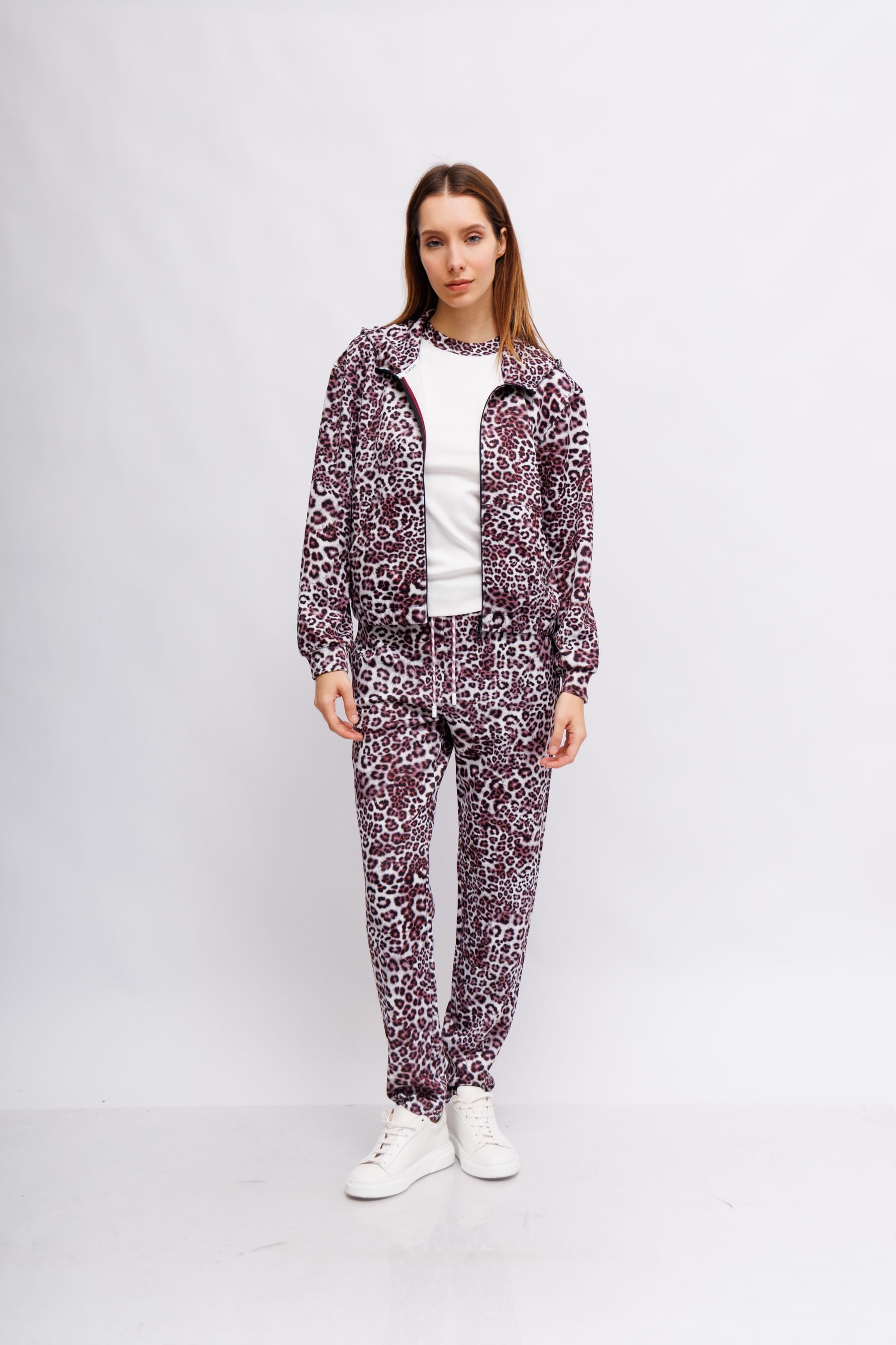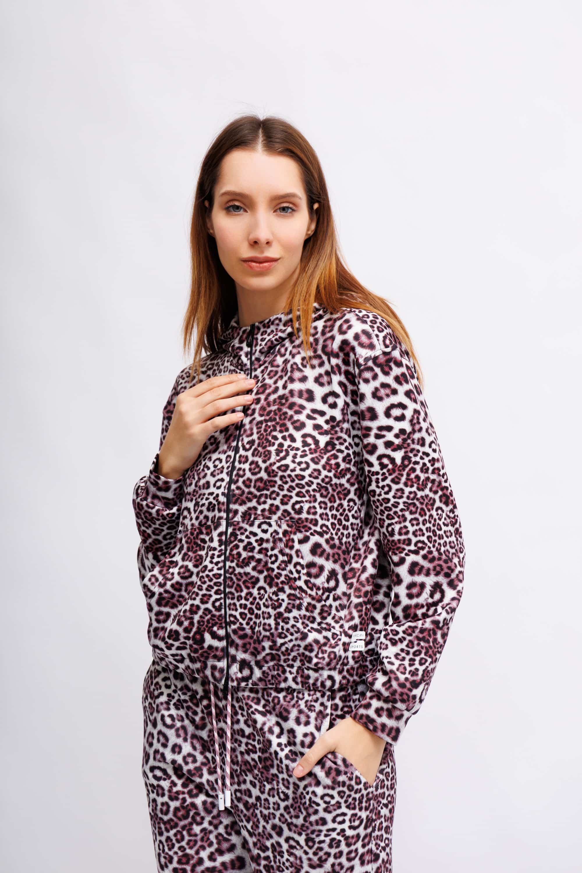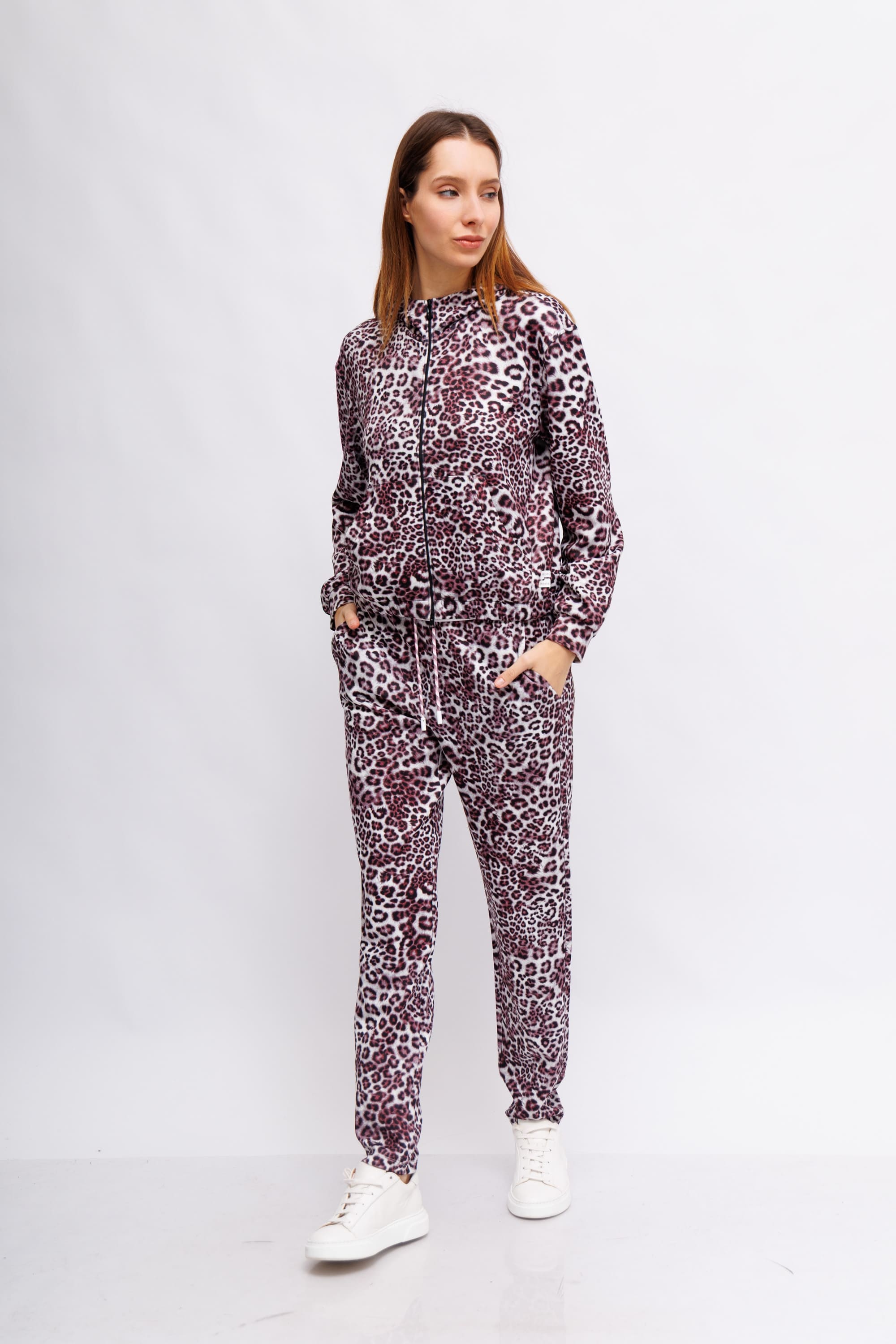 Спортивный костюм в леопардовый узор с оттенком рододендрона