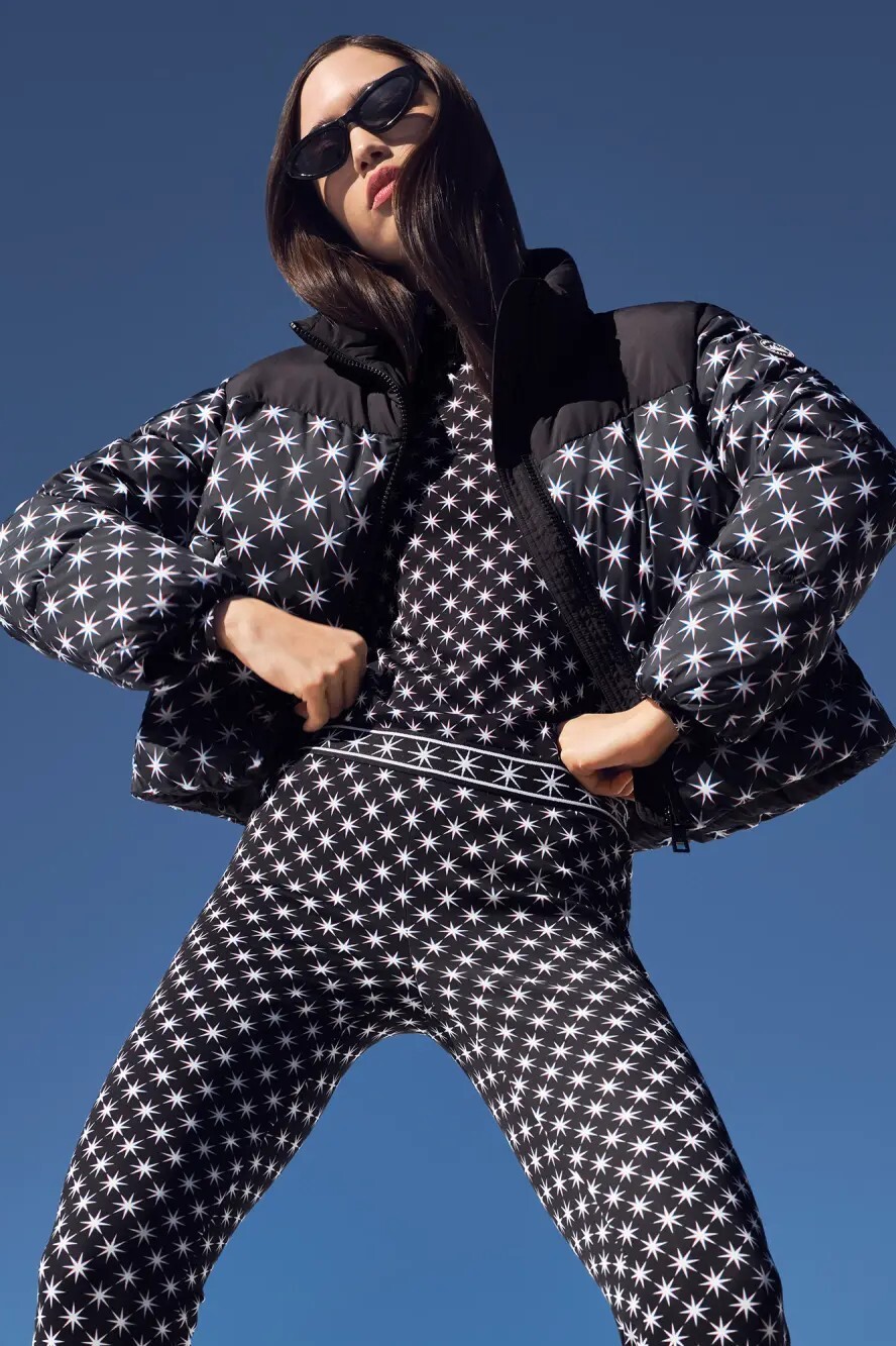 Приталенная модель с длинными рукавами и круглым воротником в сплошном узоре «Снежная звезда». Плотный крой и лёгкий материал делают её идеальным вариантом для многослойных образов. Броский принт создаёт спортивный, современный образ — идеально подходит в качестве базового слоя для стильных зимних нарядов.