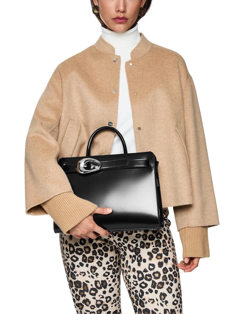 Элегантная сумка из матовой телячьей кожи – высококачественная, стильная и универсальная. Эта сумка с практичной застежкой-молнией, съемным плечевым ремнем и декоративной застежкой с логотипом серебристого цвета сочетает в себе функциональность и элегантный дизайн. Идеально подходит как для повседневного использования, так и для деловых поездок, предлагая как многофункциональность, так и современный вид.