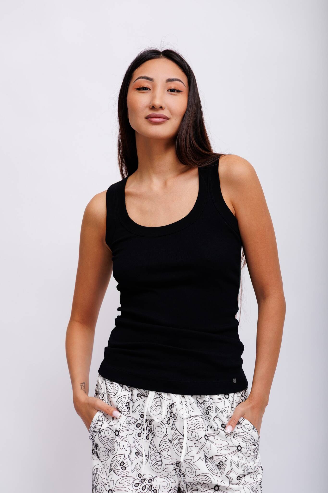 Трикотажный топ- майка черного цвета