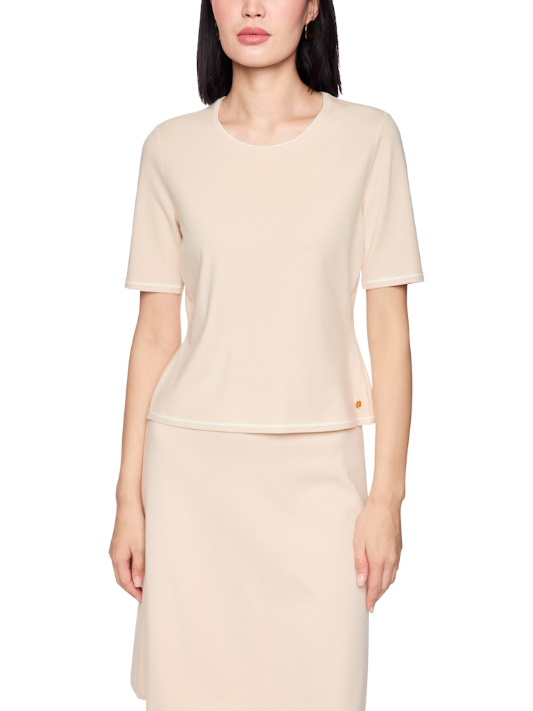 из мягкой вискозной смеси с контрастными полосатыми деталями. Круглый вырез и короткие рукава придают этому джемперу повседневного кроя современный вид. Изделие связано в Германии: пряжа вяжется на современных вязальных машинах, а отделка материалов производится в Германии. Этот джемпер входит в программу устойчивого развития Rethink Together.