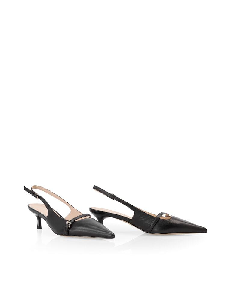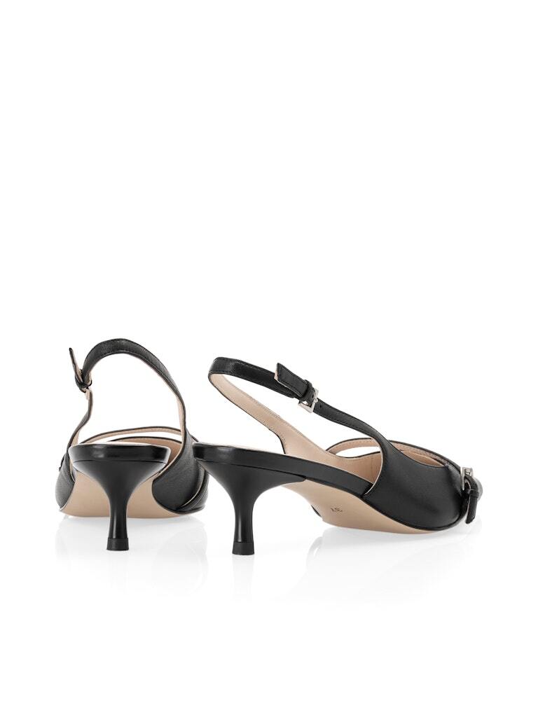 из блестящей ламинированной кожи станут изысканным дополнением к женственным нарядам. Имеют декоративные ремешки и небольшую пряжку. Каблук-шпилька высотой 50 мм имеет соответствующую цветную отделку. У обуви заостренный носок и круглый каблук.