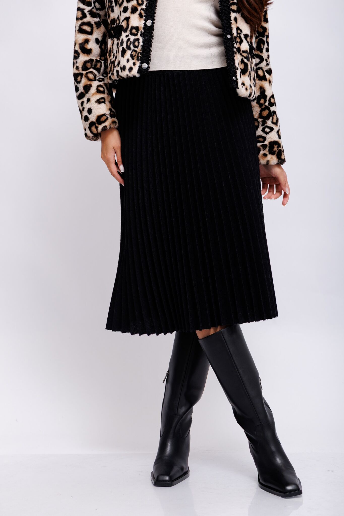 Черный цвет. Модель выполнена из шерстяного трикотажа с альпакой. Талия отделана резинкой. Подкладка придает модели гармоничный контур. Легкая основа для модных образов. Юбка связана в Германии с использованием новейших технологий. Отдельные детали сшиты на европейских фабриках-партнерах.