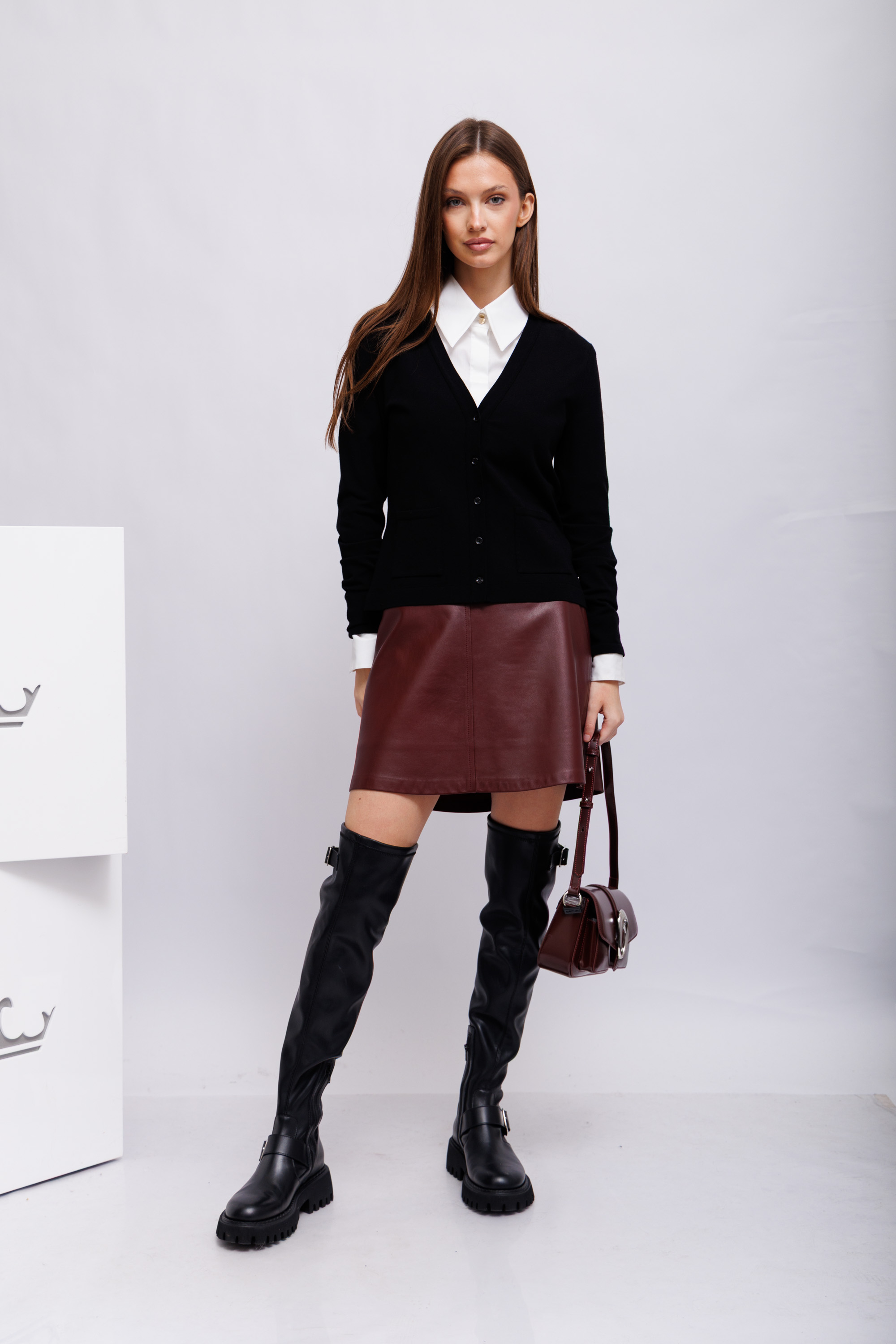 Юбка винного цвета из эко-кожи