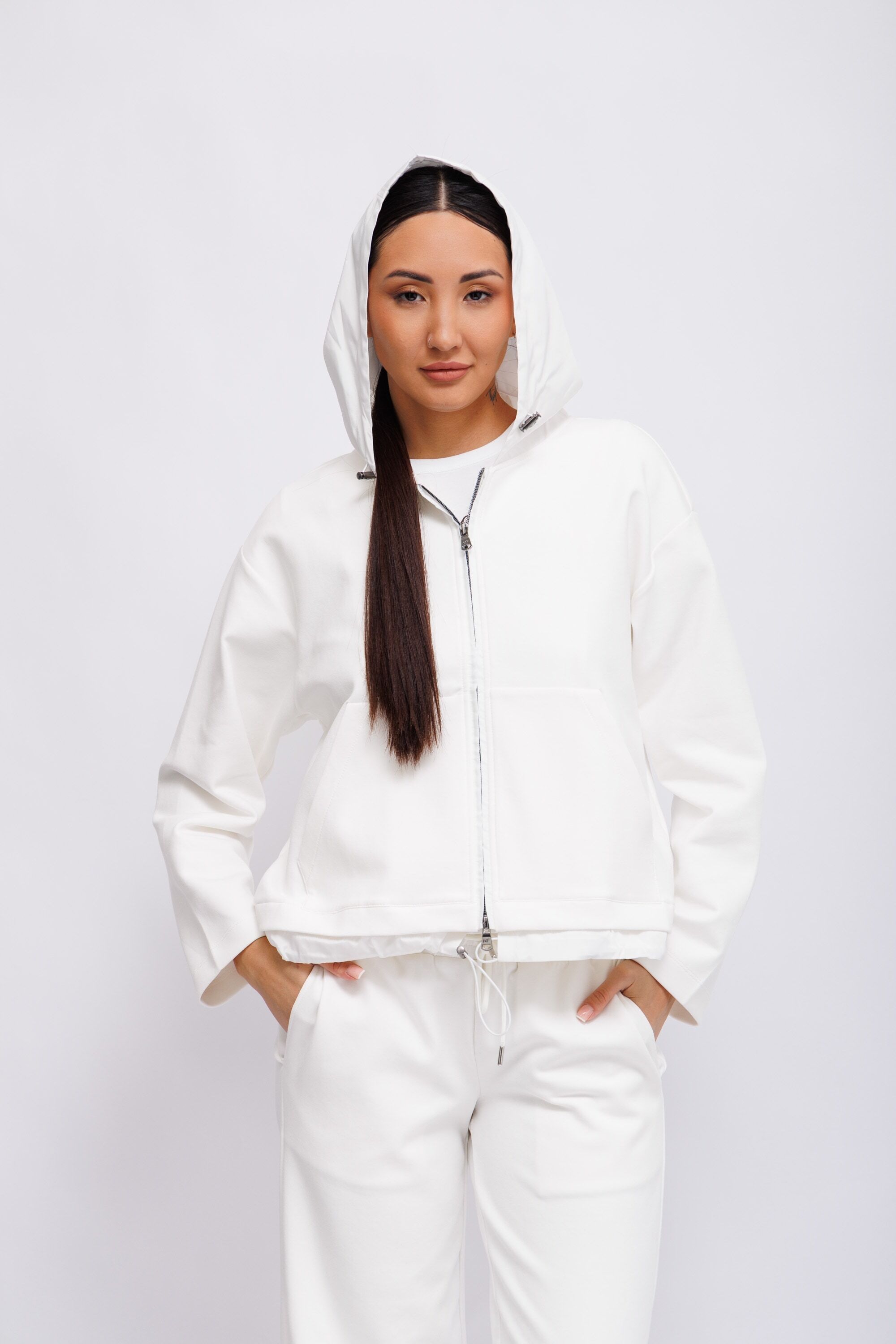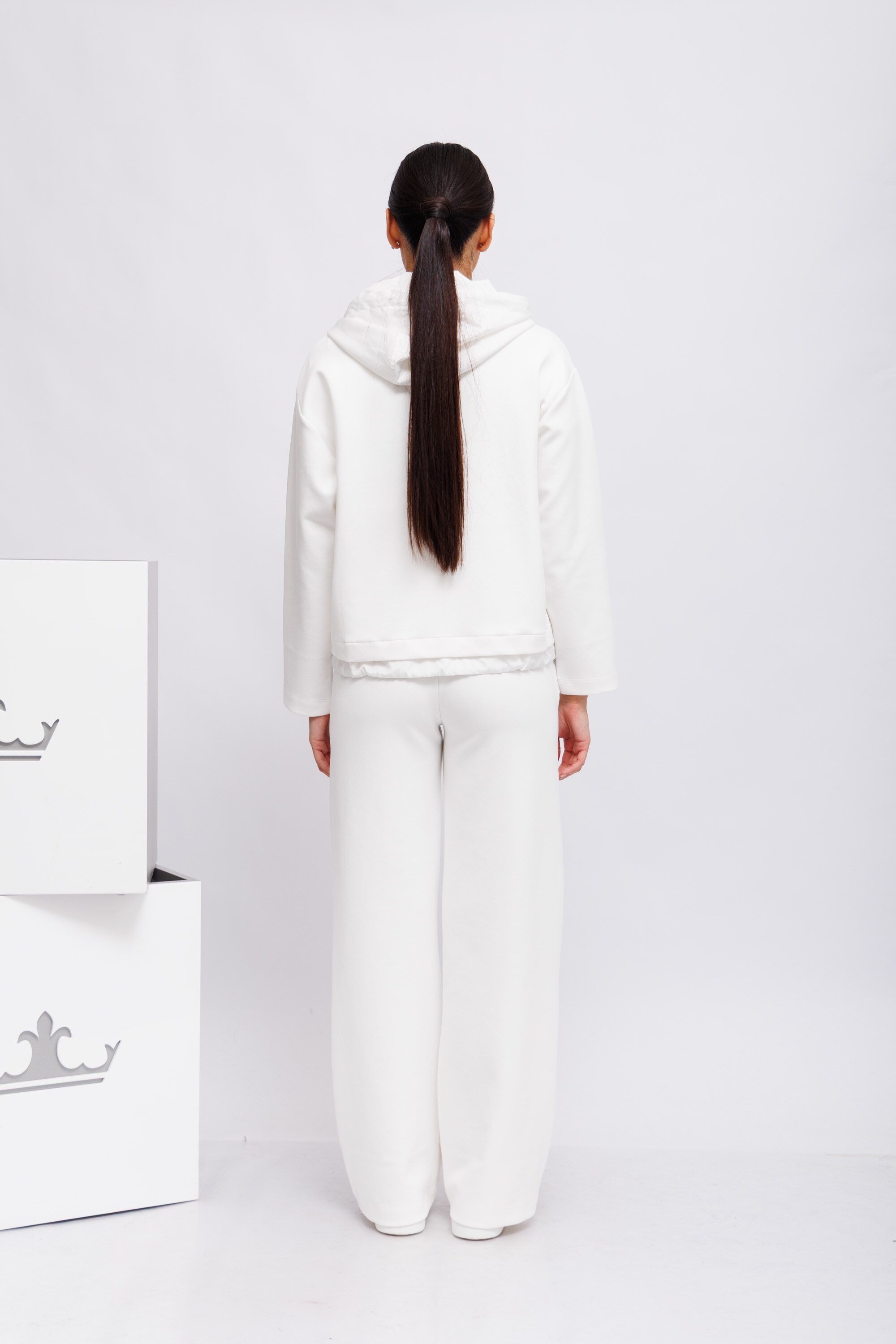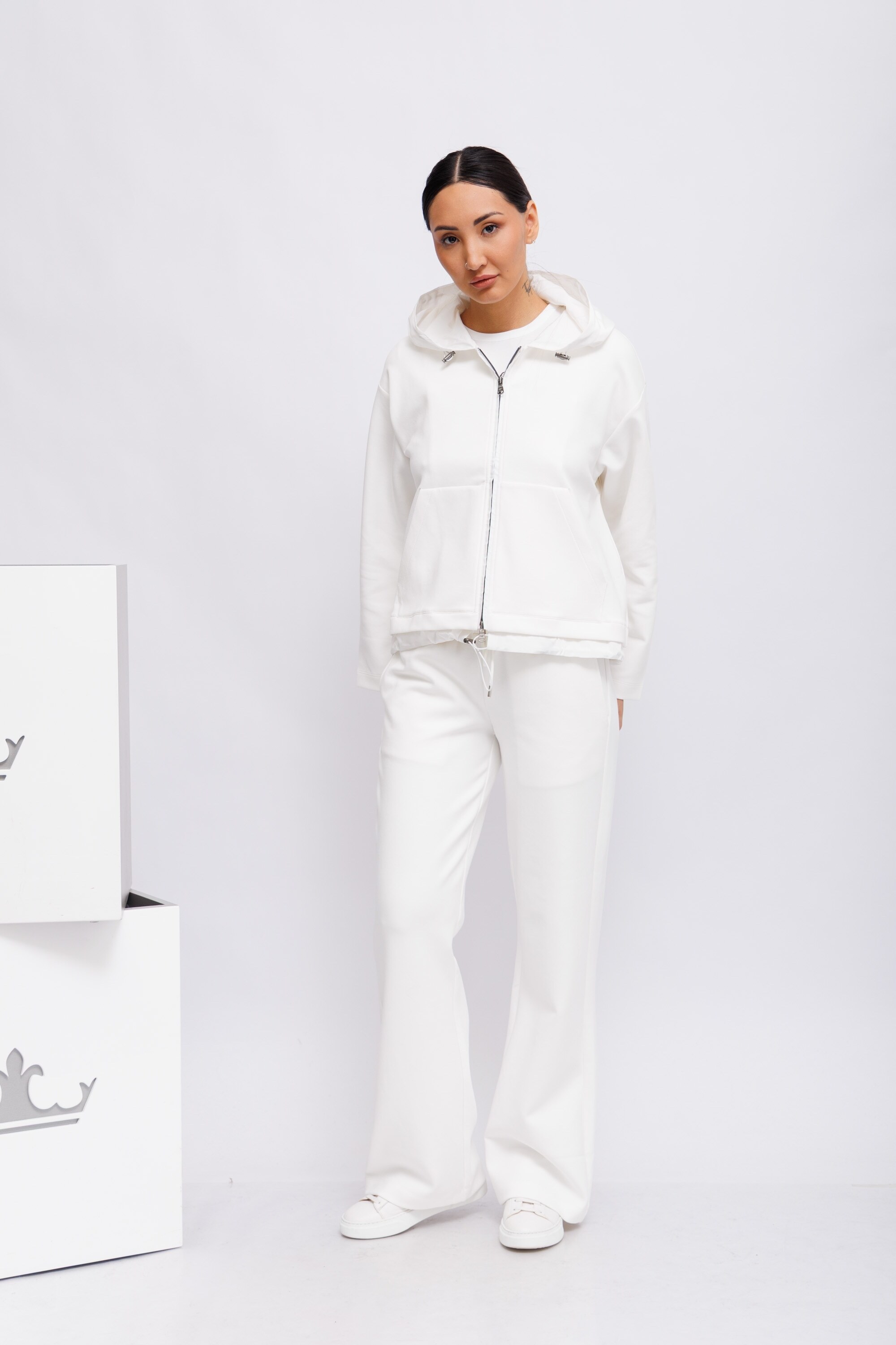 Костюм с джоггерами в молочном цвете из высококачественного эластичного хлопка