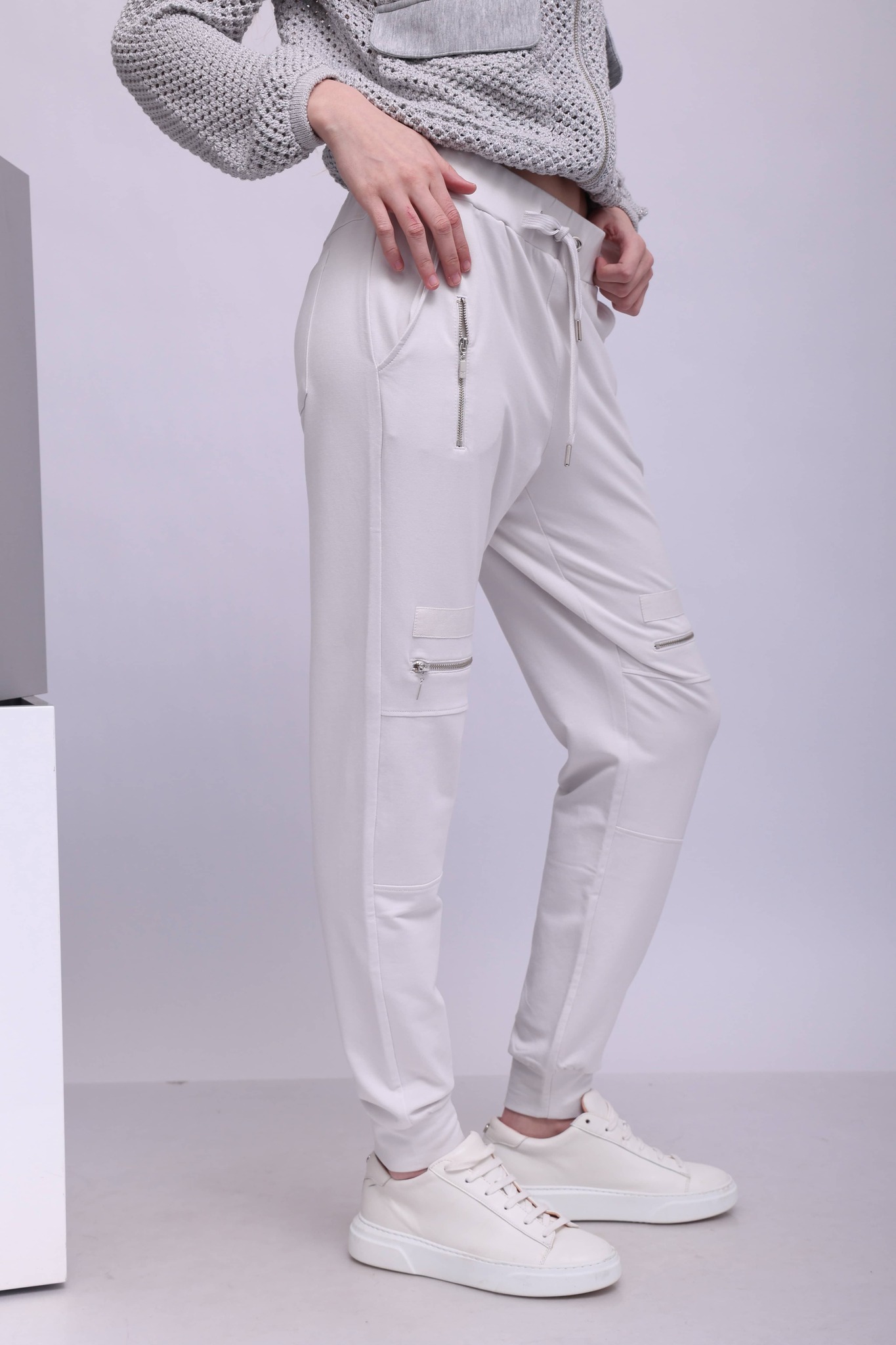 С карманами на молнии на штанинах Высококачественная смесь с хлопком Тактильно приятные мягкие Средняя высота талии Эластичный пояс с кулиской Боковые карманы Накладные задние карманы Манжеты