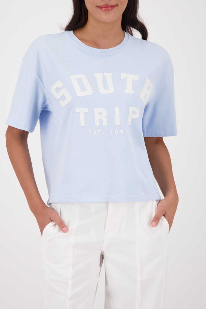 Внутренняя сторона из махровой тканиВышитая надпись «South Trip»Стандартный кройКруглый вырез горловиныКороткие рукава
