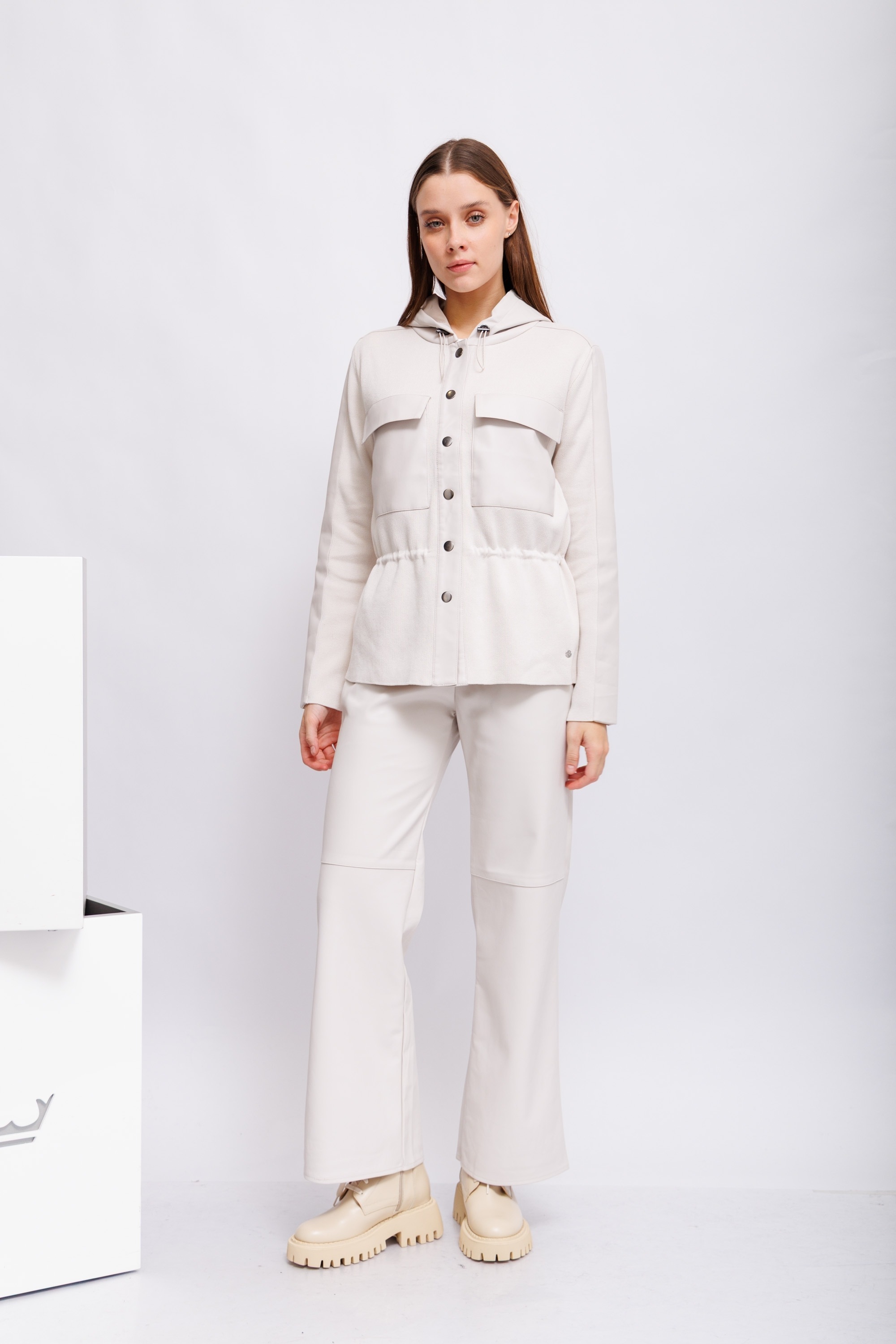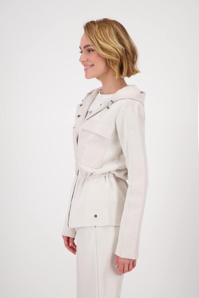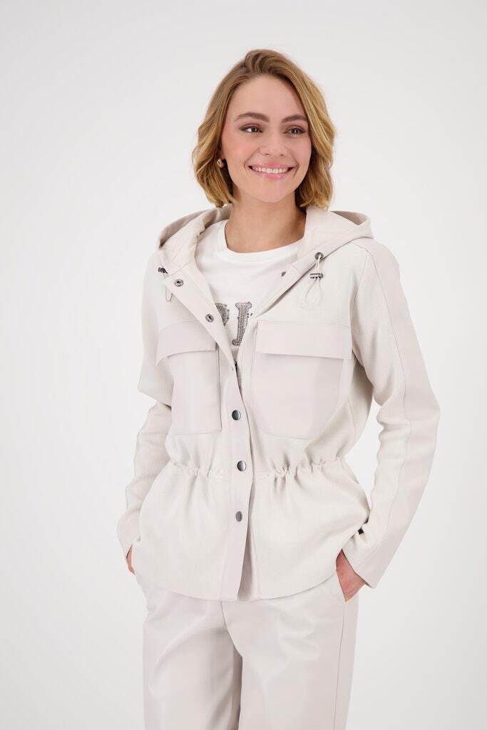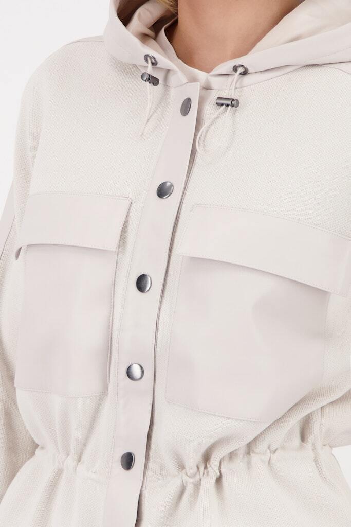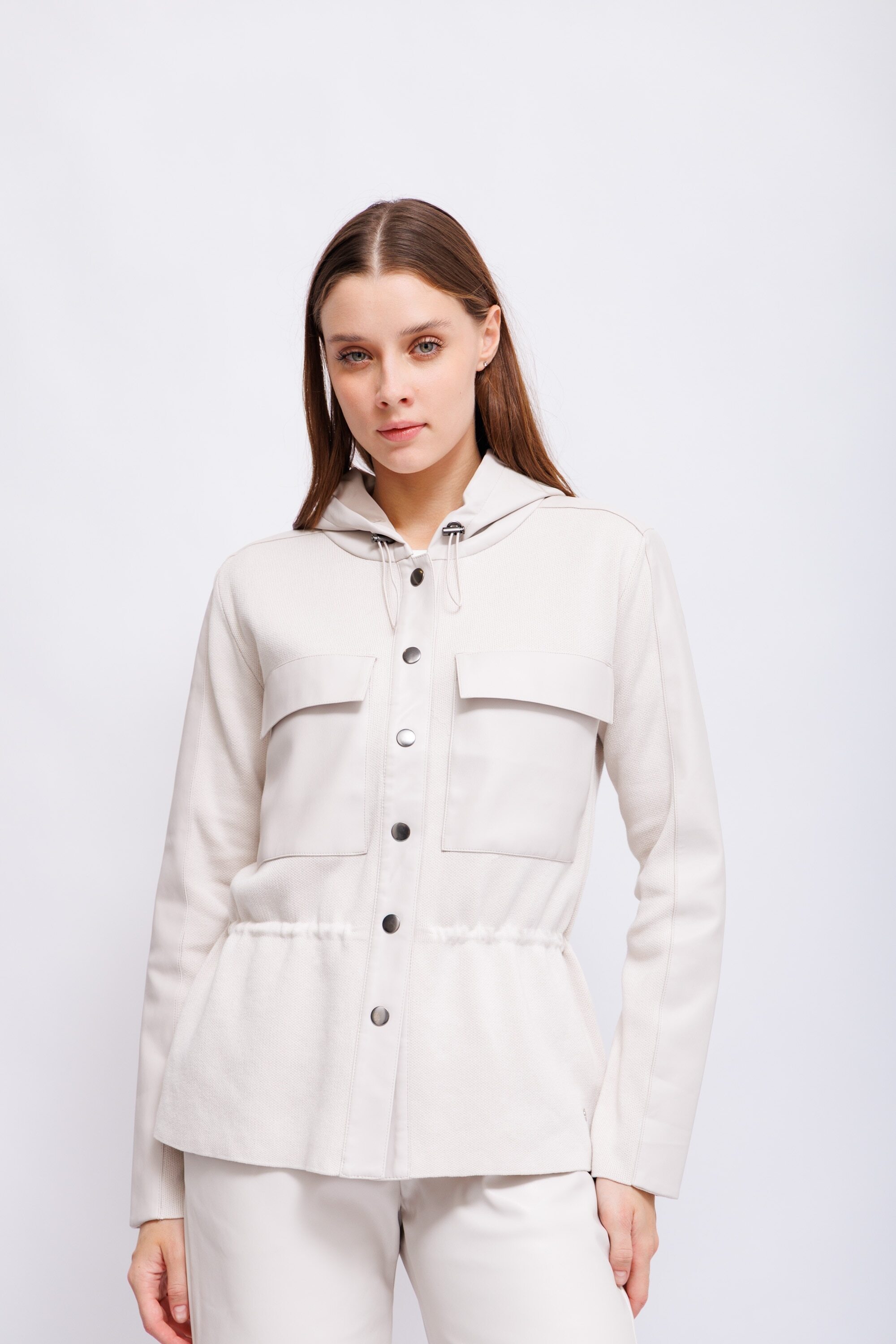 Эта стильная куртка с капюшоном сочетает в себе высококачественный хлопок, струящуюся вискозу и элегантный кожаный крой. Практичные детали, такие как эластичная кулиска, карманы с клапанами и планка с пуговицами, дополняют женственный образ.