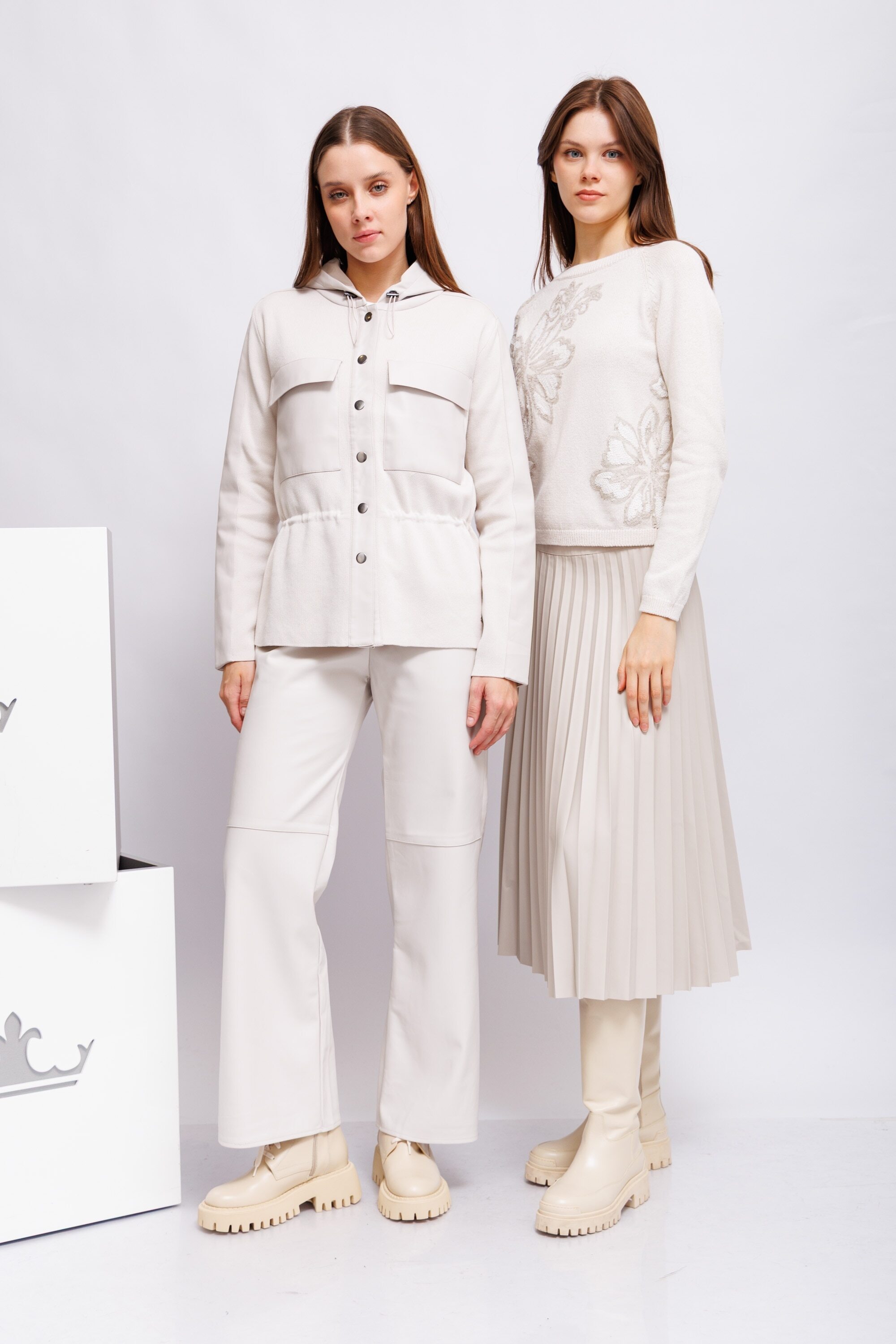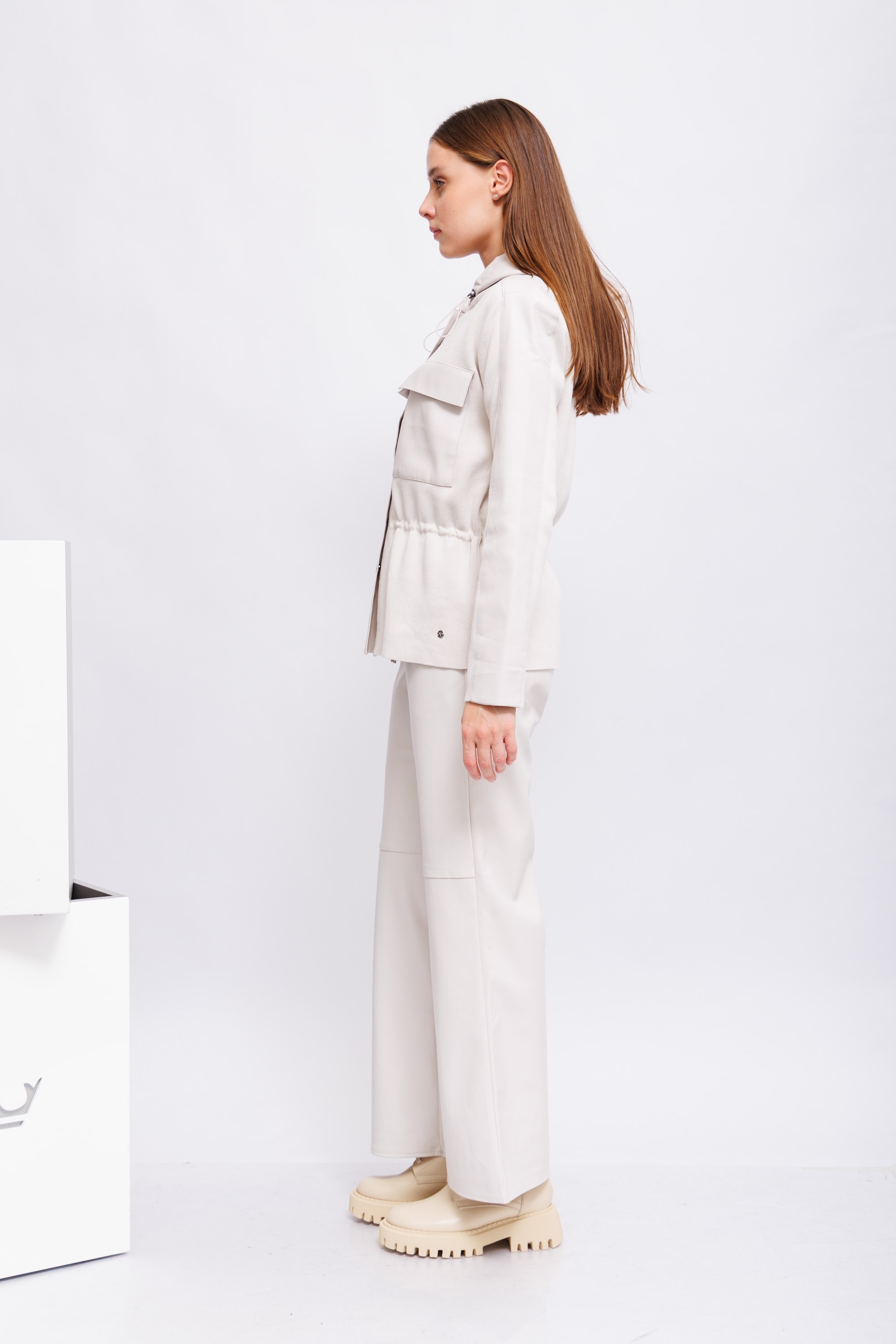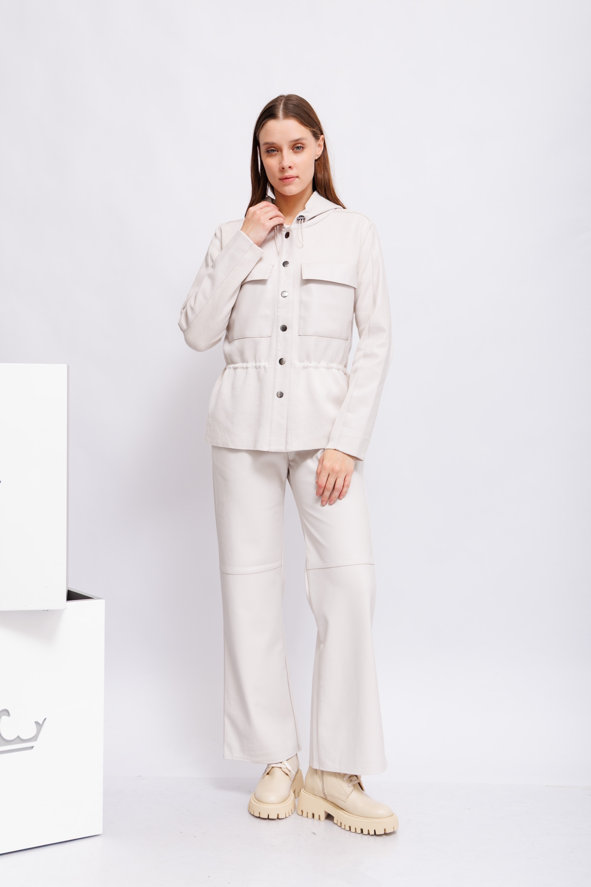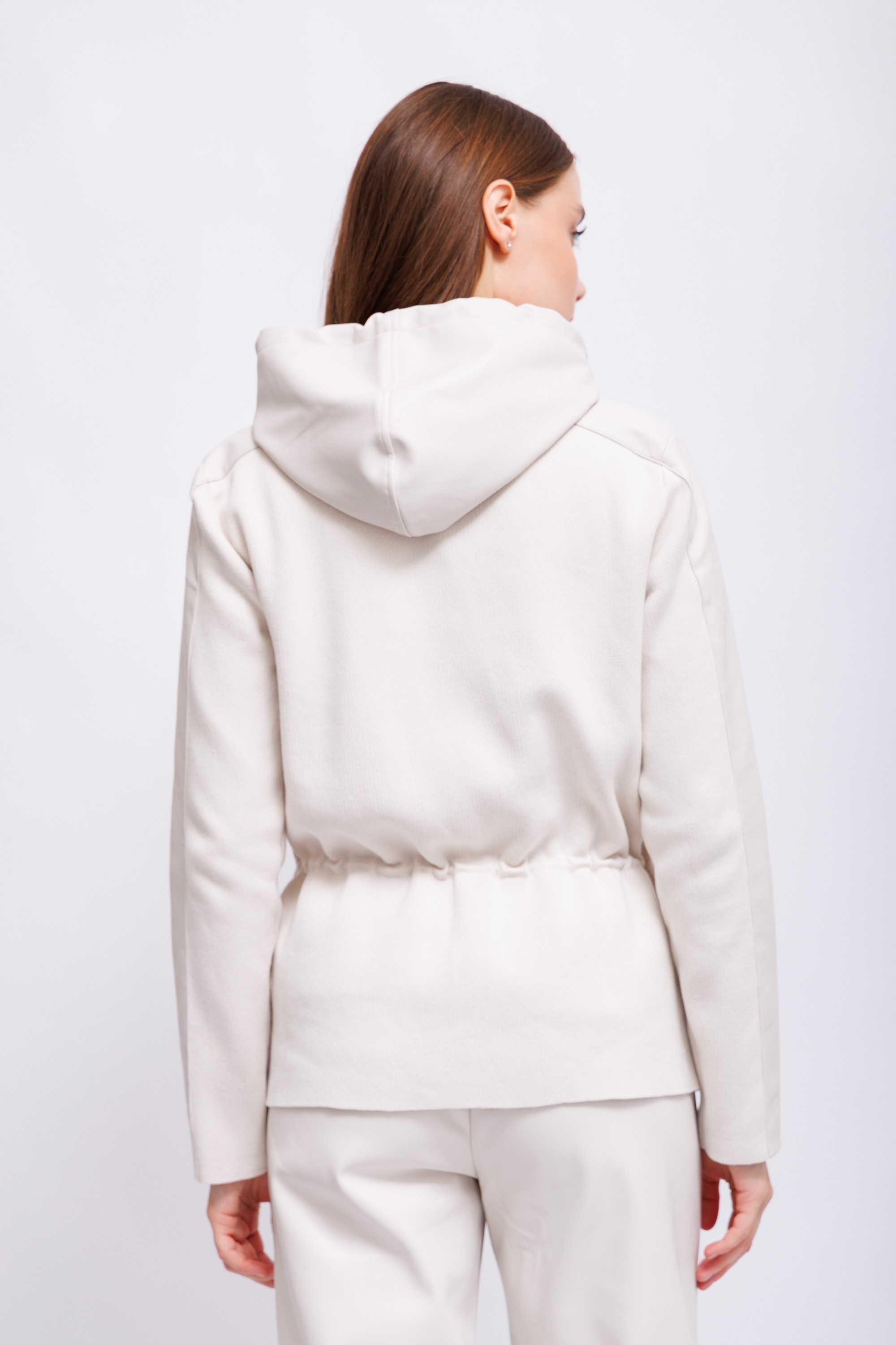 Эта стильная куртка с капюшоном сочетает в себе высококачественный хлопок, струящуюся вискозу и элегантный кожаный крой. Практичные детали, такие как эластичная кулиска, карманы с клапанами и планка с пуговицами, дополняют женственный образ.