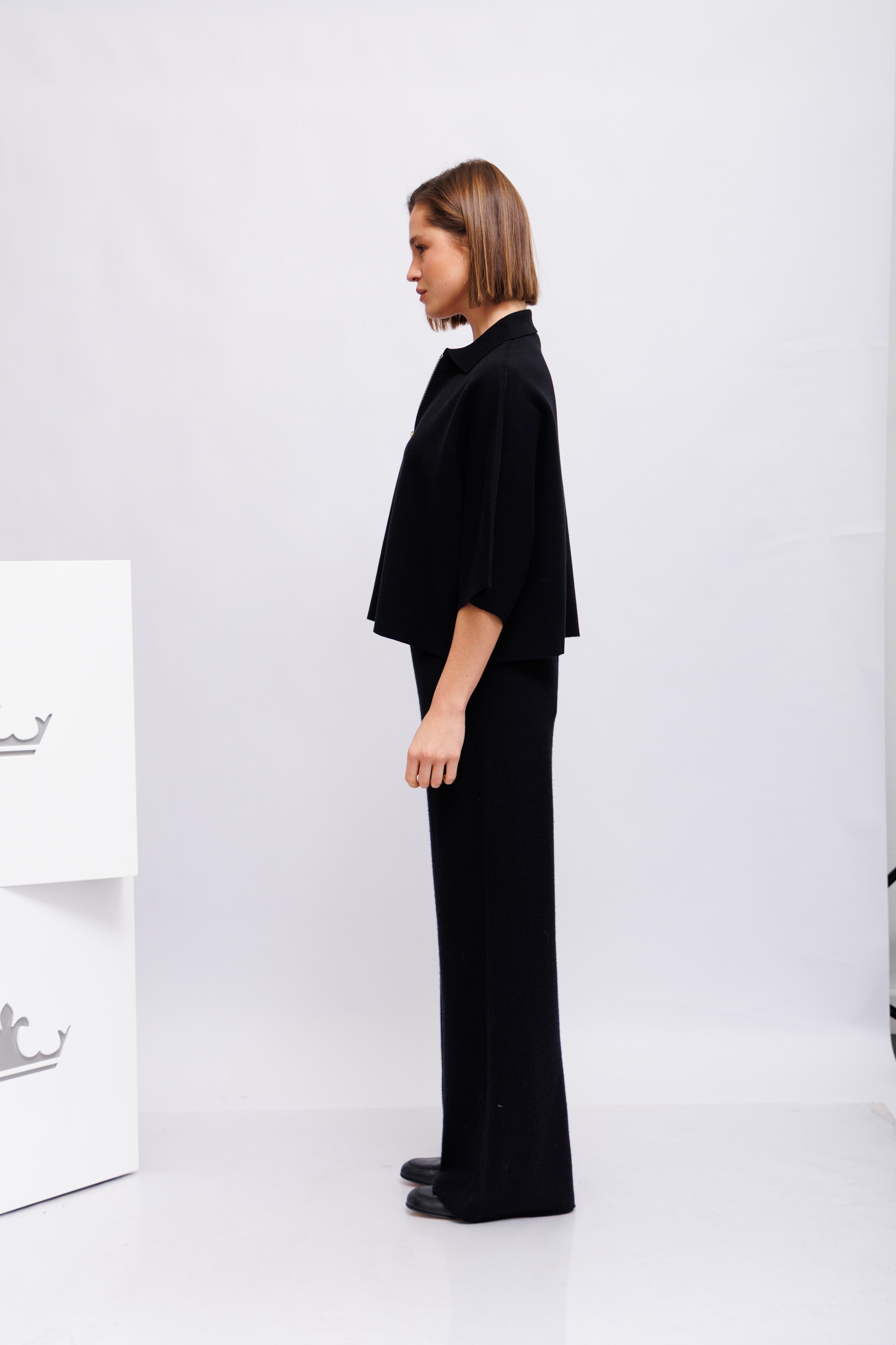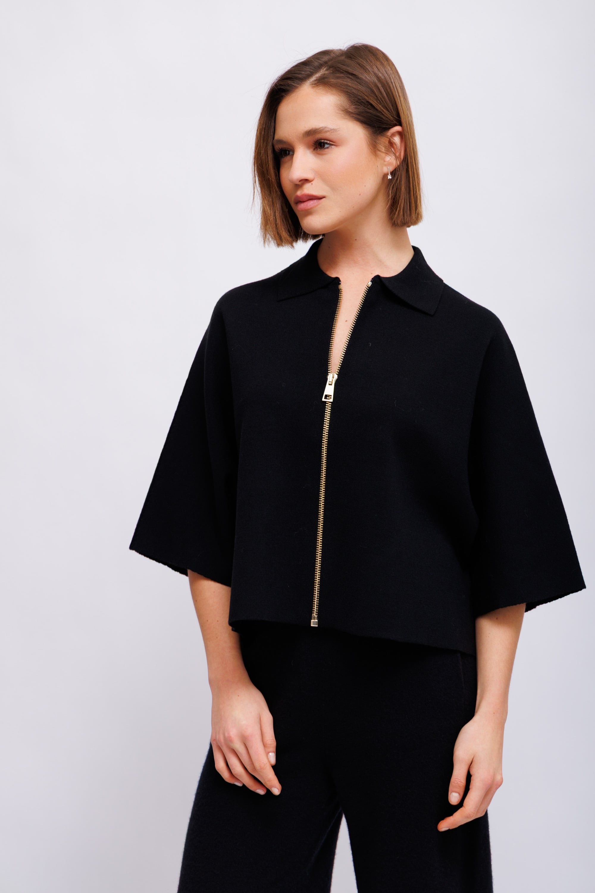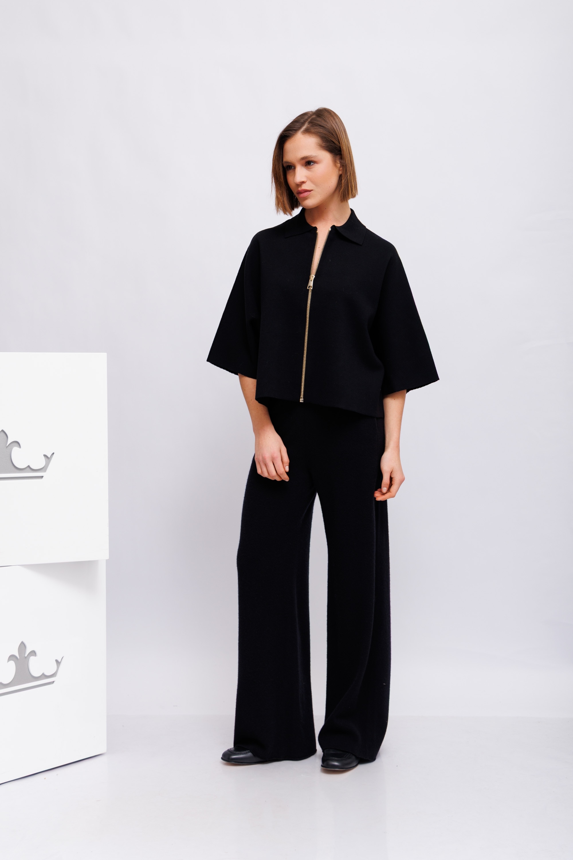 Кардиган черного цвета из мягкой плотной шерстиОтложной воротИзделие на крупной золотой молнии