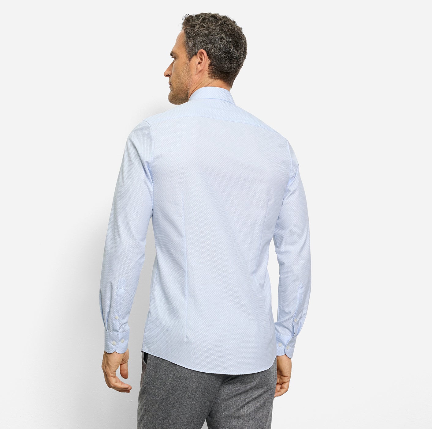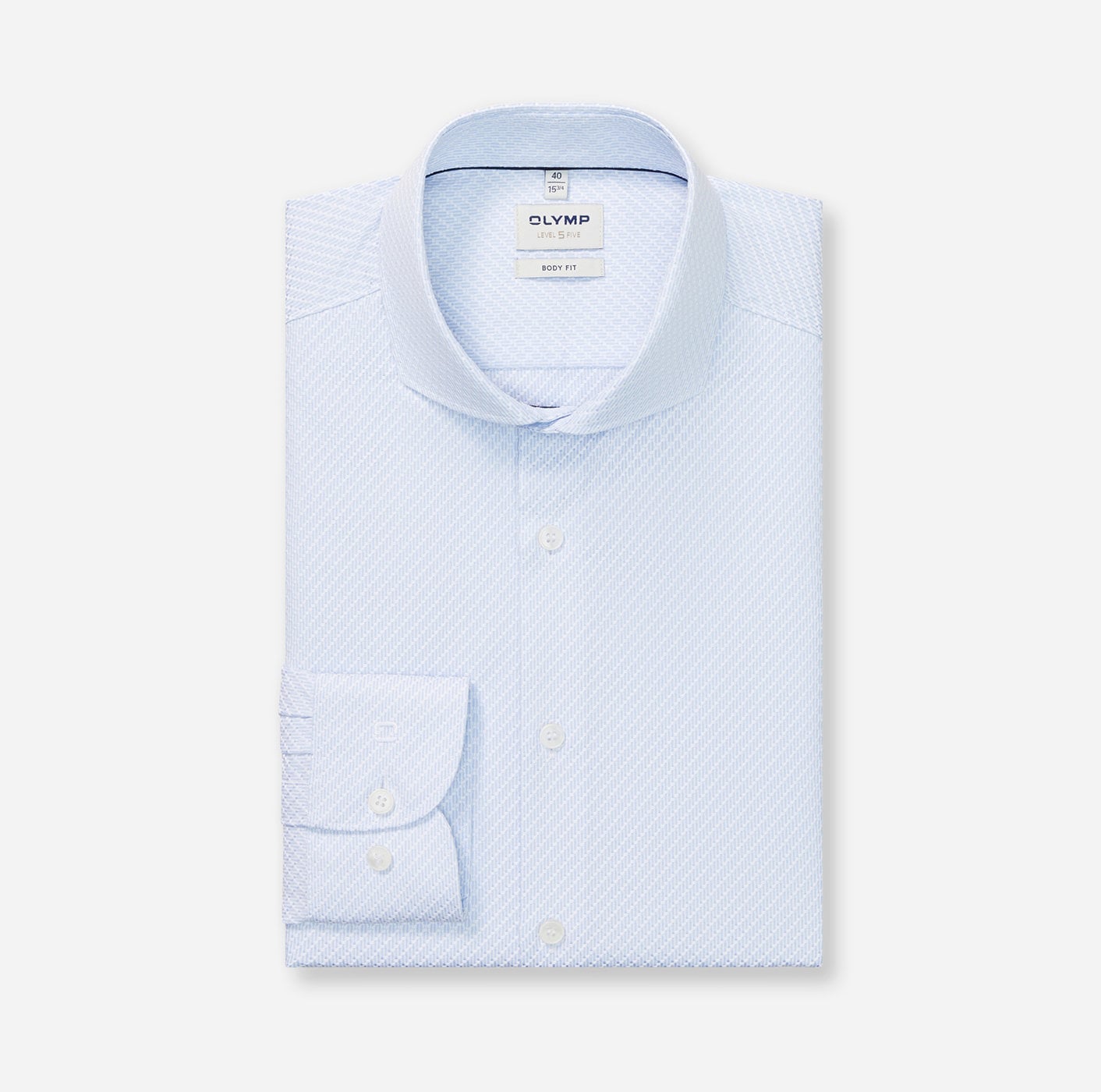 Элегантная и спортивная – мужская сорочка OLYMP Level Five Club сочетает в себе 100% хлопок, привлекательный блеск и приятные тактильные ощущения, а также приталенный крой. Плотное плетение задает стильный мужской стандарт в офисе. Характерный воротник-"акула"(раскрытый по форме) идеально дополняет облегающий крой. Экономит время на уход и легко гладится.