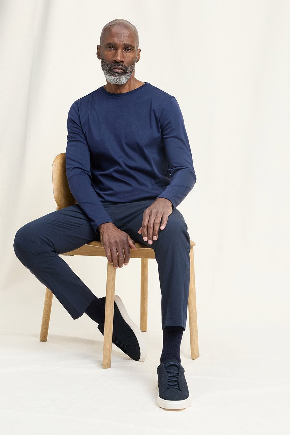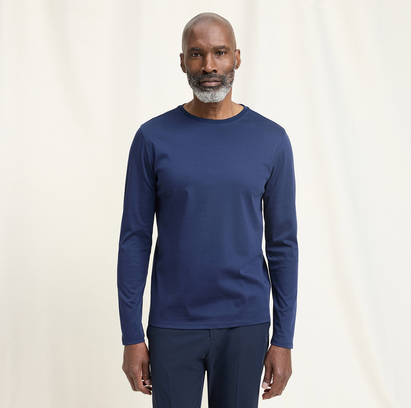 Темно-синий лонгслив из премиального хлопка
