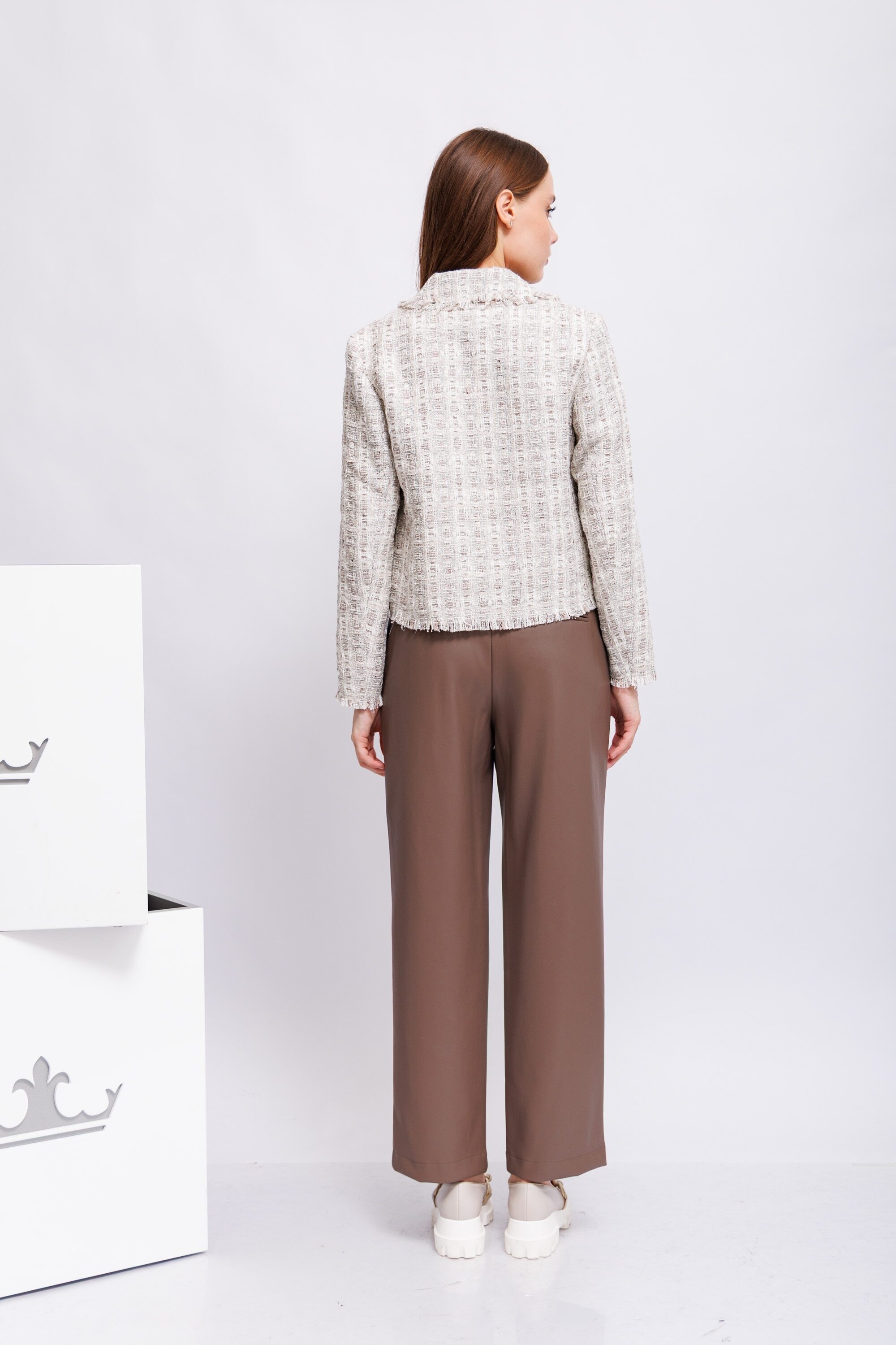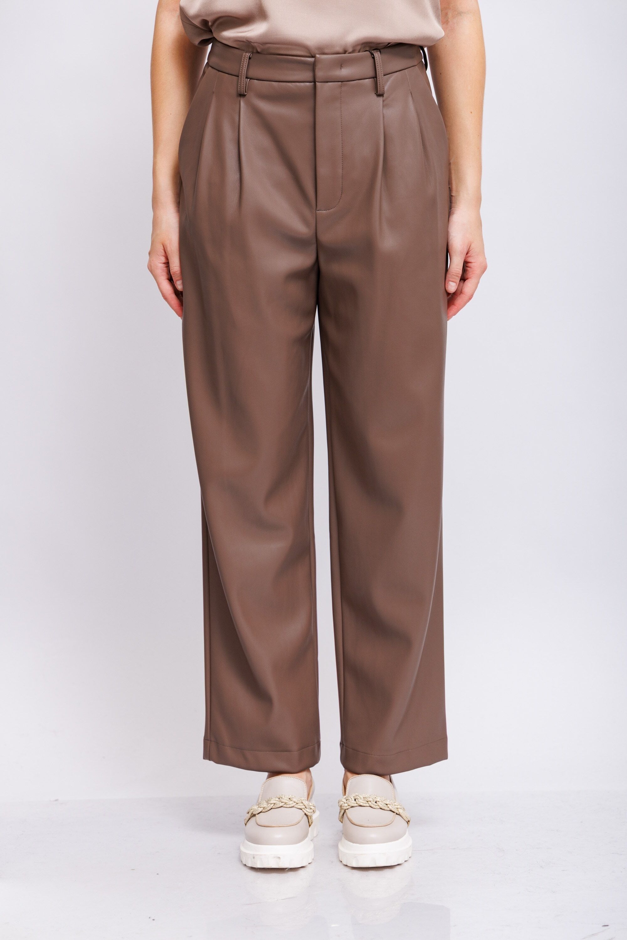 Брюки цвета таупе (серо-коричневый) из эко-кожи