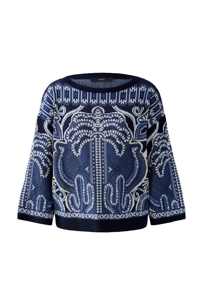 Джемпер темно-синий в контрастный узор в стиле вестерн