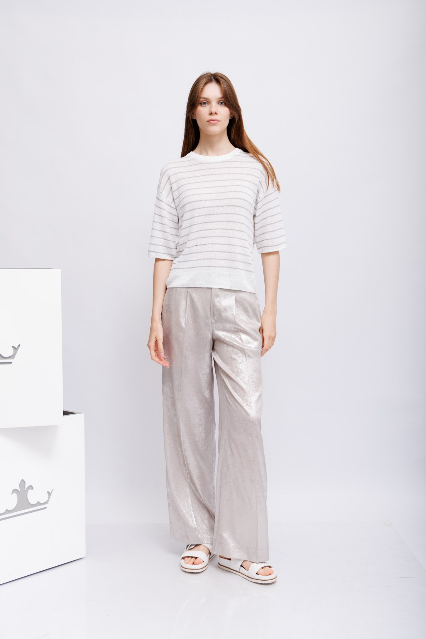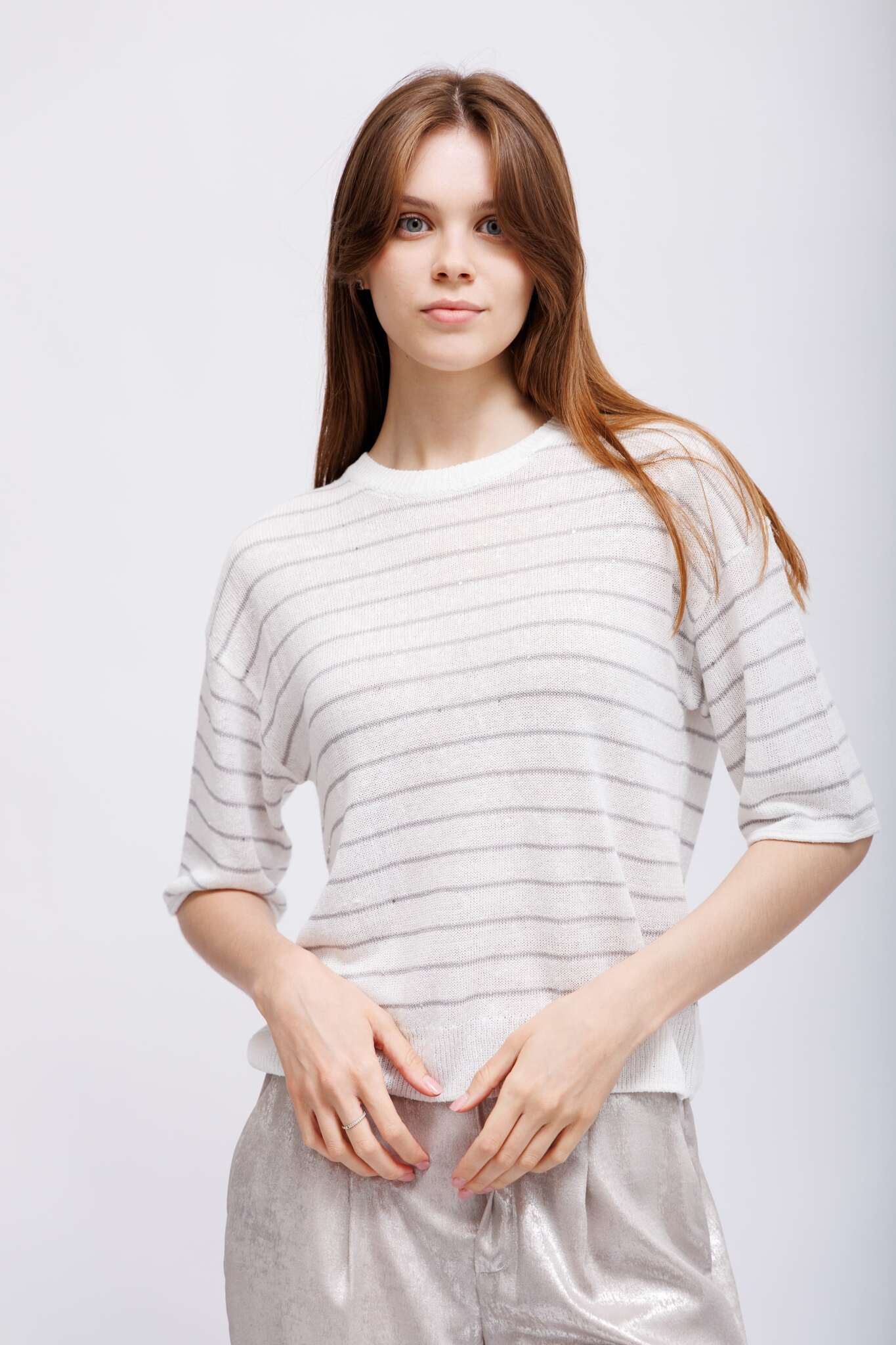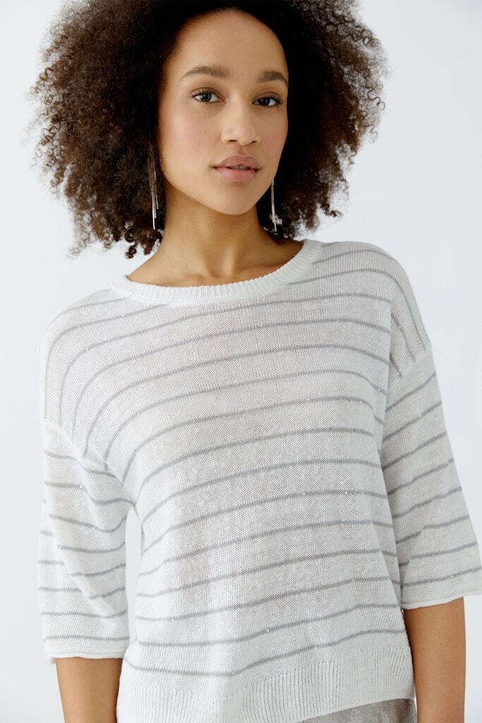 из изысканной пряжи — тональные микропайетки в полосках добавляют едва заметный блеск