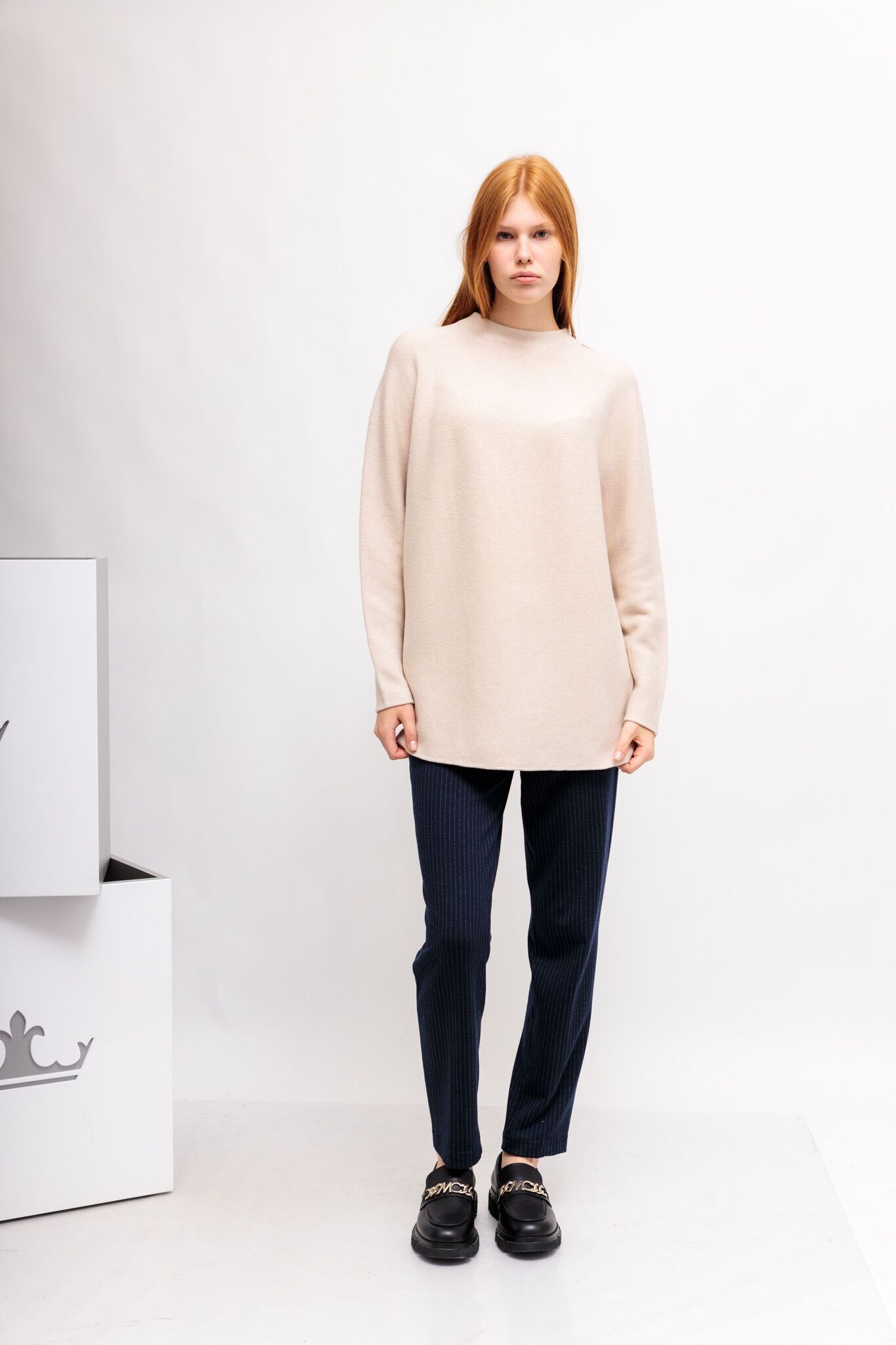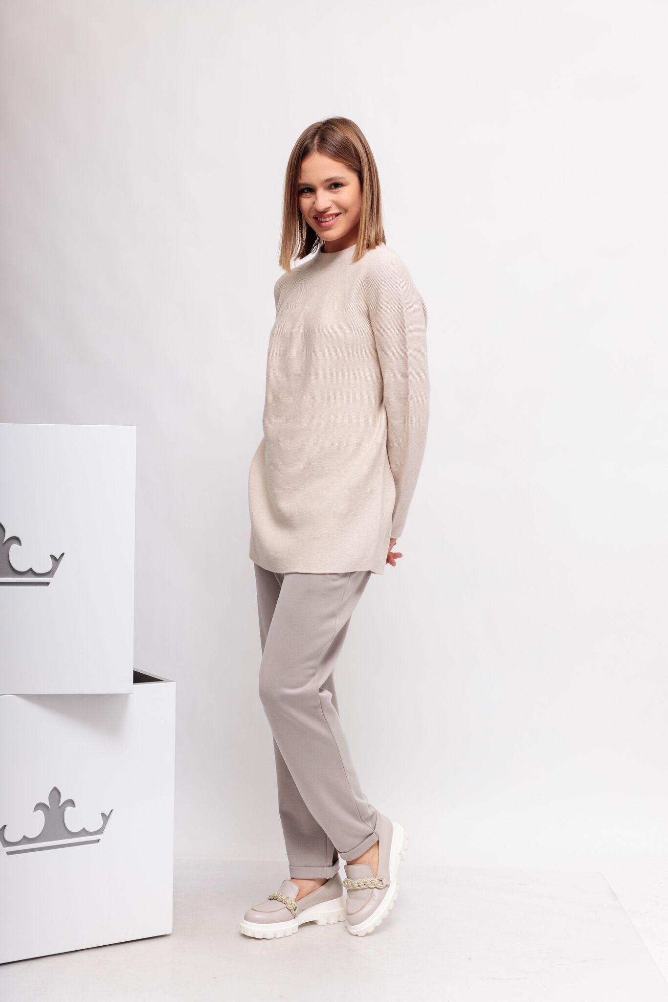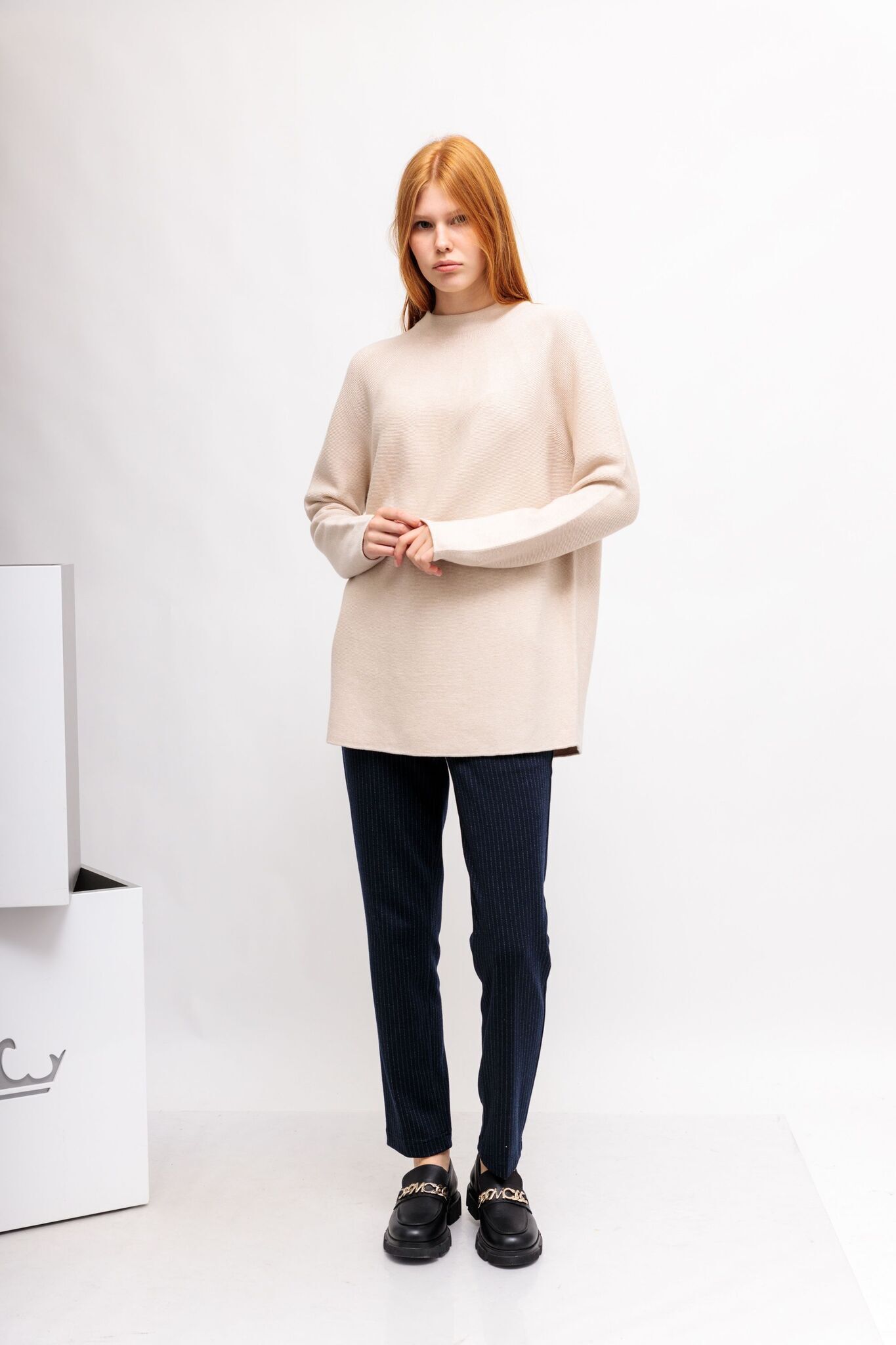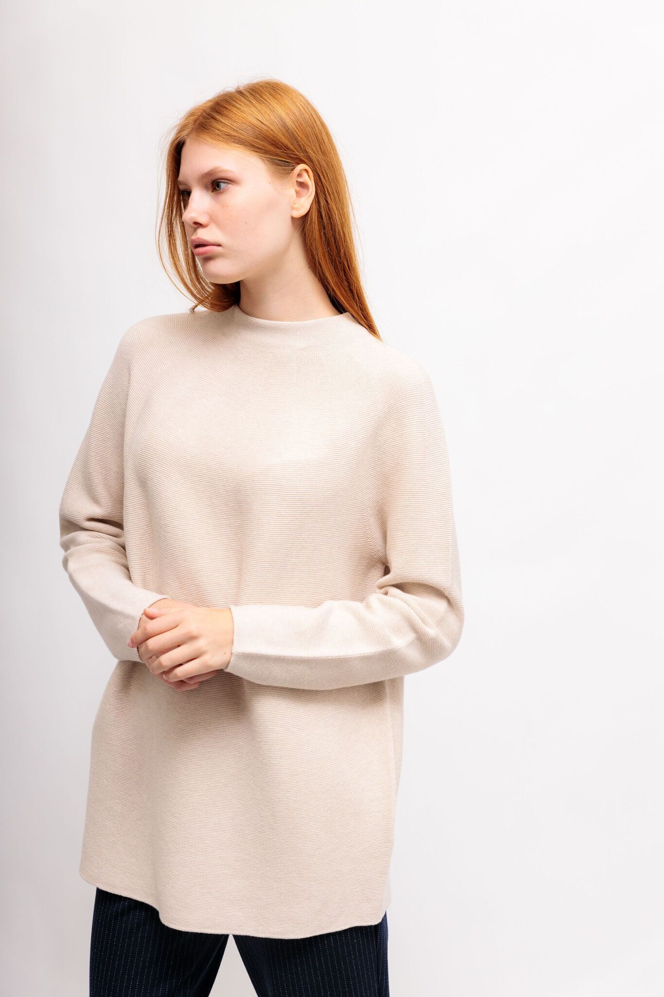 Свитер бежевого цветаВорот-полустойкаДлинные цельнокроеные рукаваКрой свободный слегка расклешённый