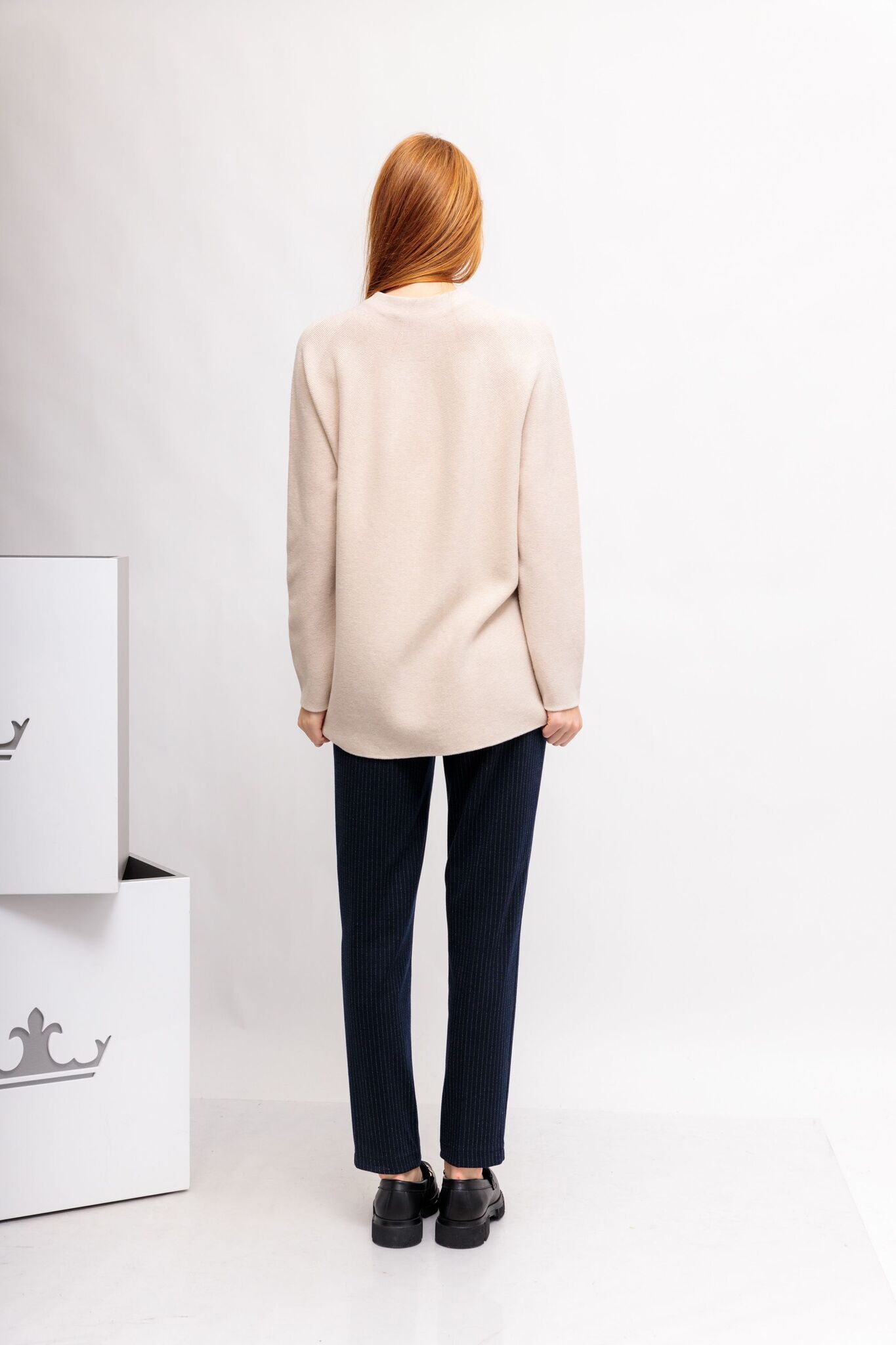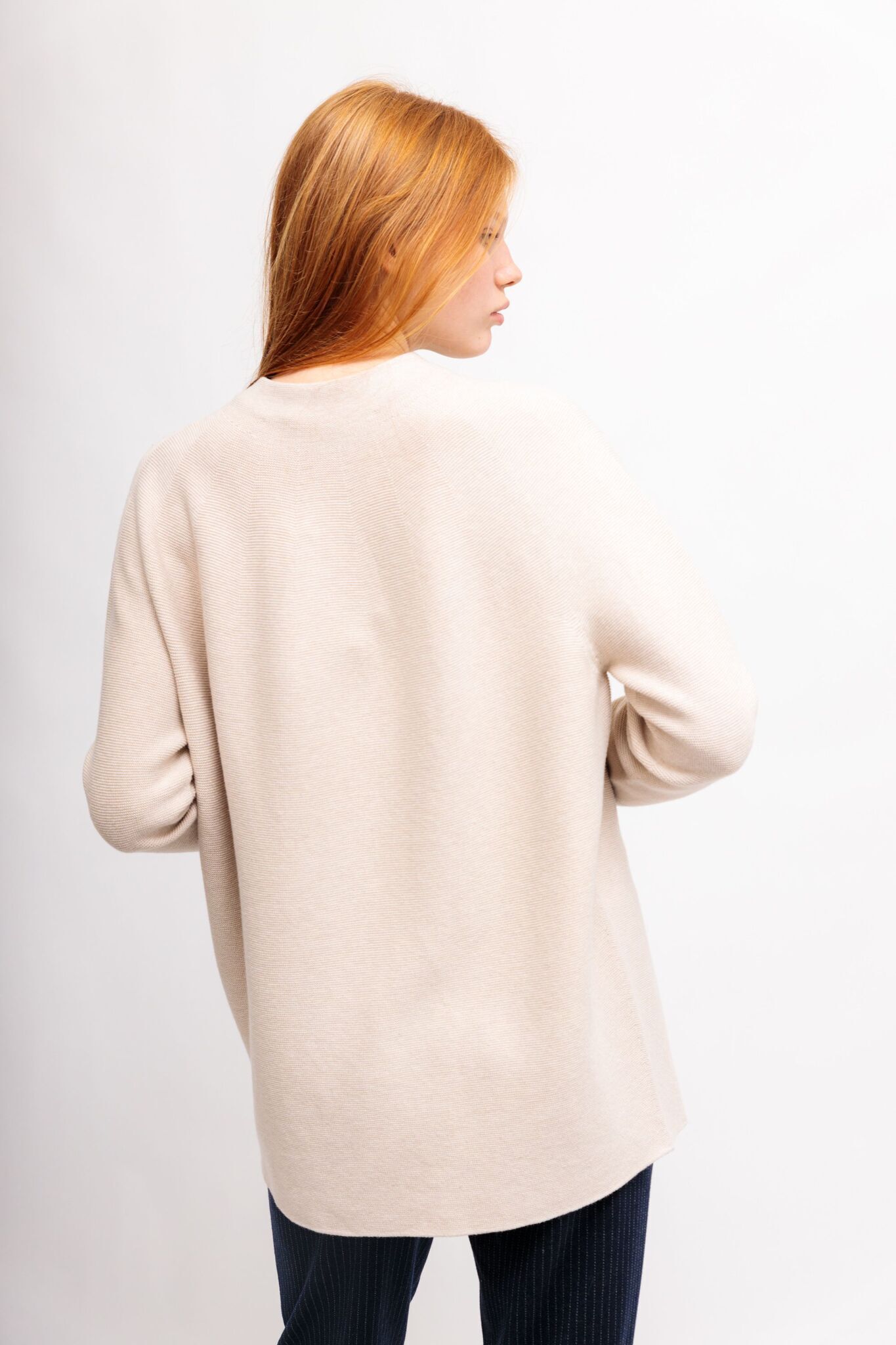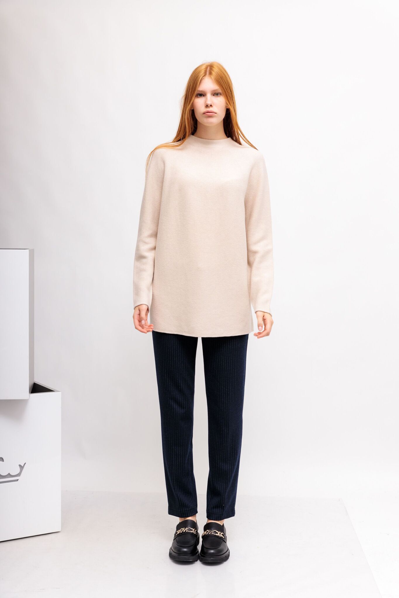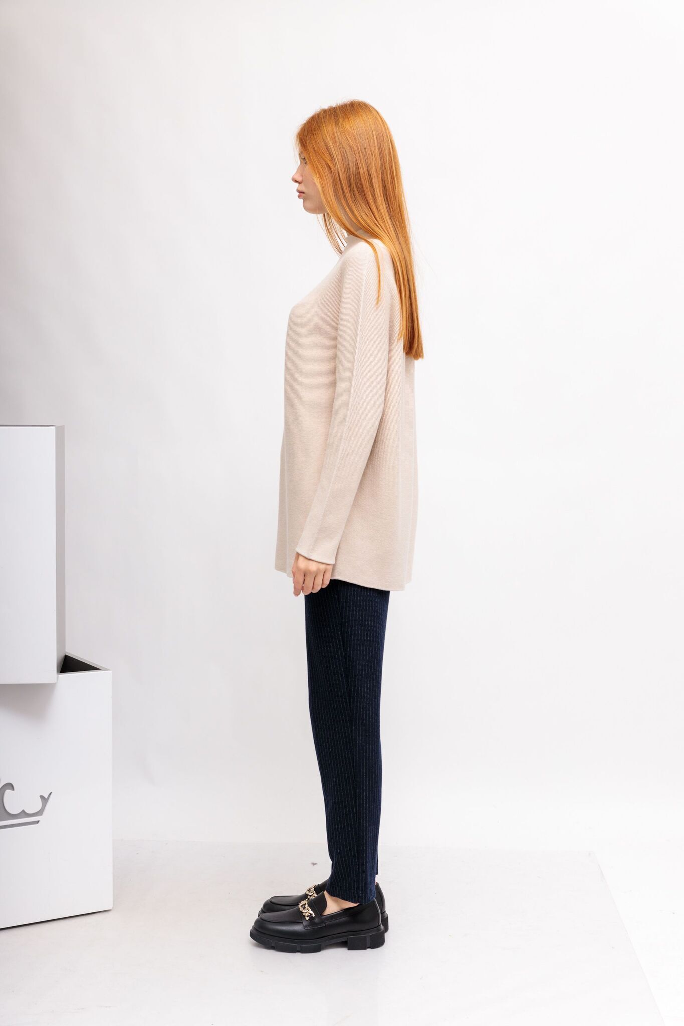 Свитер бежевого цветаВорот-полустойкаДлинные цельнокроеные рукаваКрой свободный слегка расклешённый