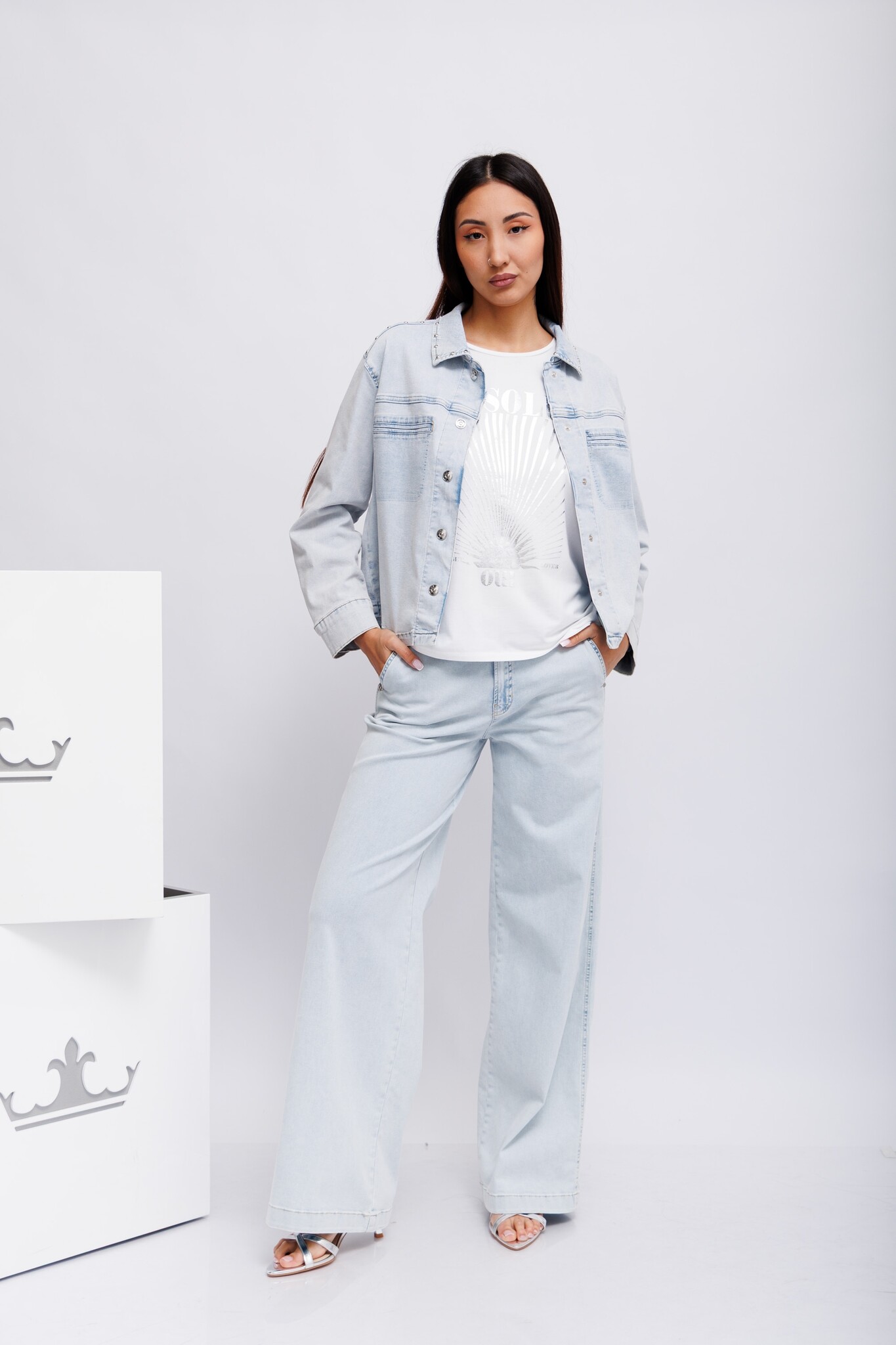 Средняя посадка, свободный широкий крой, удлиненные